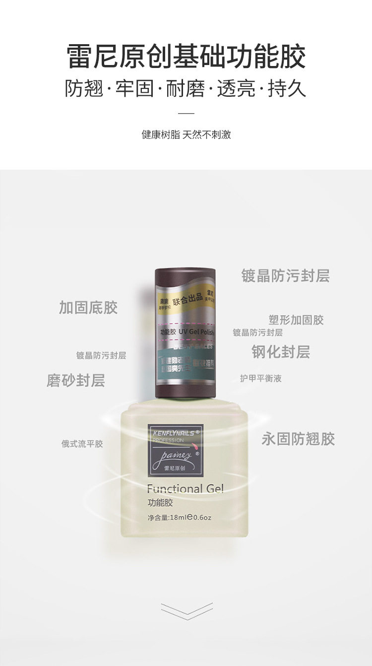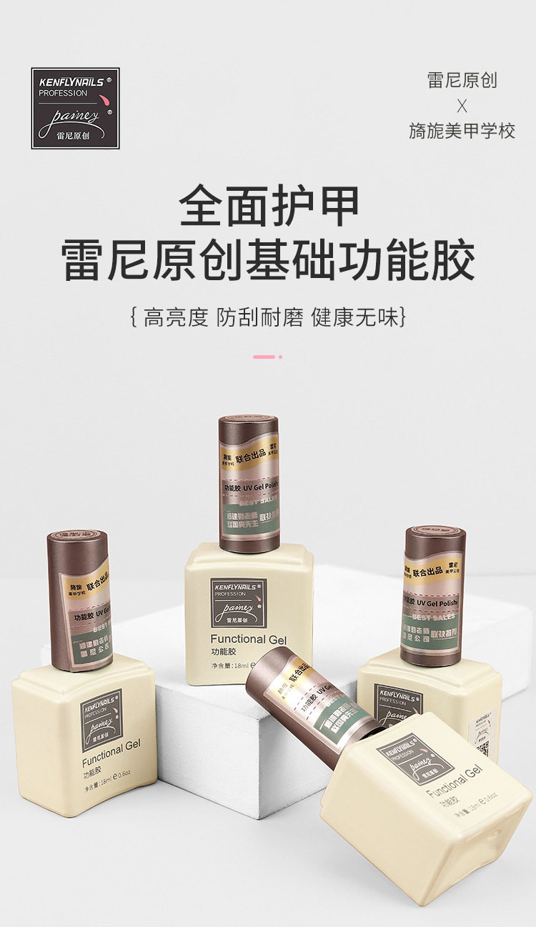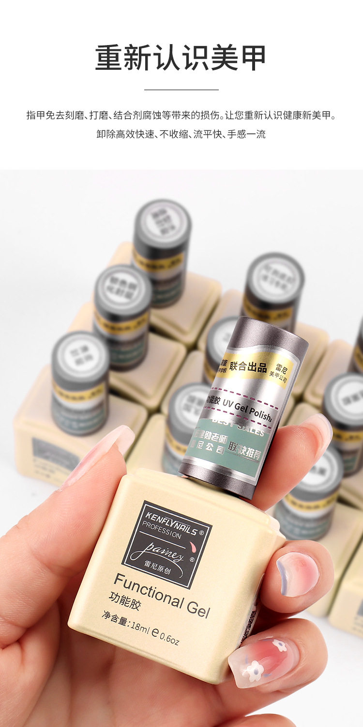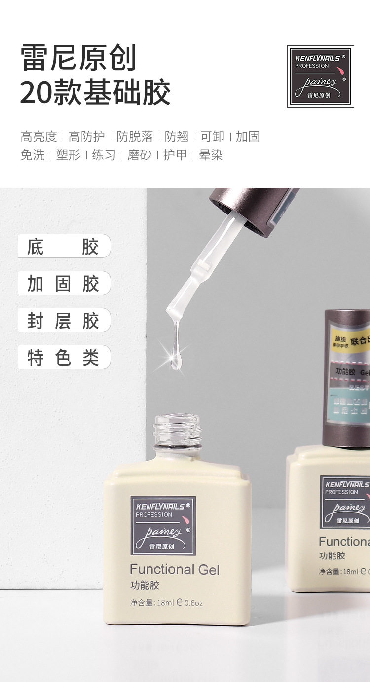 雷尼原创功能胶底胶封层套装美甲店甲油胶专用镀晶免洗磨砂加固胶