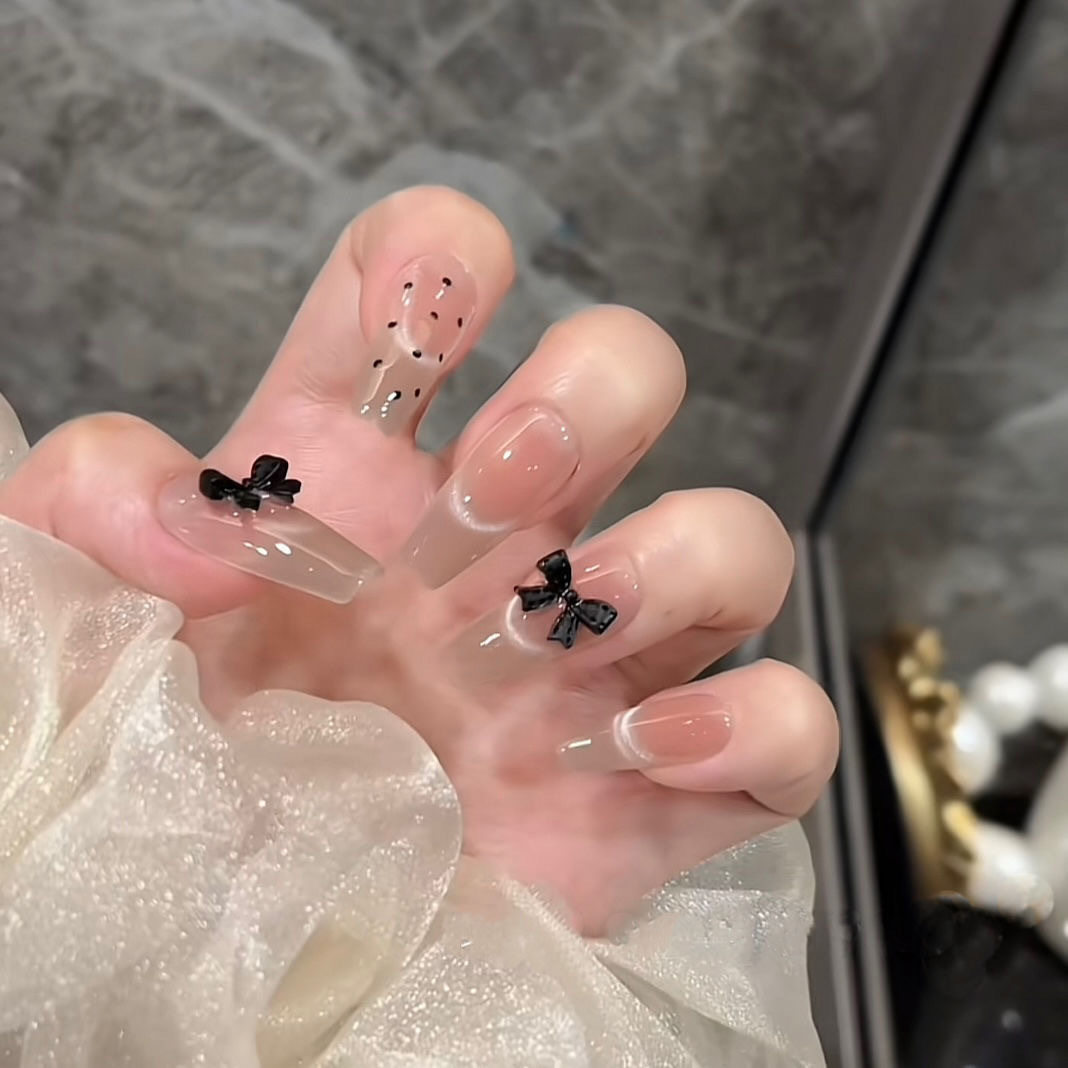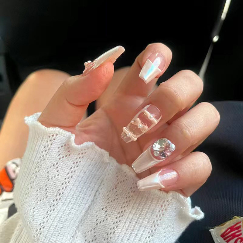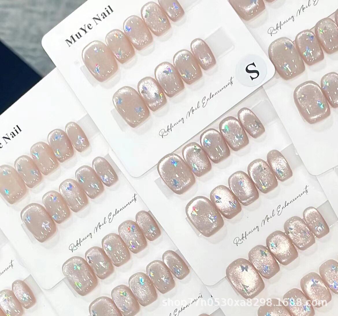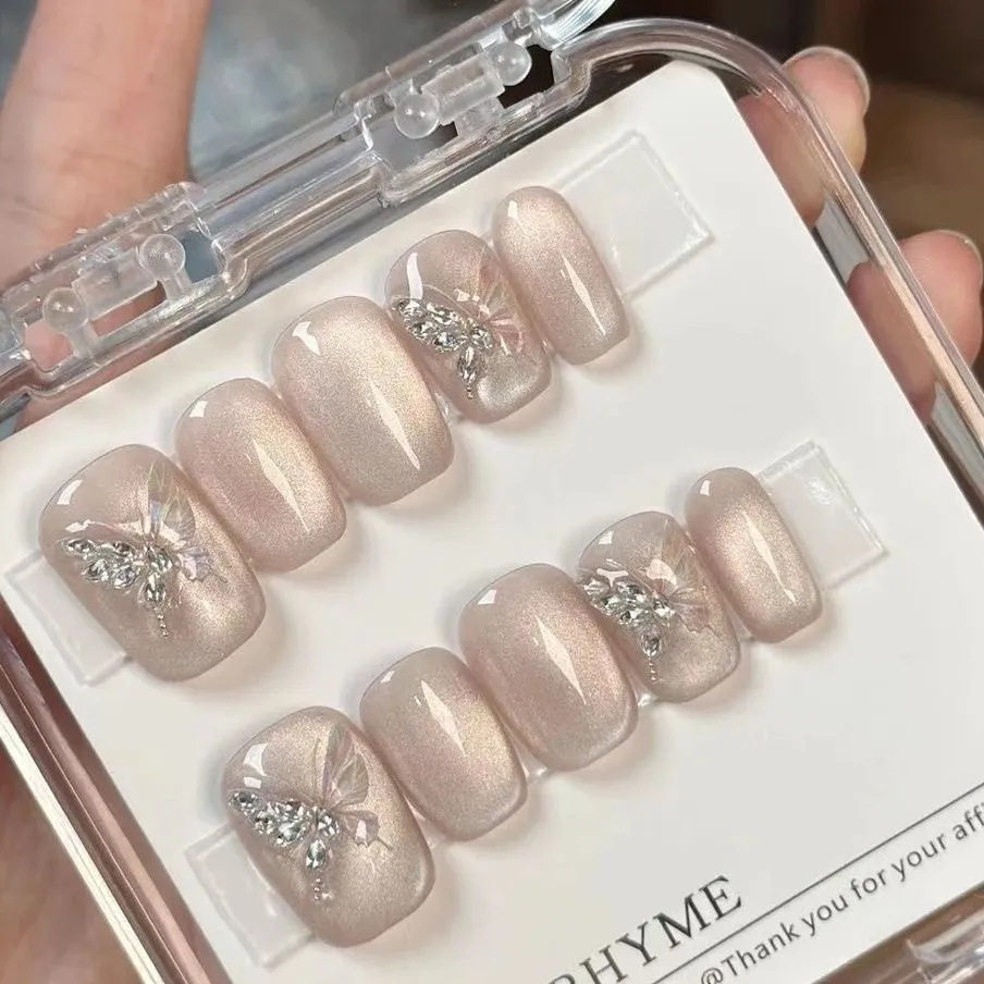 戈戈舞10片装纯手工穿戴甲春季小猫眼卡通多巴胺蝴蝶美甲贴片指甲