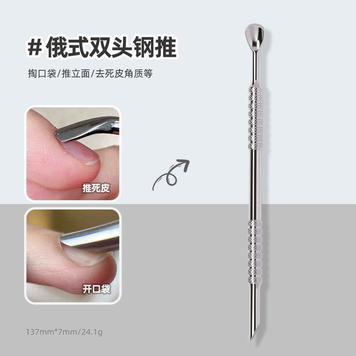 俄式双头马蹄钢推不锈钢斜口钢推前置处理去死皮推立面美甲工具