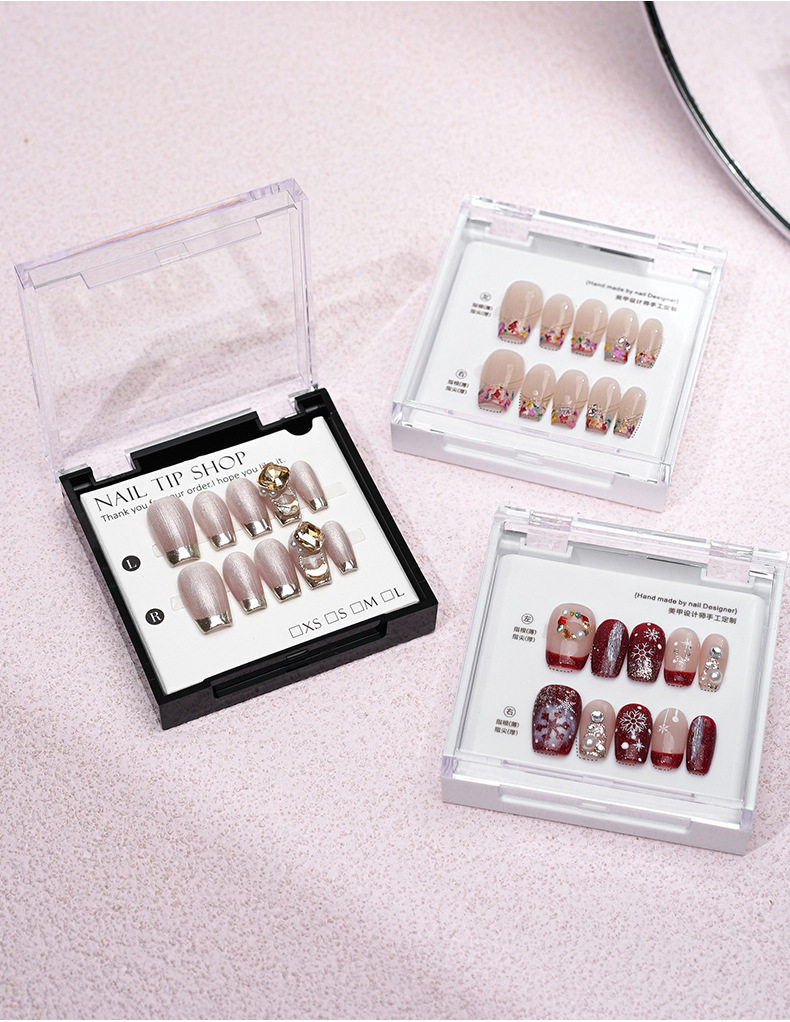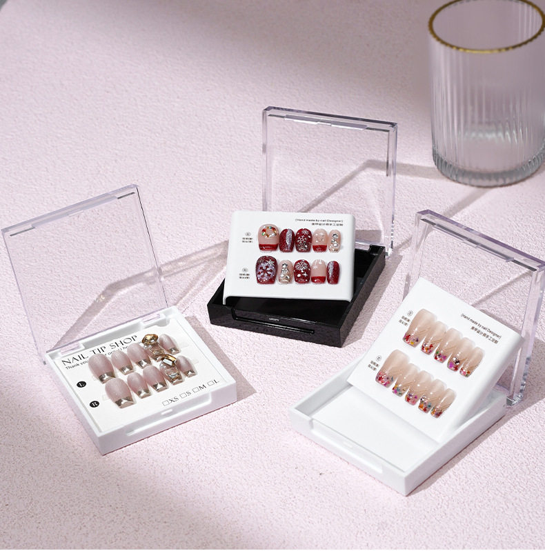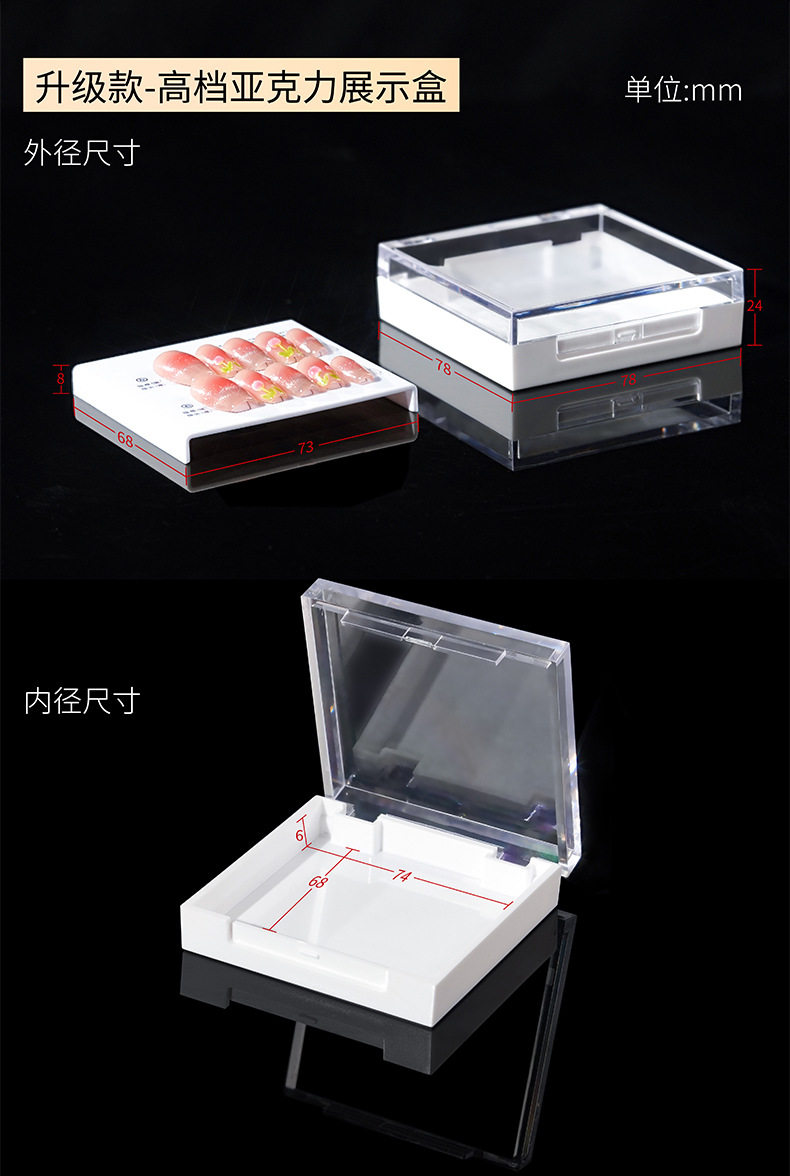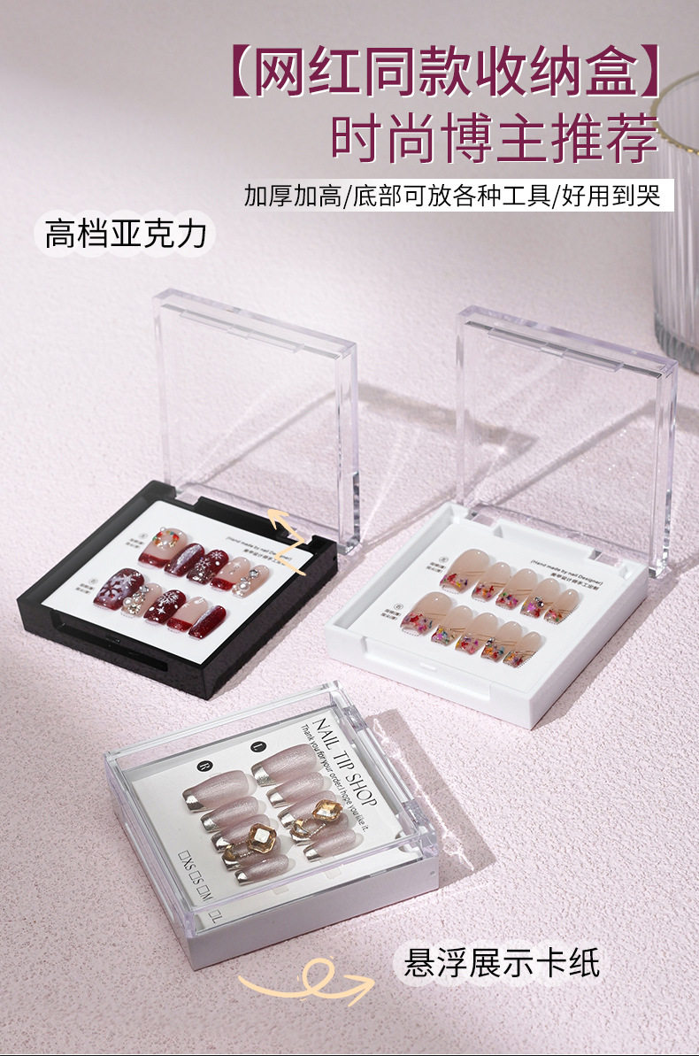 现货手工穿戴甲高端透明亚克力展示收纳盒黑白款