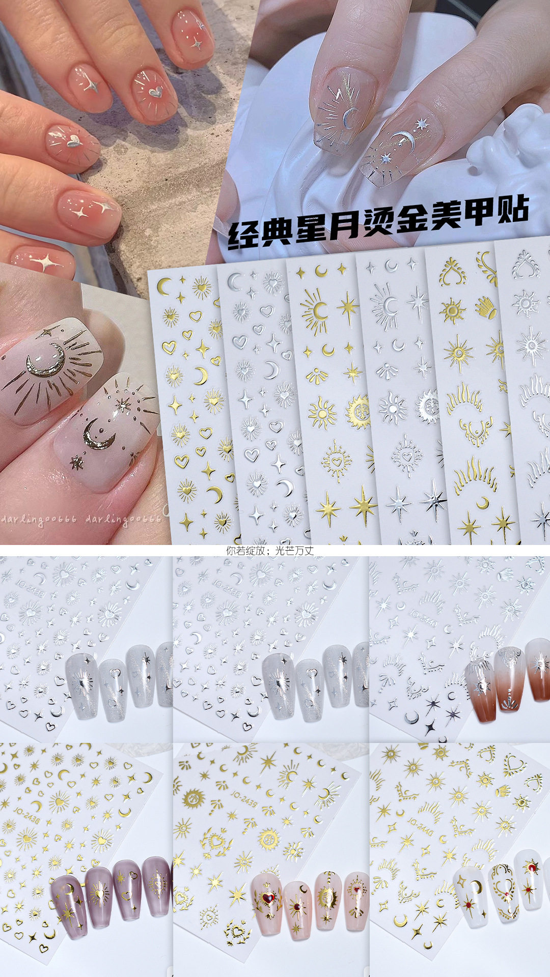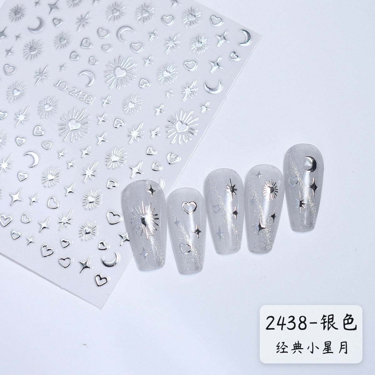 ins网红镭射金银星月美甲 液态镂空金属四星芒防水背胶美甲贴纸