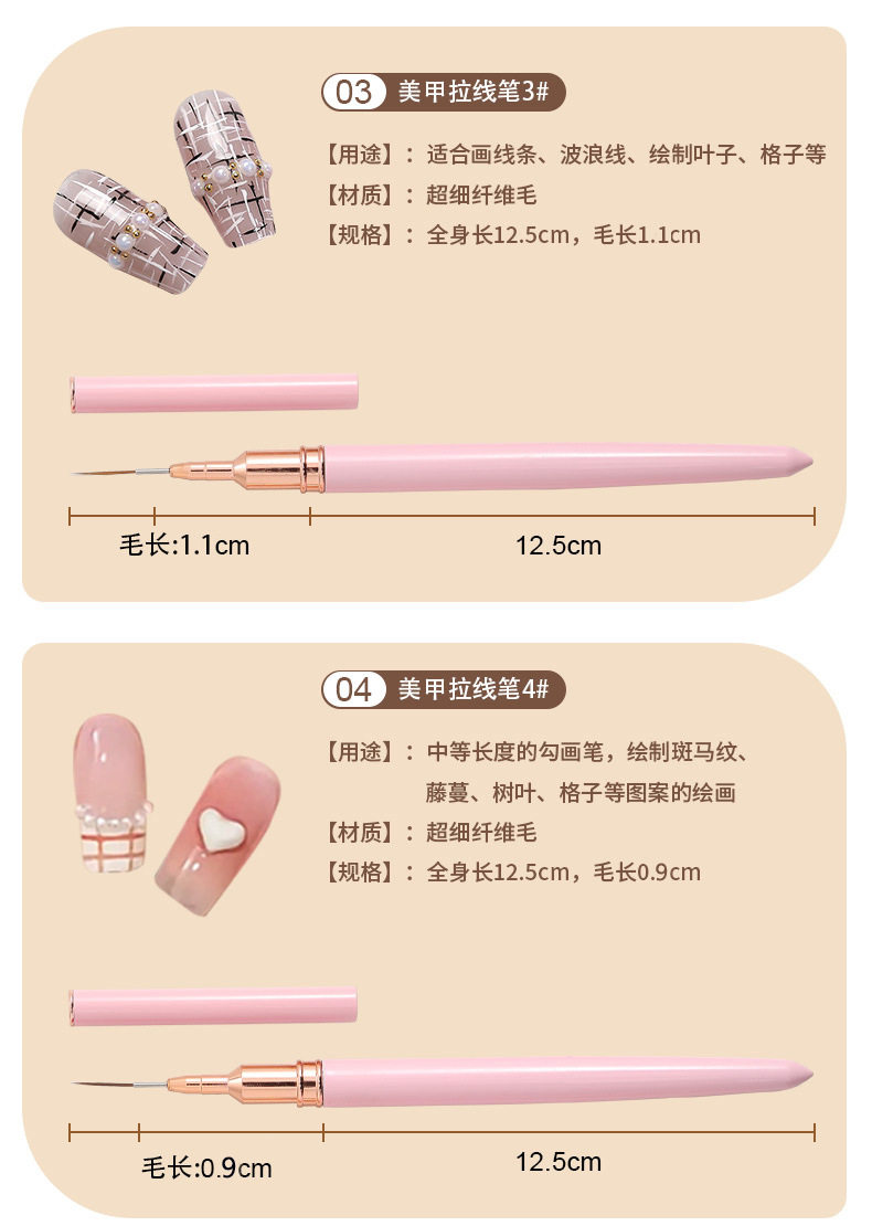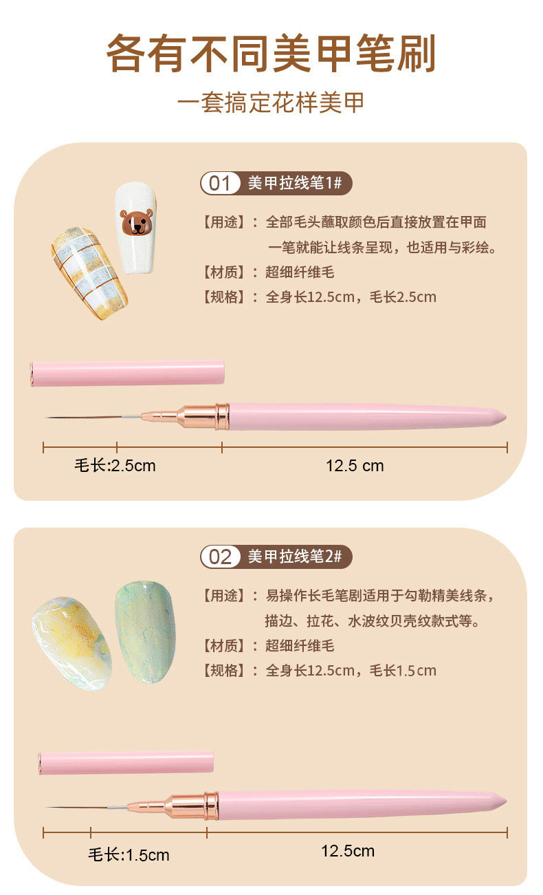 美甲拉线笔刷套装业日式拉线画花法式彩绘勾线笔美甲店专用工具