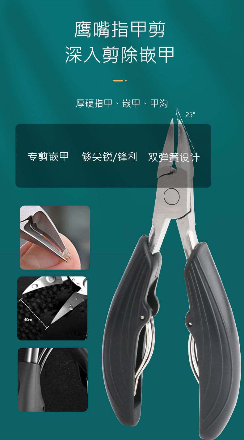 亚马逊不锈钢鹰嘴钳套装 死皮钳甲沟嵌甲剪指甲刀套装美美甲工具
