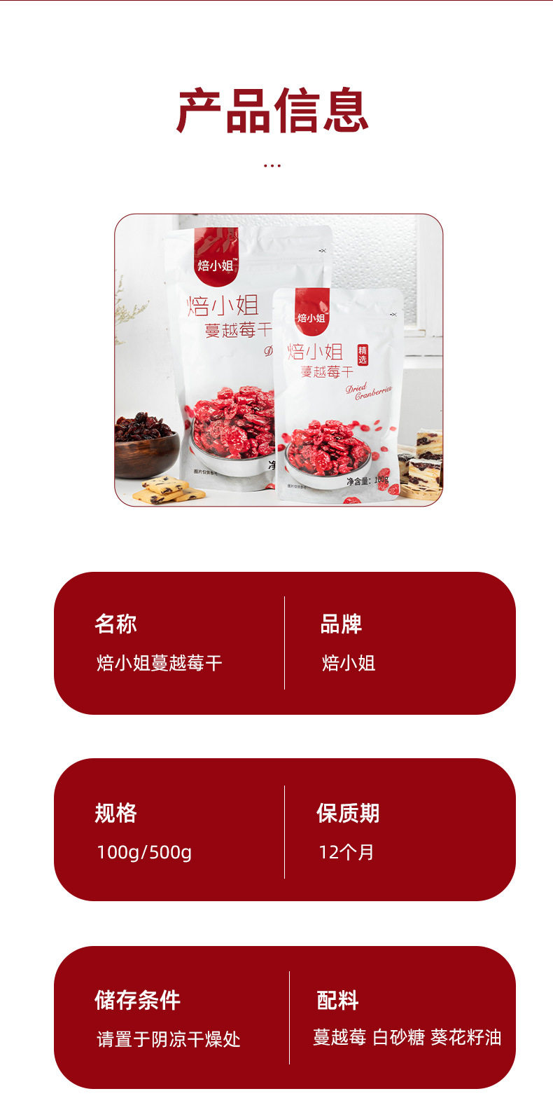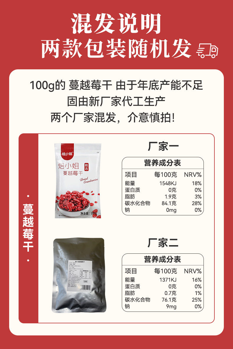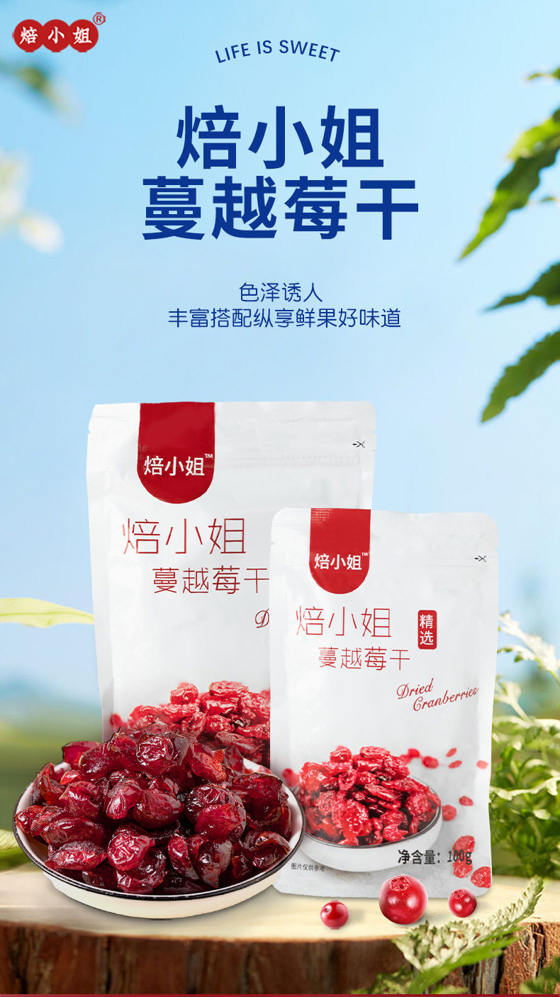 蔓越莓干即食干果无添加曼越莓饼干黄油饼烘焙原材料雪花酥糖专用
