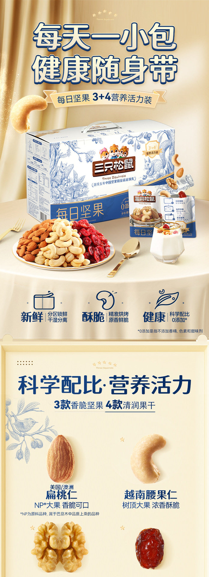 【三只松鼠营养活力款750g/30包】混合干果健康零食每日坚果