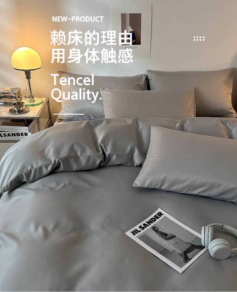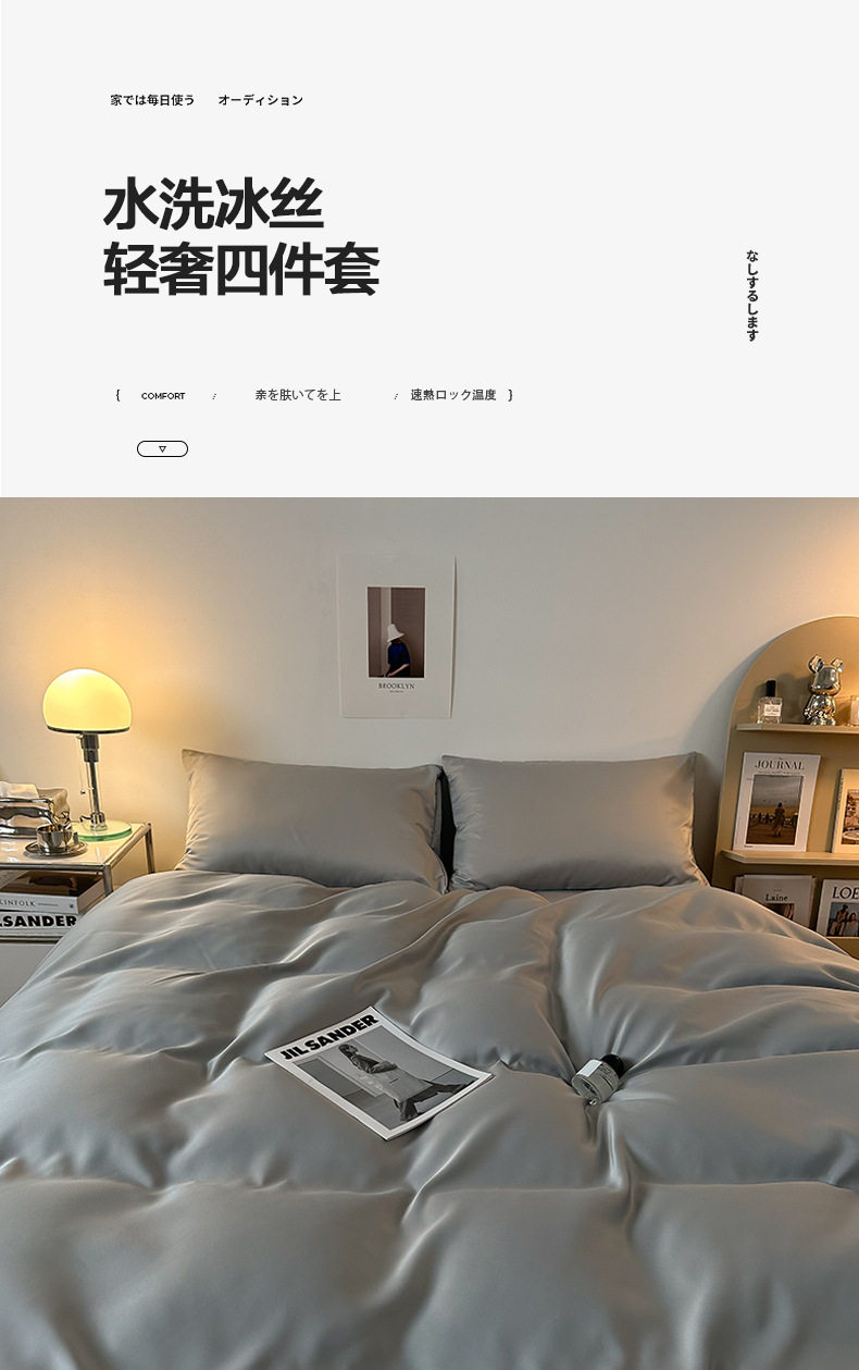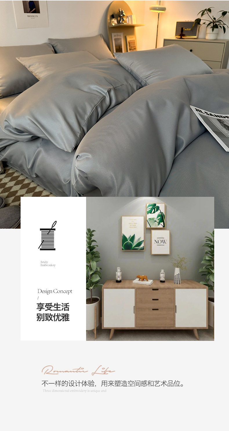 冰丝四件套学生宿舍床单夏季床笠轻奢简约被套高档床品2m被罩代发
