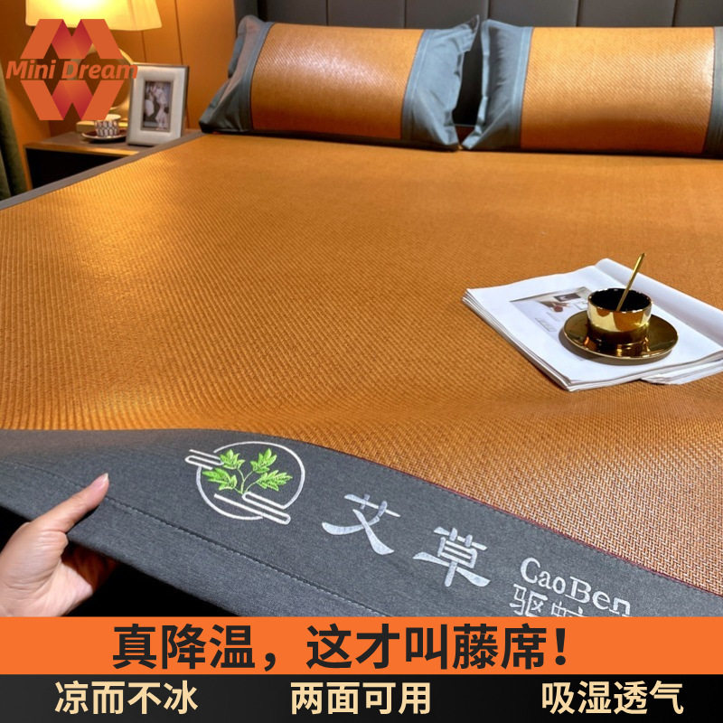 双面凉席艾草藤席三件套夏季新款折叠冰丝席凉席软席子冰藤席批发