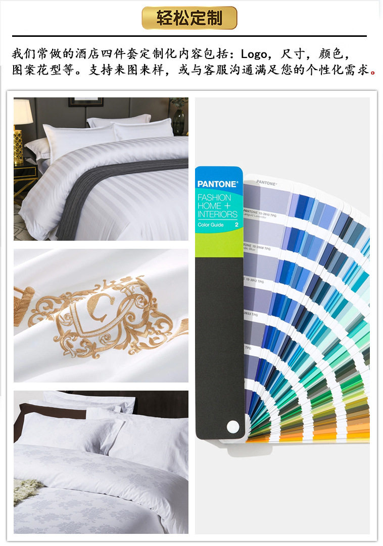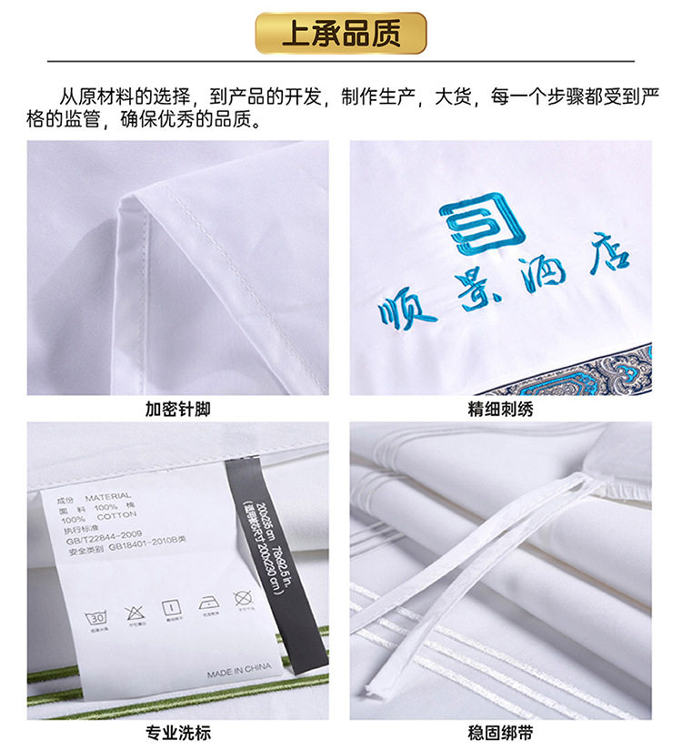 可绣字、印字、加织带,费用另算;对于批发量大客户免费赠送水洗标;毛巾绣logo一般25条起订,四件套绣logo一般10套起;定制logo、尺寸、克重、颜色、包装、工艺,请联系客服咨询!