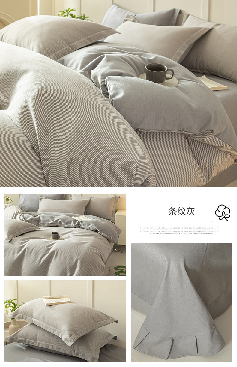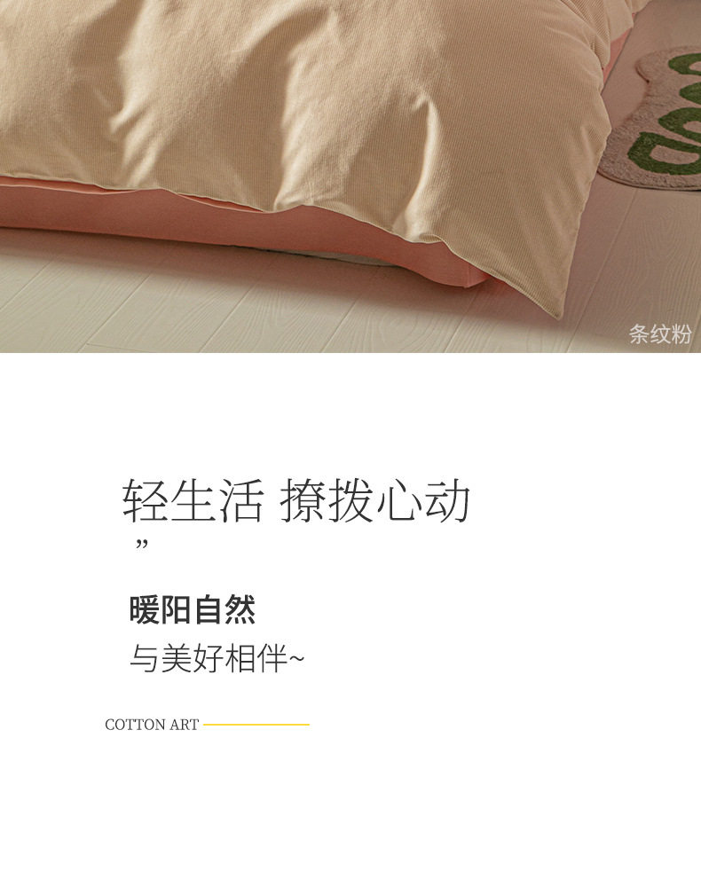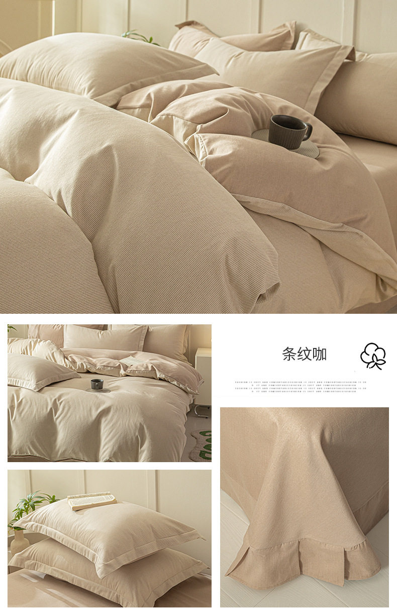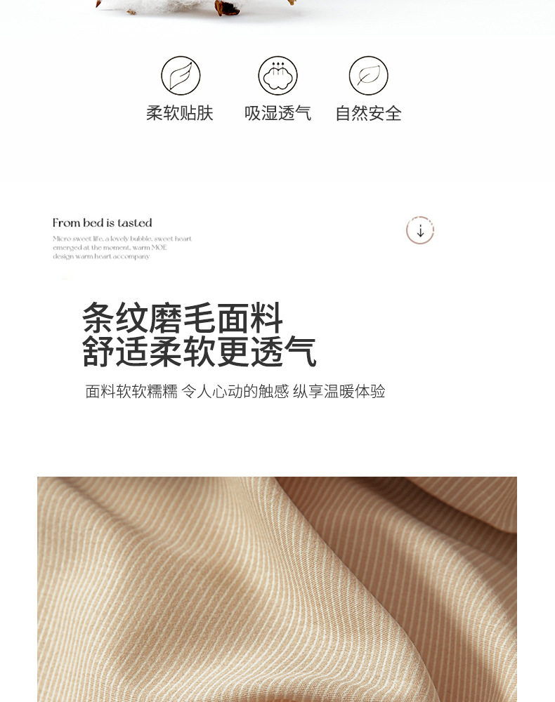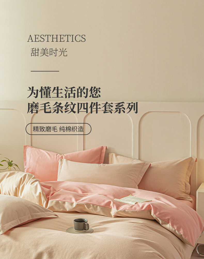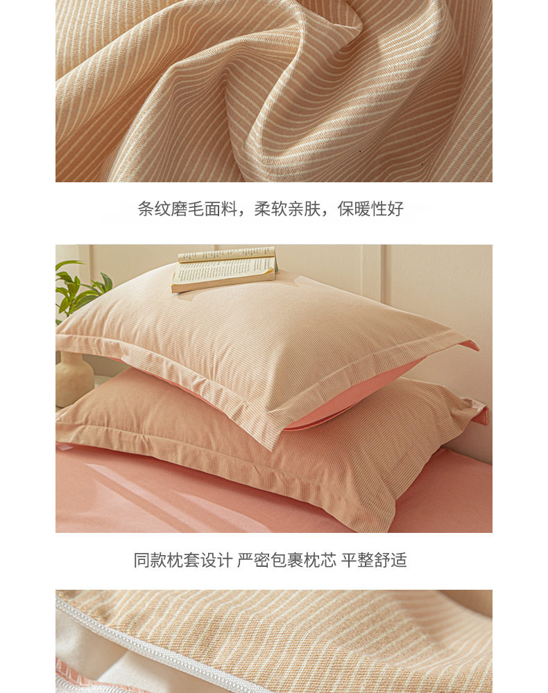 舒尊客||秋冬裸睡全棉磨毛四件套条纹纯棉床上用品床单被套加厚