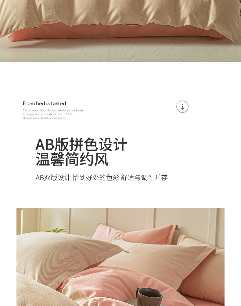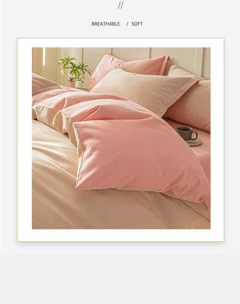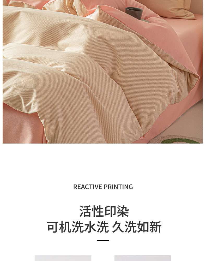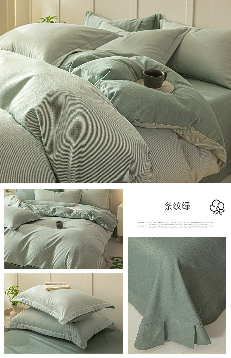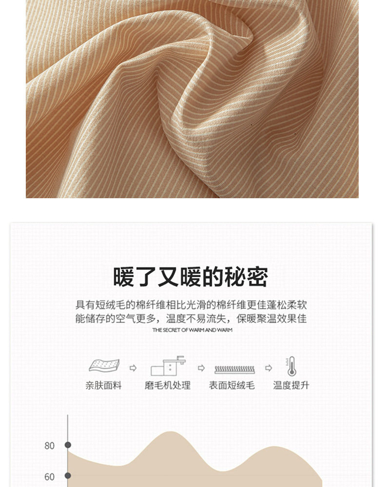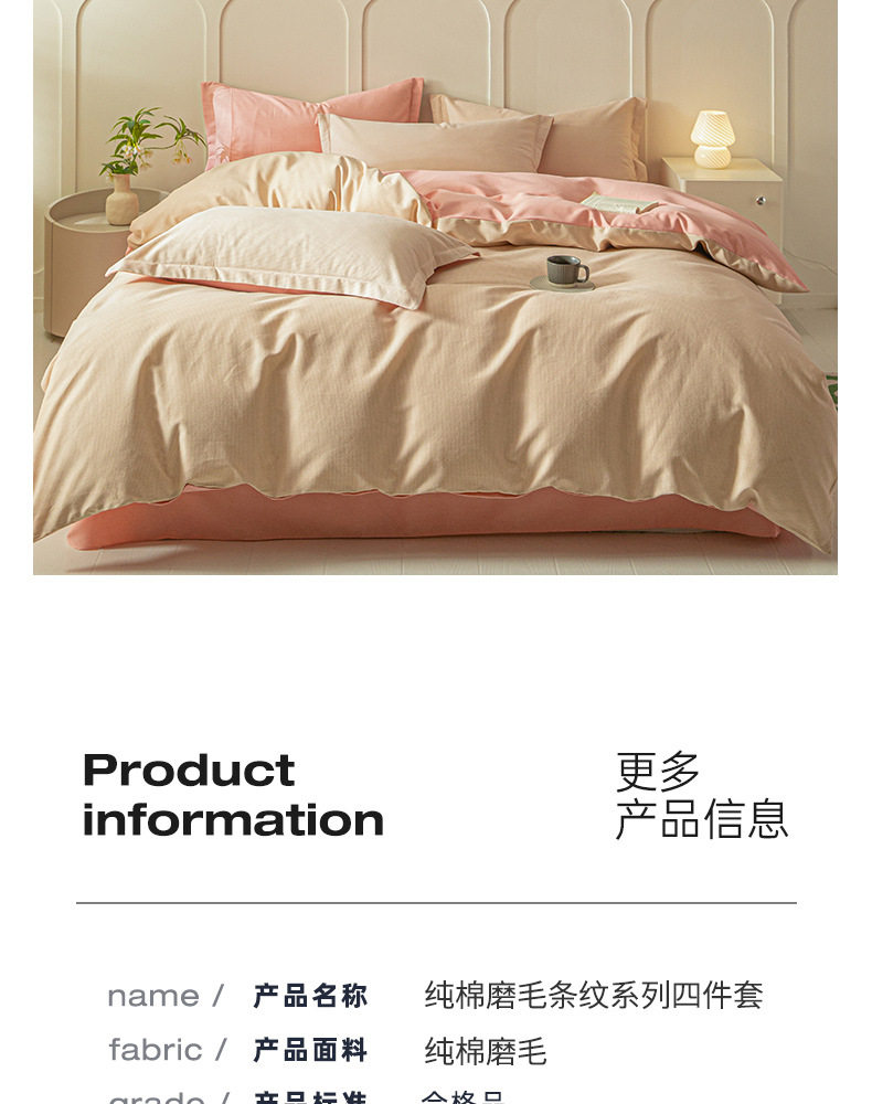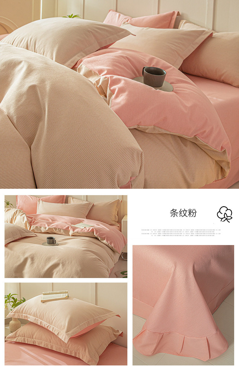 舒尊客||秋冬裸睡全棉磨毛四件套条纹纯棉床上用品床单被套加厚