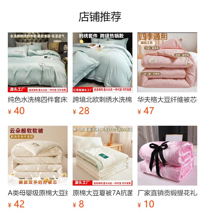 南通亿思甜家纺有限公司是床上用品等产品专业生产加工的公司,拥有完整、科学的质量管理体系。南通亿思甜家纺有限公司的诚信、实力和产品质量获得业界的认可。我们可以对接各大平台代发,同时也服务实体店,微商,流动商家客户。我们的服务宗旨:客户第一,质量第一。我们的服务理念:没有100分的产品绝对有100分的售后和服务。您给我们一次信任,我们还您N次真诚!欢迎各界朋友莅临参观、指导和业务洽谈!