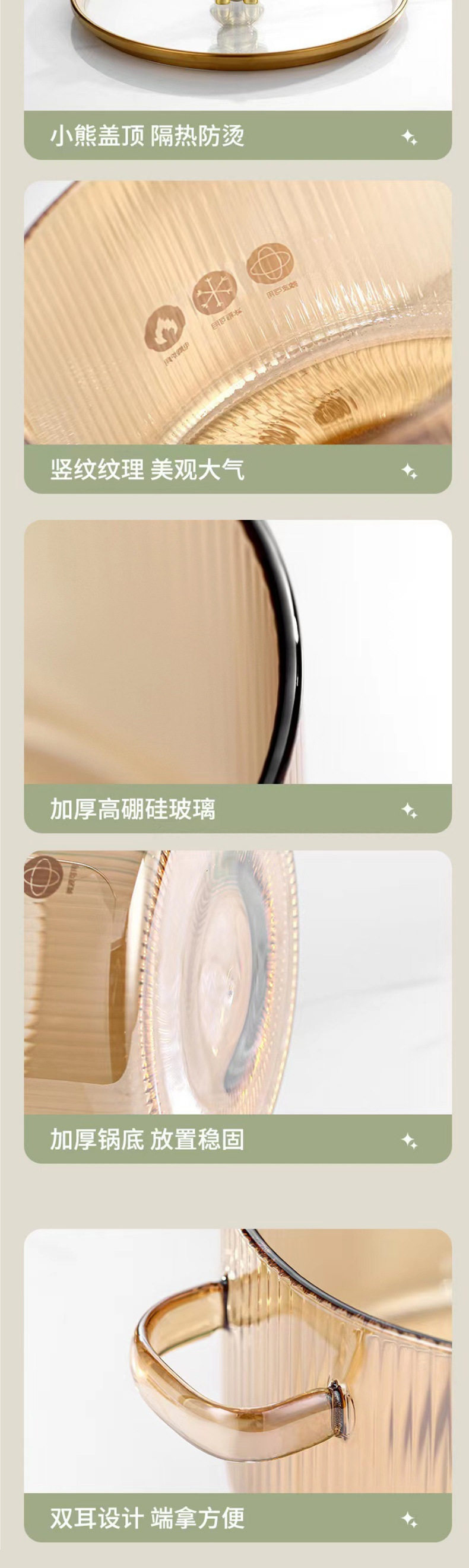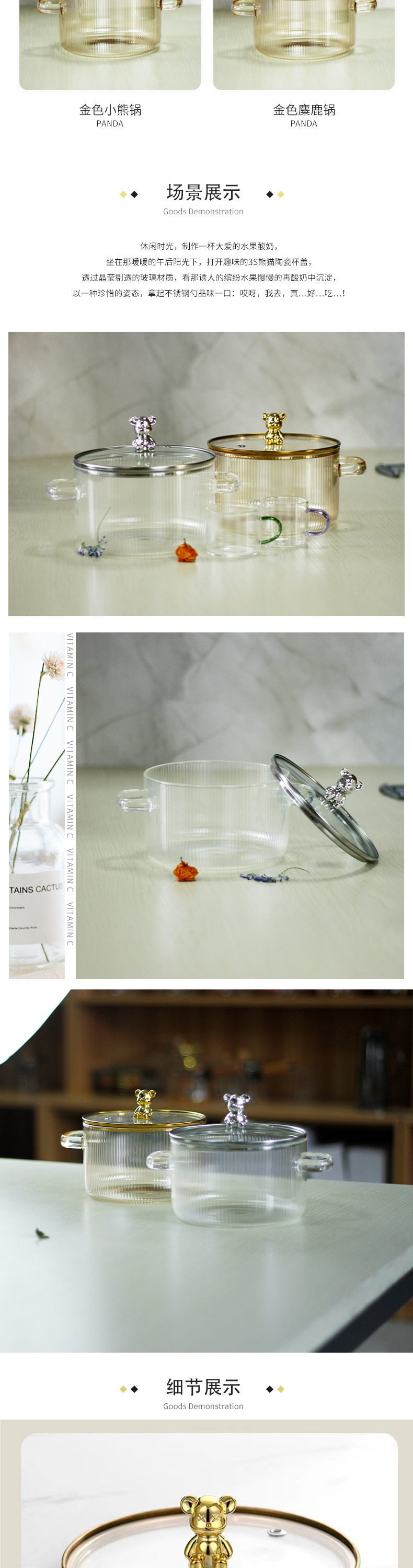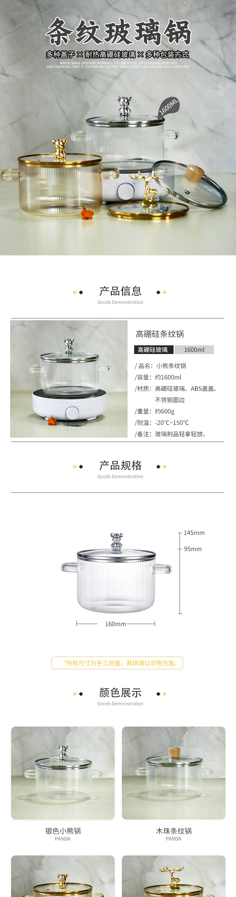 小熊条纹锅玻璃锅汤锅加厚双耳透明玻璃奶锅泡面碗高颜值火锅不粘