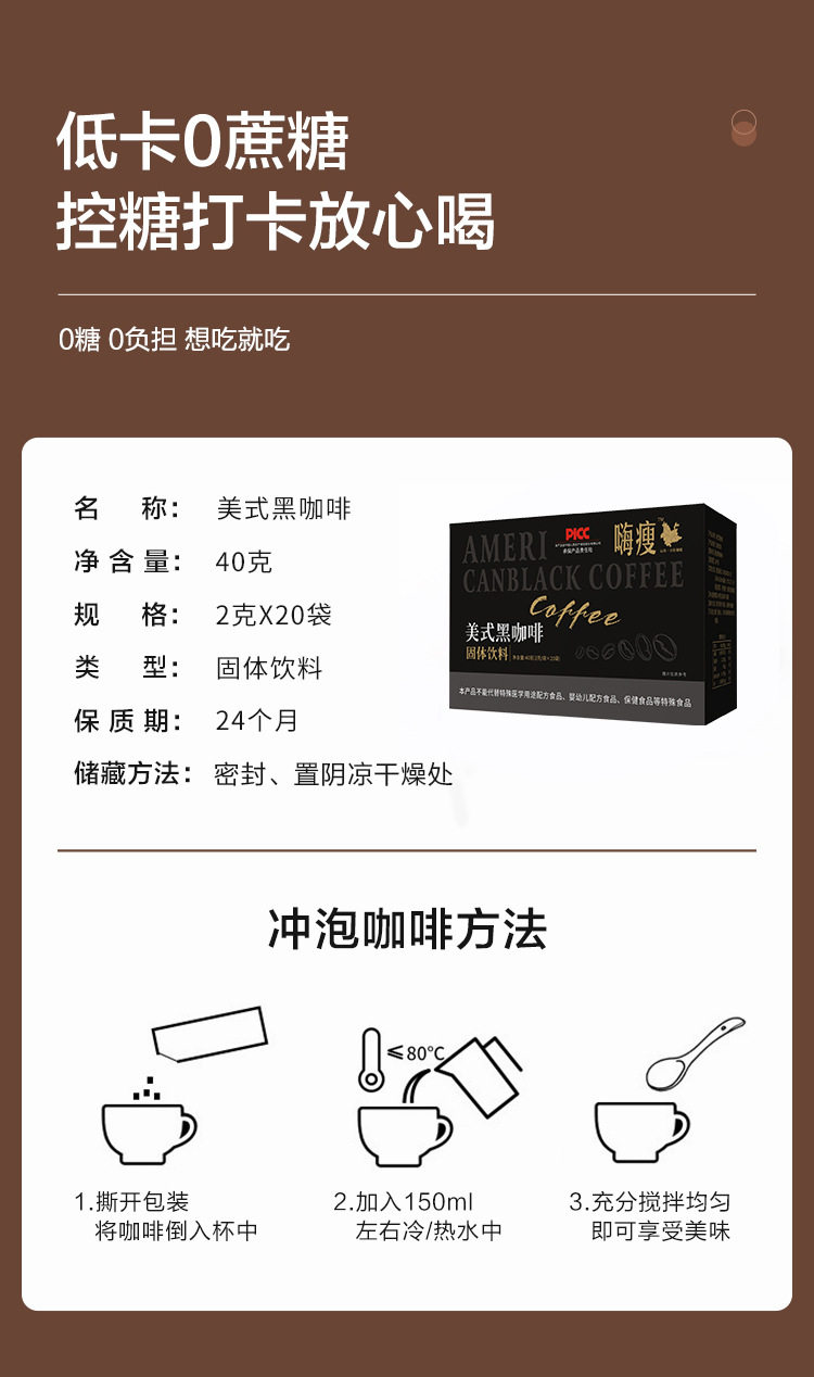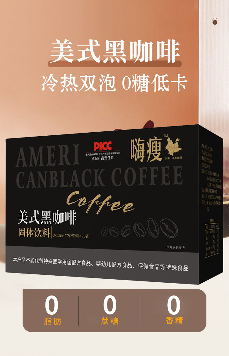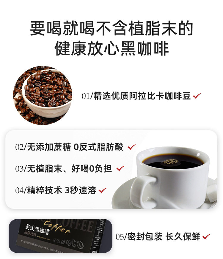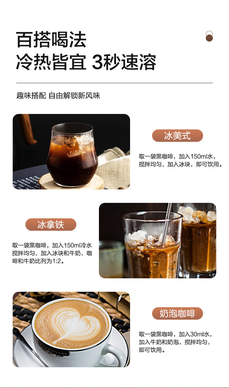 黑咖啡美式黑咖啡早晨代餐速溶健身运动冷热双泡云南速溶小粒咖啡