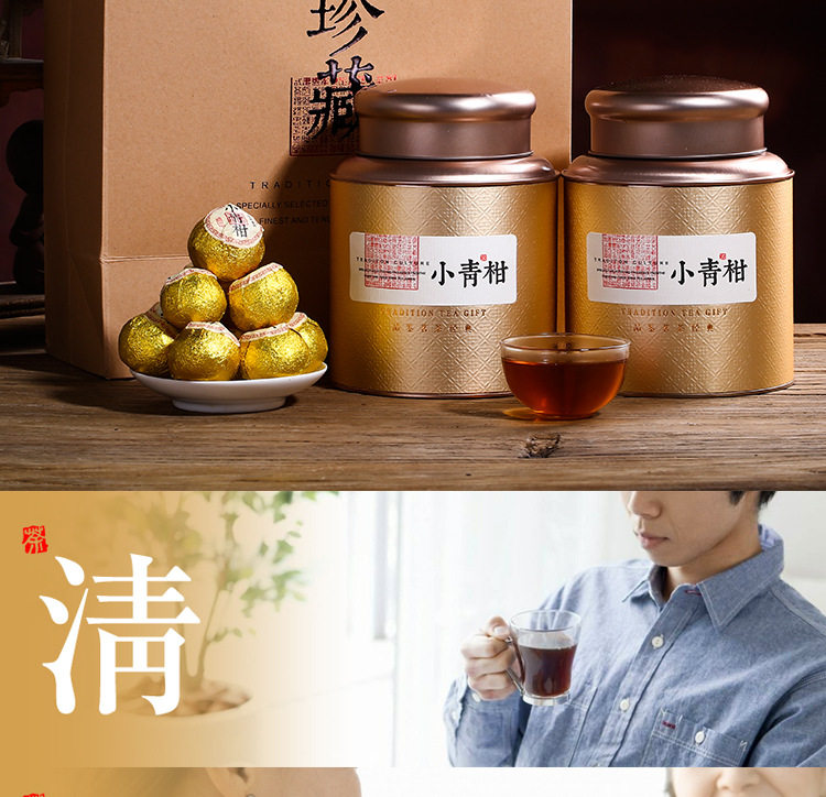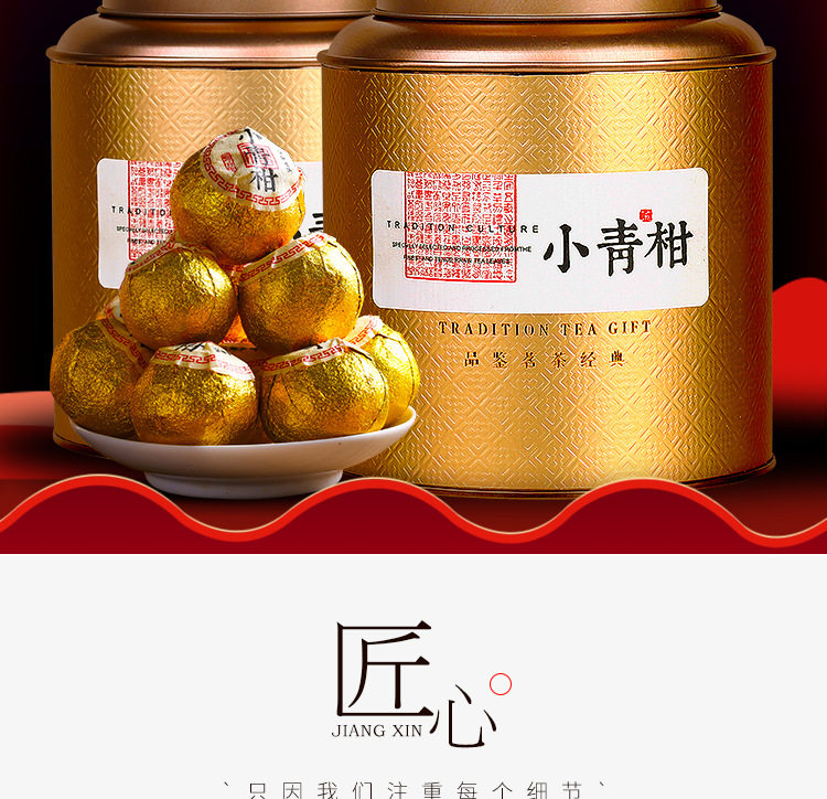 新会小青柑茶叶礼盒装高档送人八年宫廷普洱熟茶陈皮柑橘罐装250g
