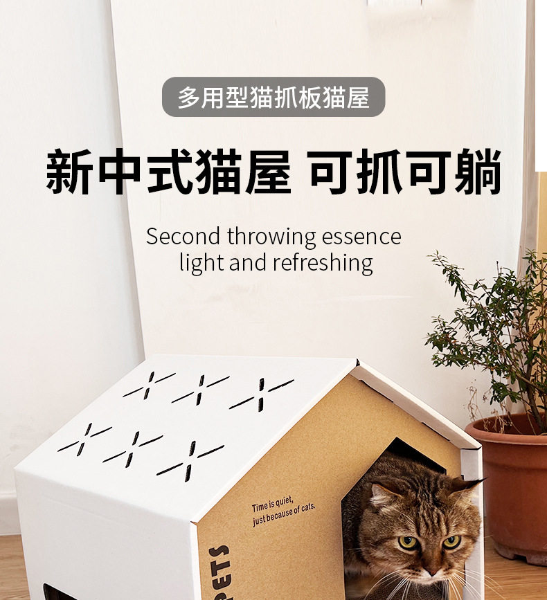 严选瓦楞纸猫抓板猫爪别墅猫屋猫房子纸壳盒猫咪纸箱猫窝四季通用