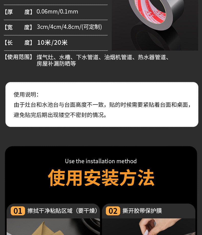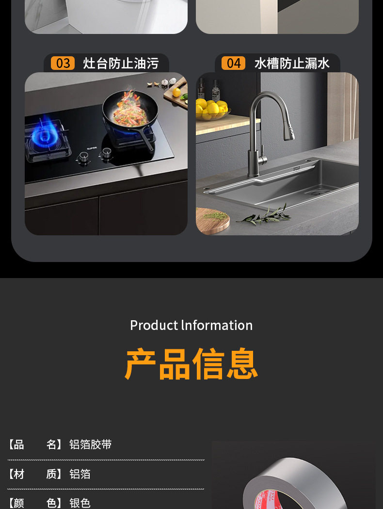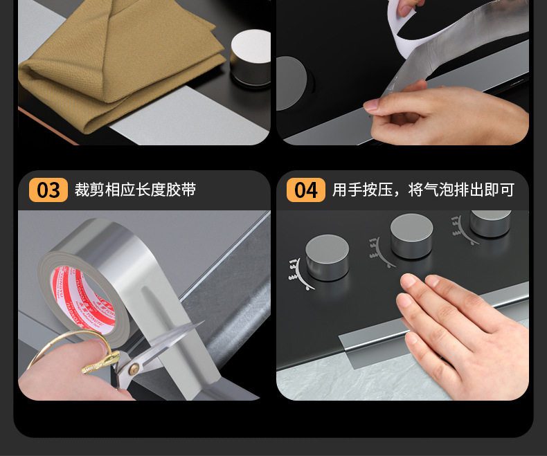 耐高温铝箔胶带厨房灶台防霉防油自粘铝箔油烟机水槽防油污美缝贴