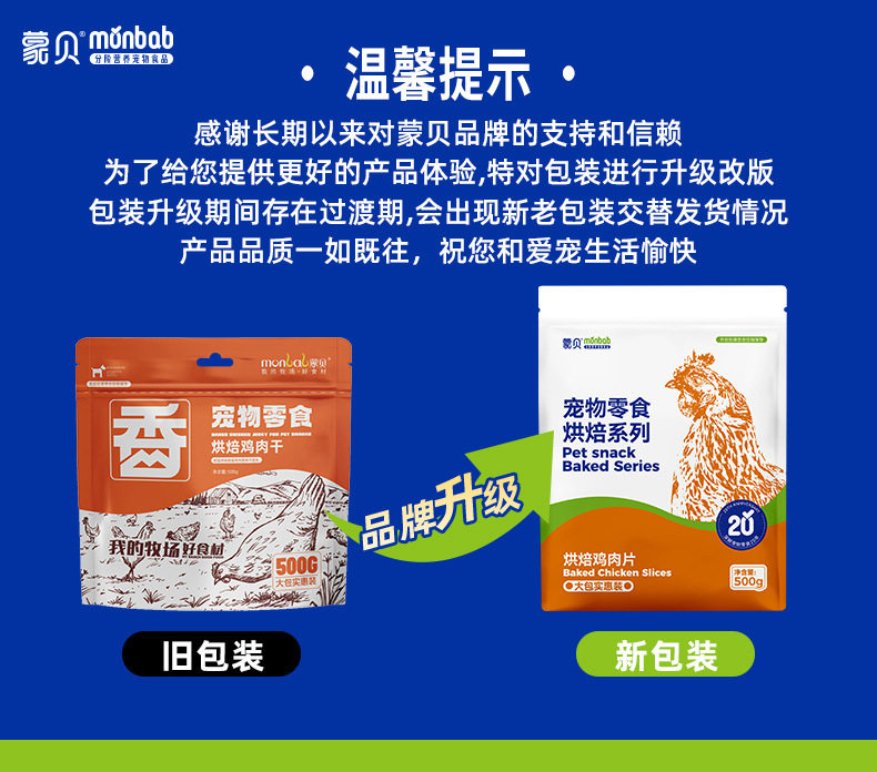 蒙贝厂家直供宠物零食鸡肉干500g狗零食训狗肉干泰迪零食批发代发