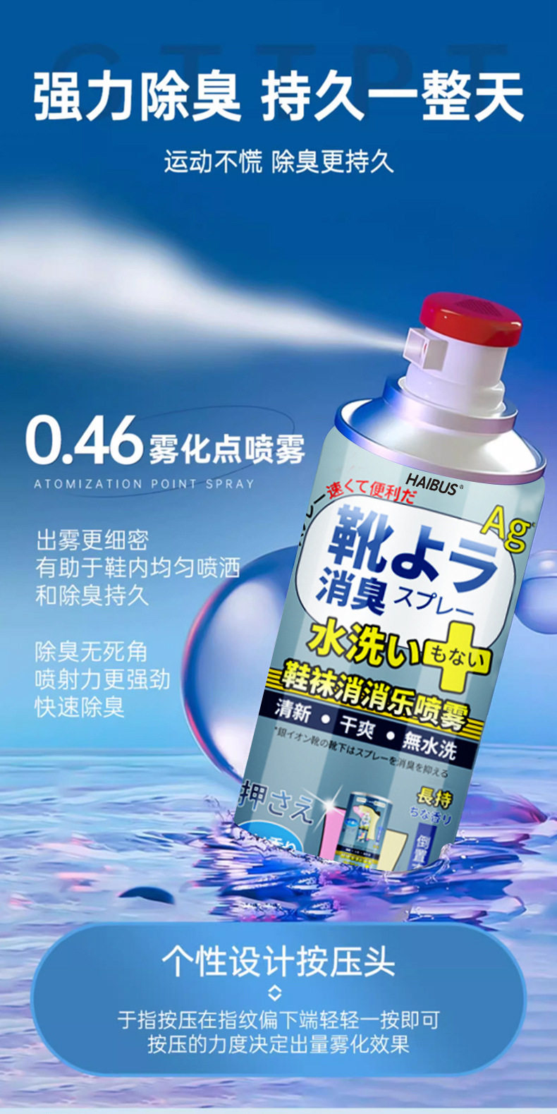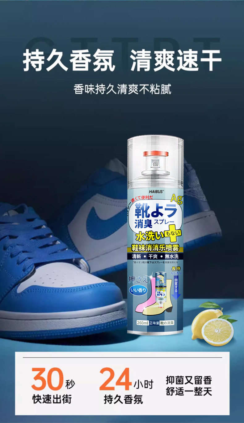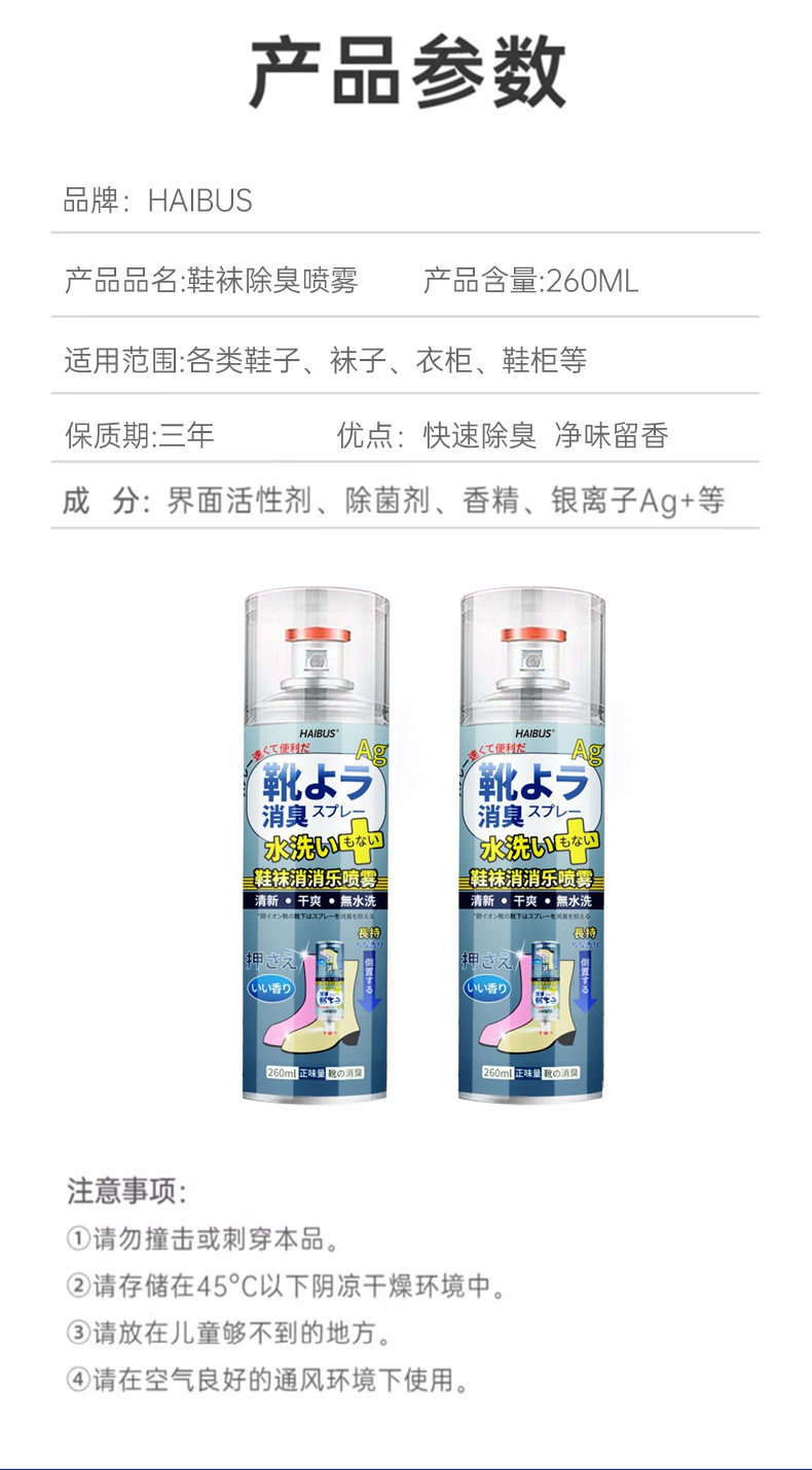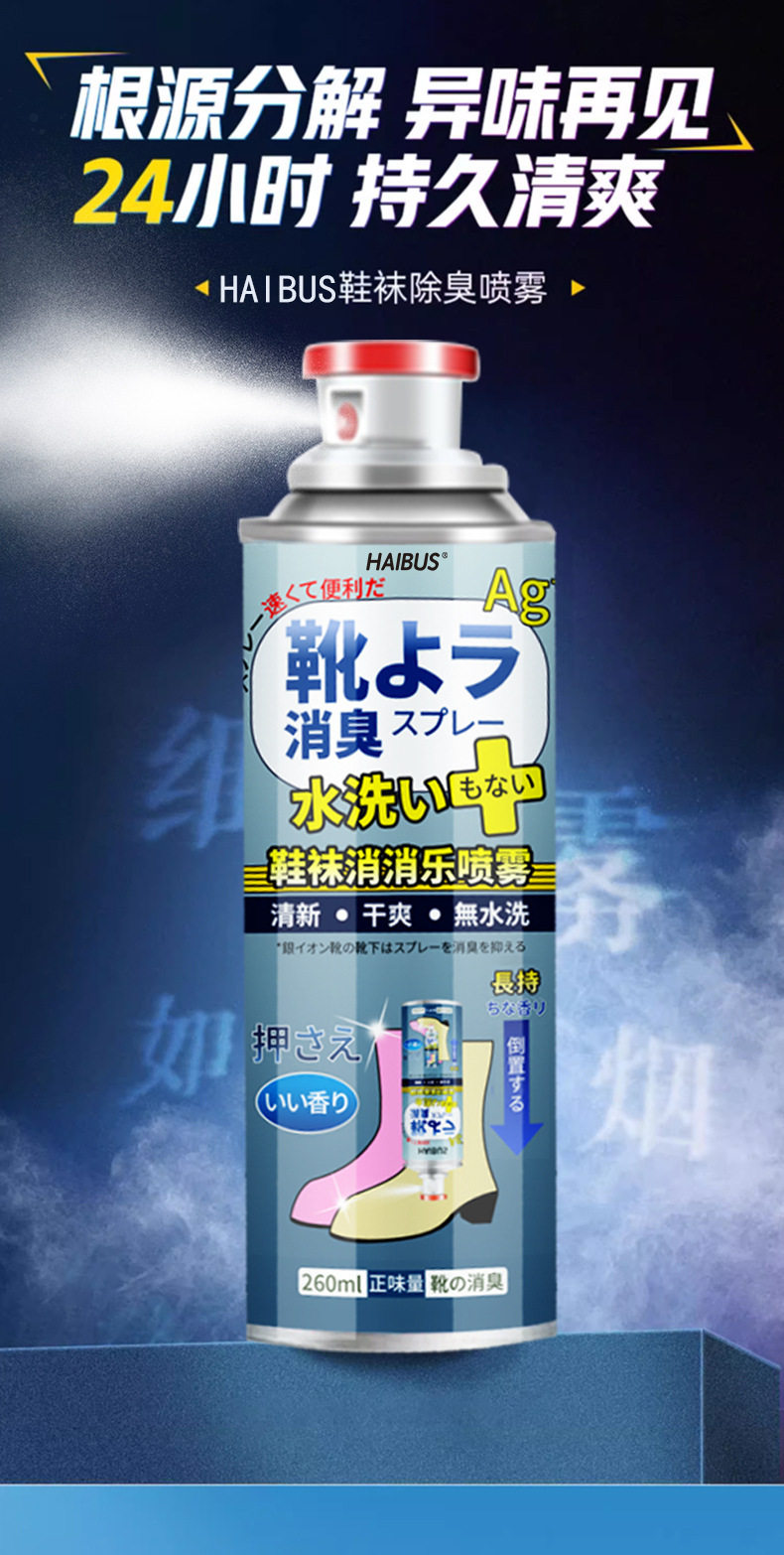 日本鞋子除臭喷雾鞋袜宠物球鞋脚气汗脚专用鞋袜除臭剂防臭神器