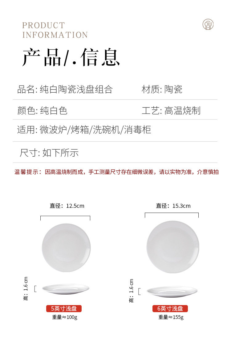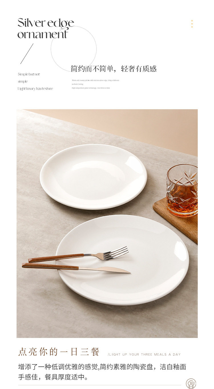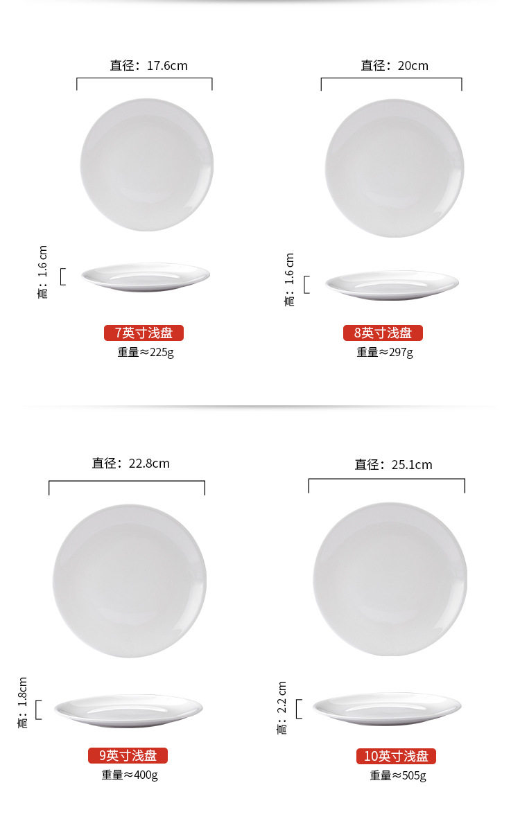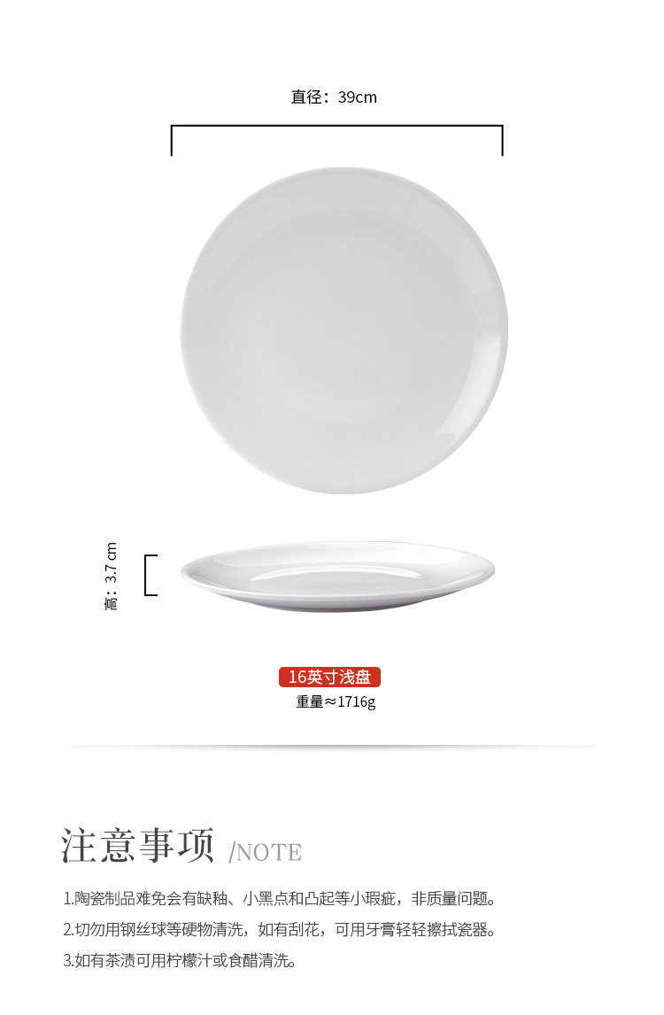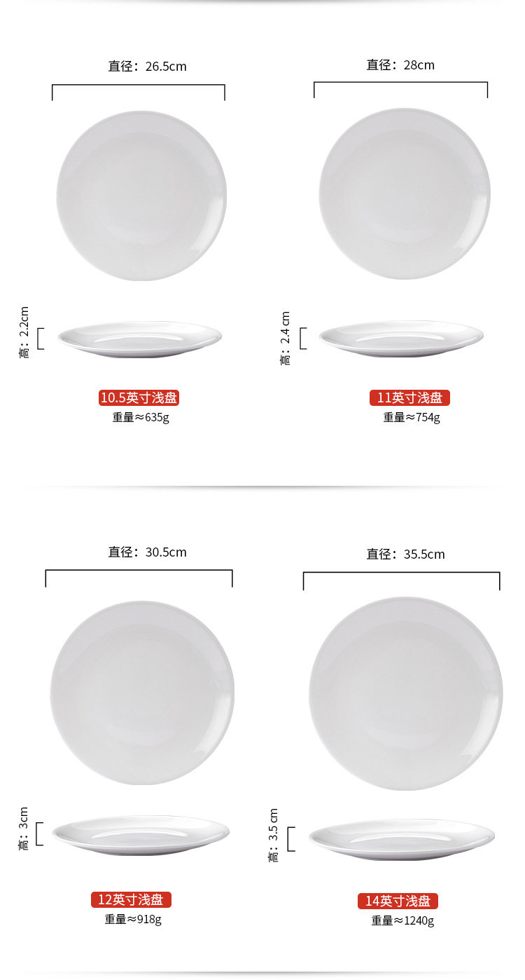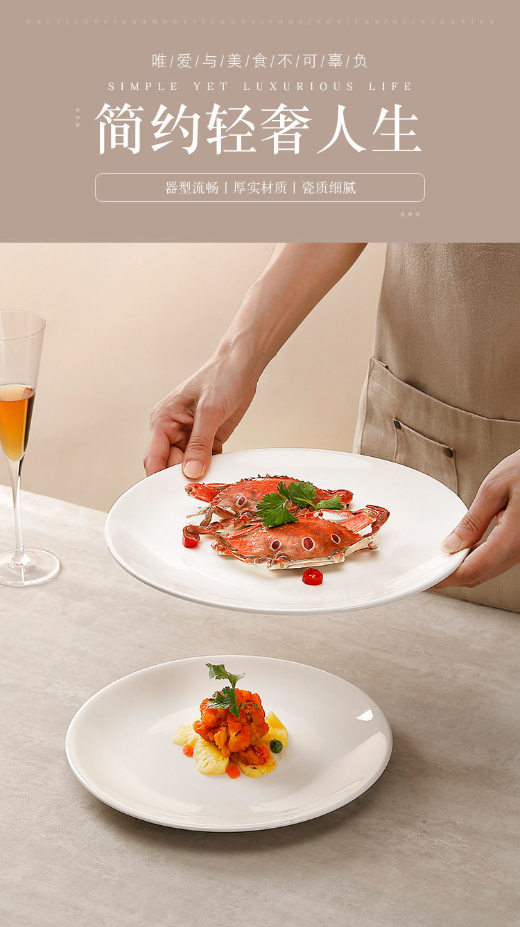 批发浅盘纯白陶瓷盘家用菜盘酒店西餐牛排盘子菜碟西式餐具平盘