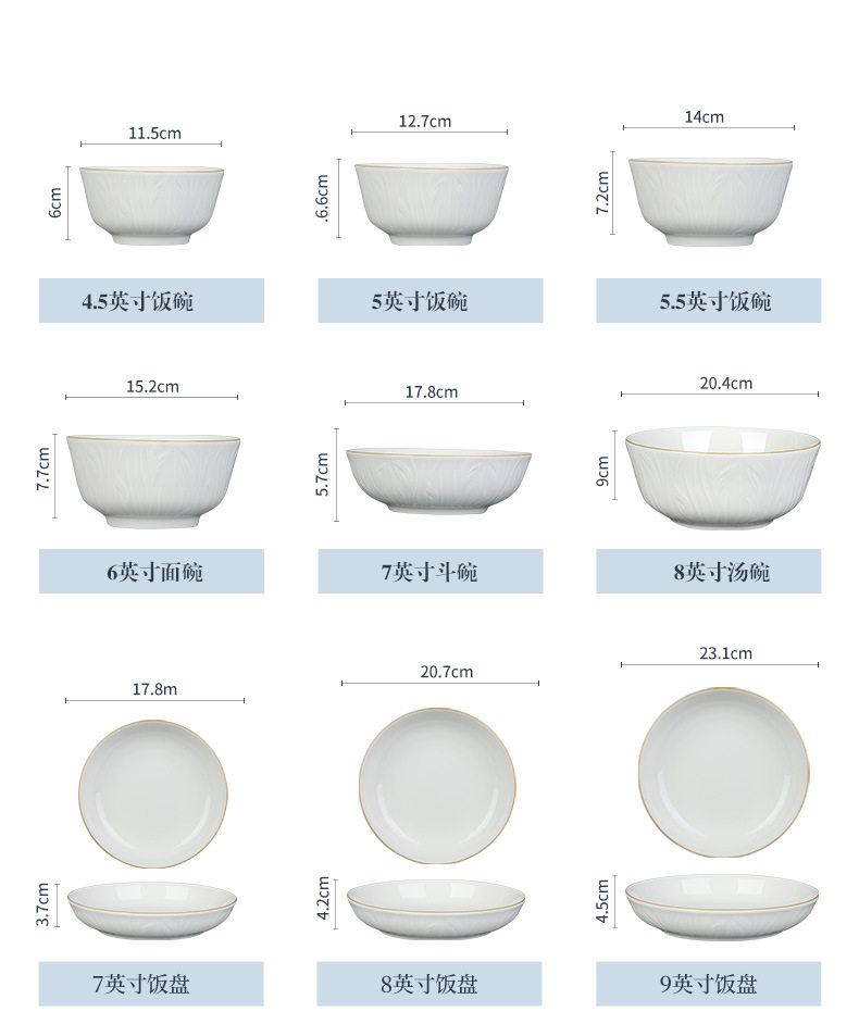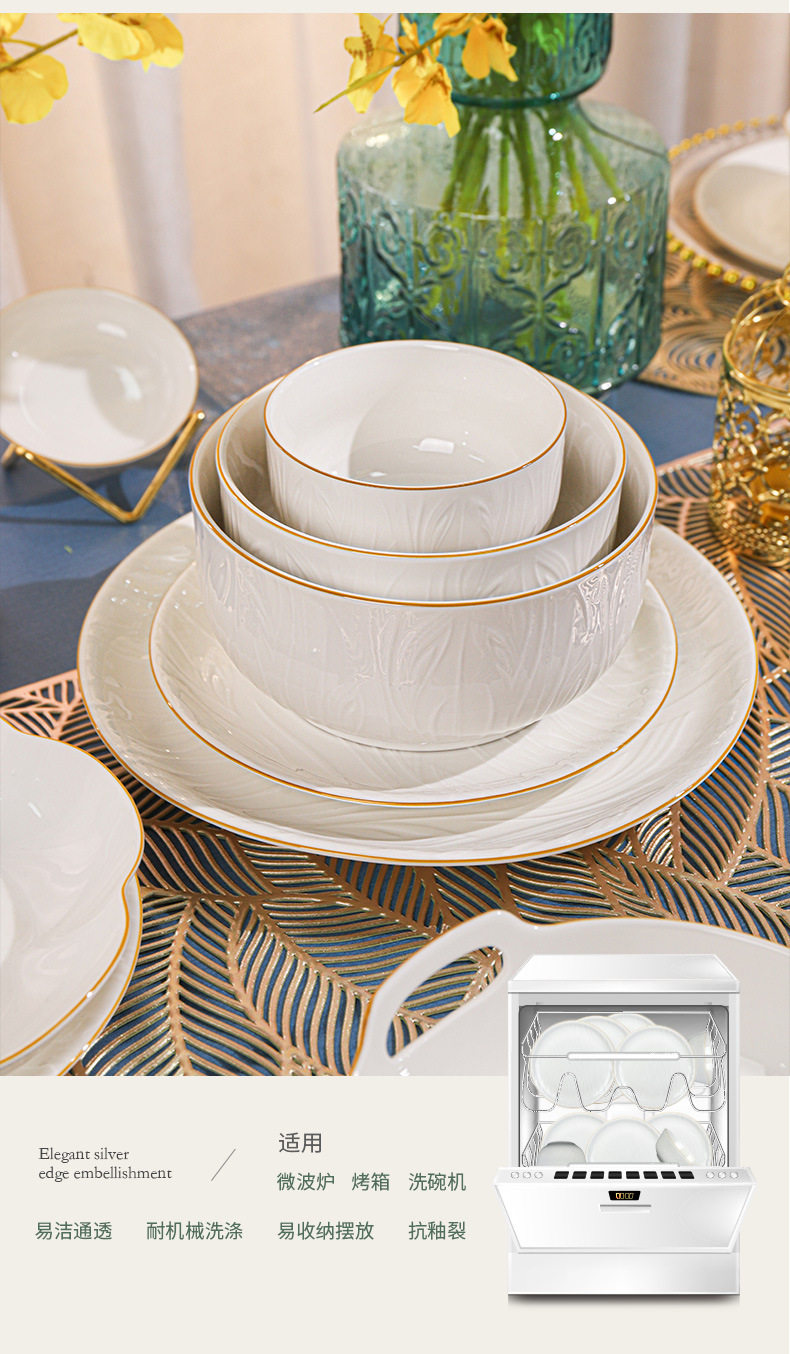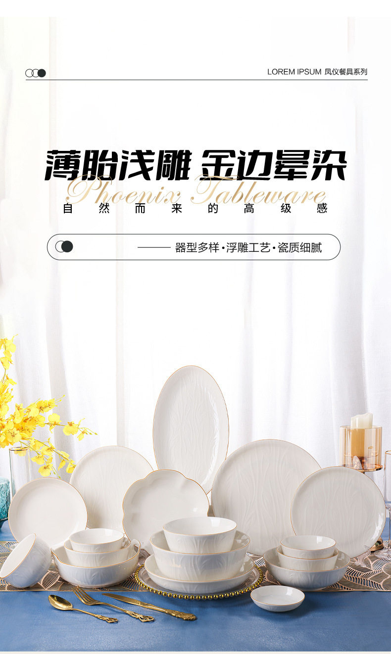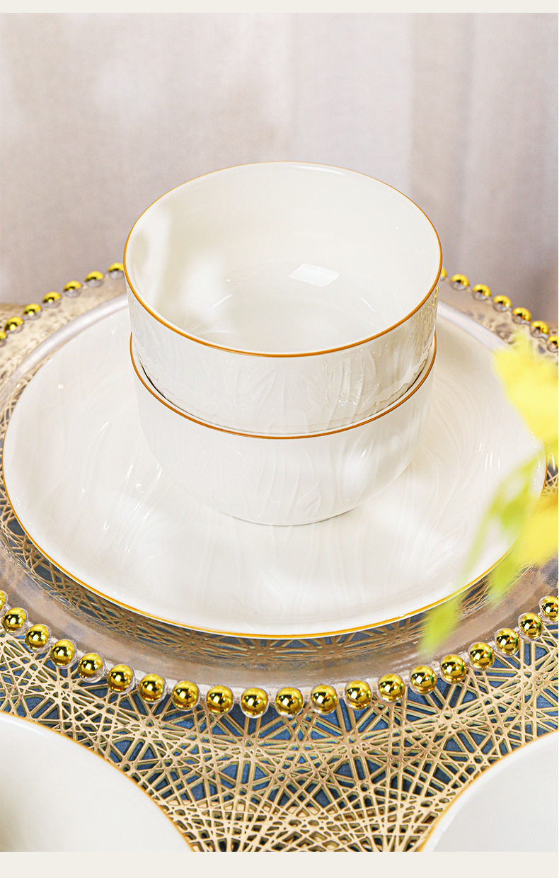顺祥【凤仪】陶瓷餐具纯白浮雕饭碗高温釉下彩碗碟套装家用汤面碗