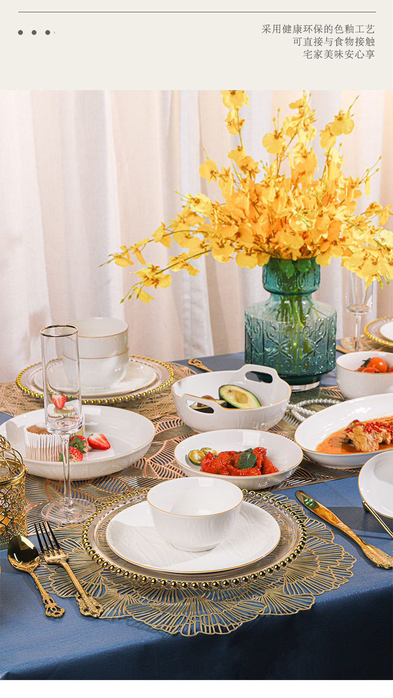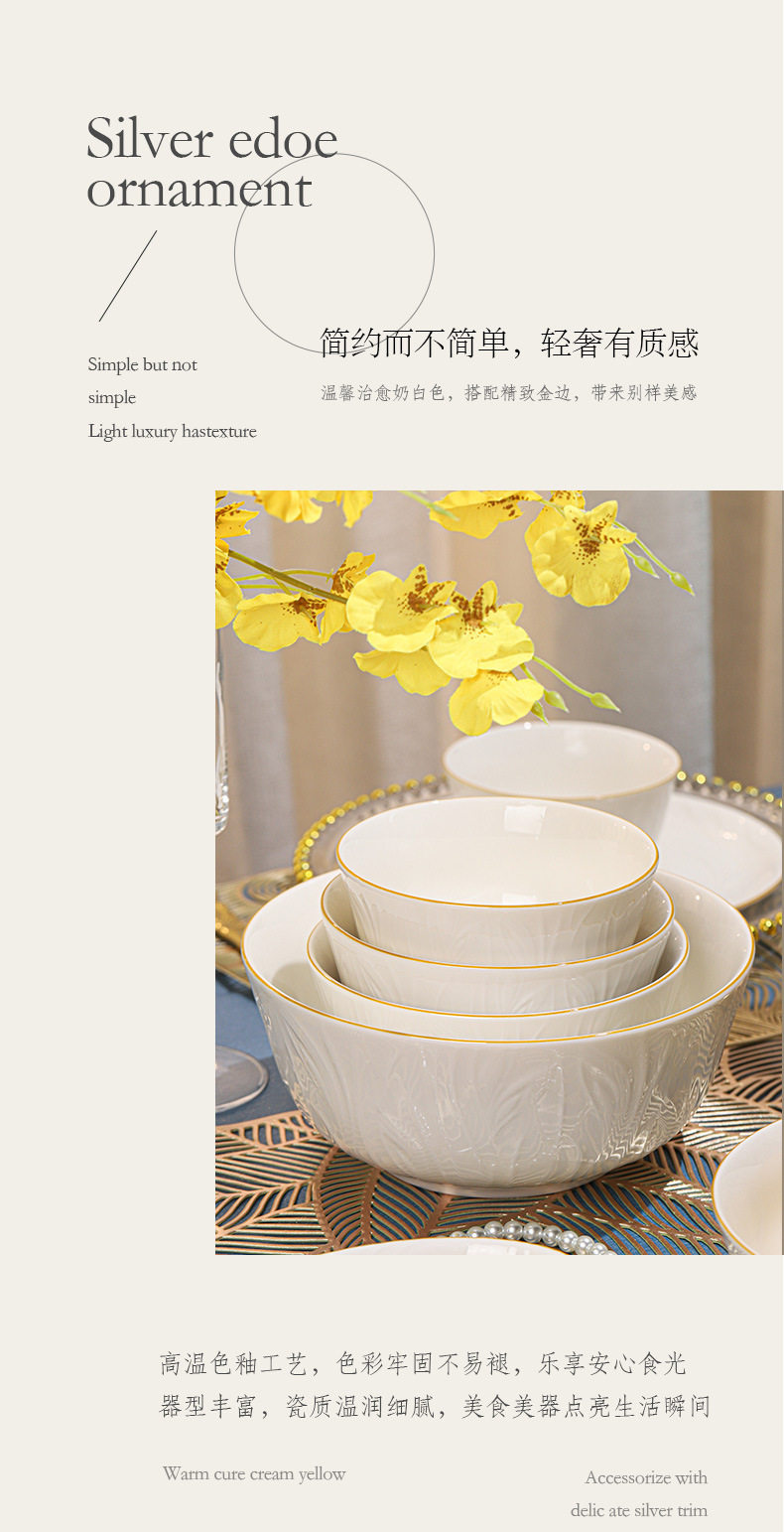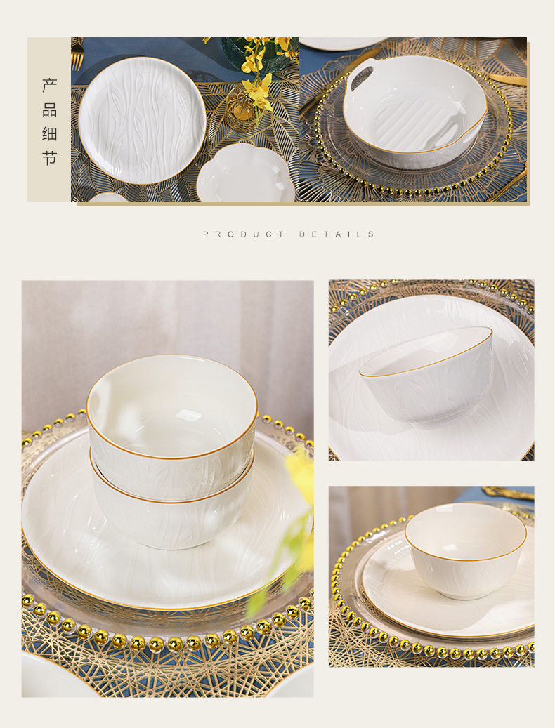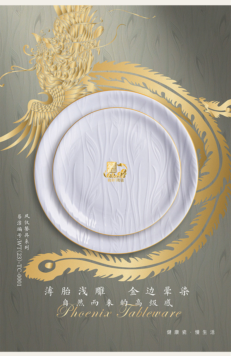 顺祥【凤仪】陶瓷餐具纯白浮雕饭碗高温釉下彩碗碟套装家用汤面碗