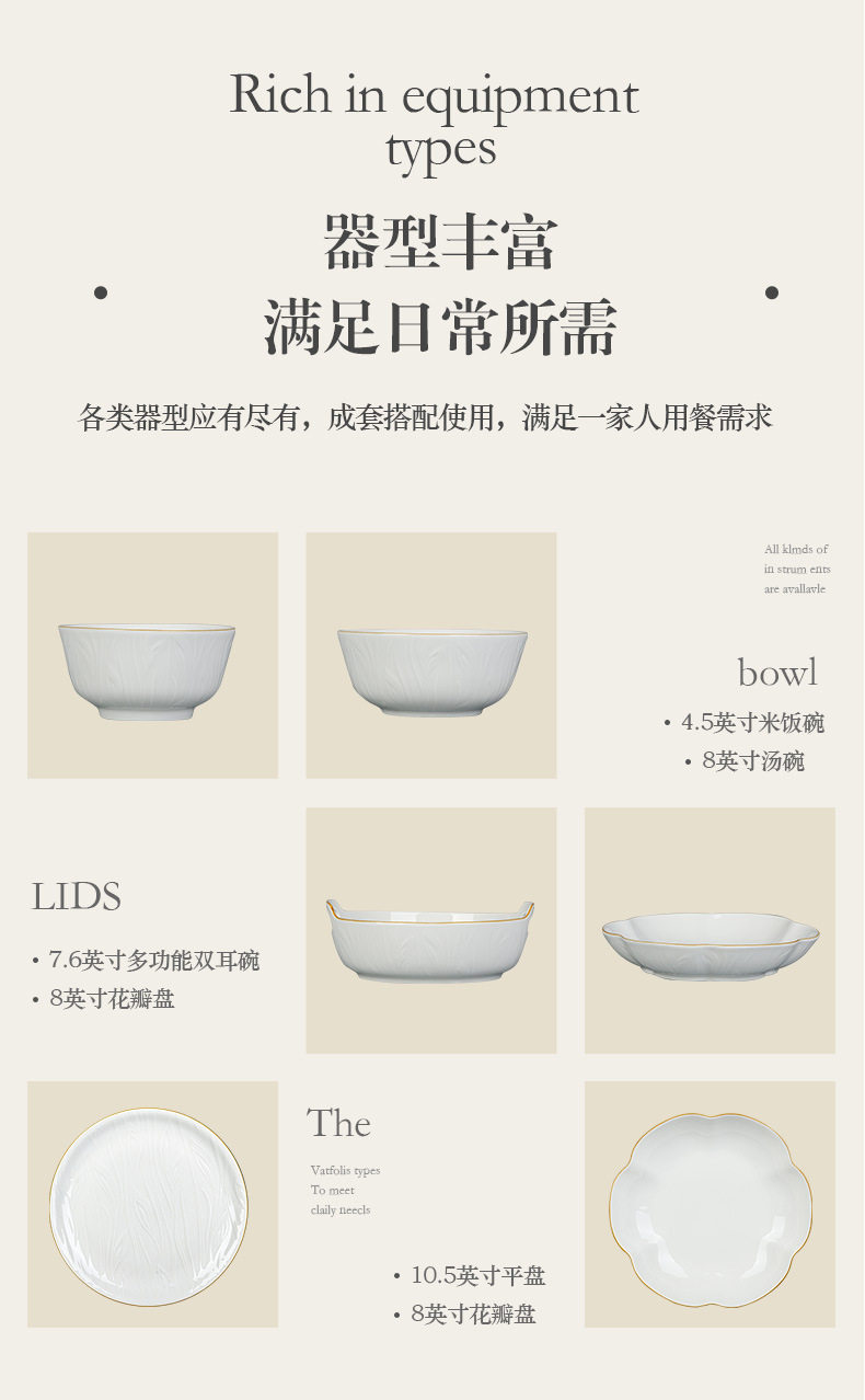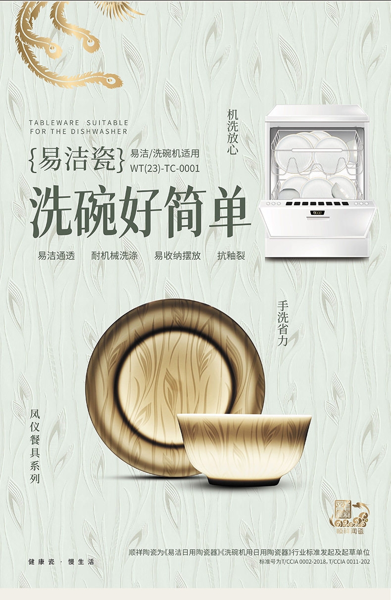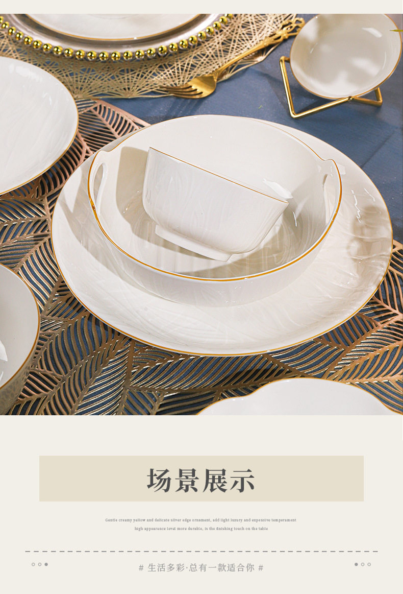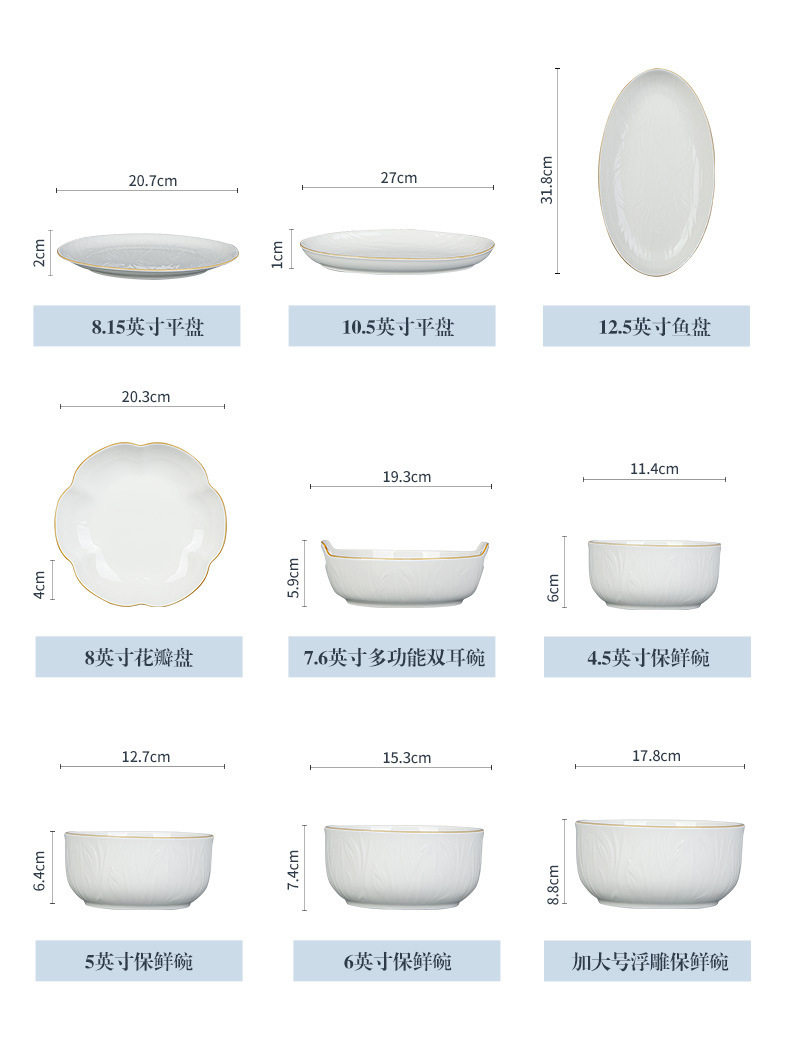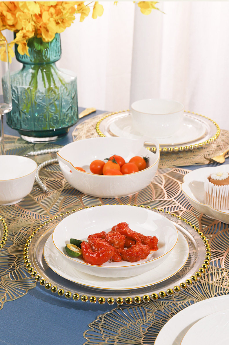 顺祥【凤仪】陶瓷餐具纯白浮雕饭碗高温釉下彩碗碟套装家用汤面碗
