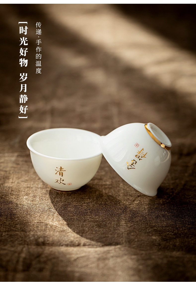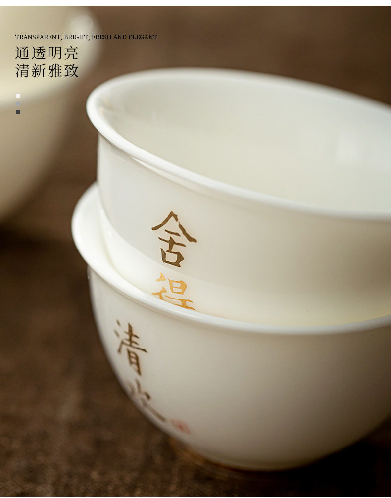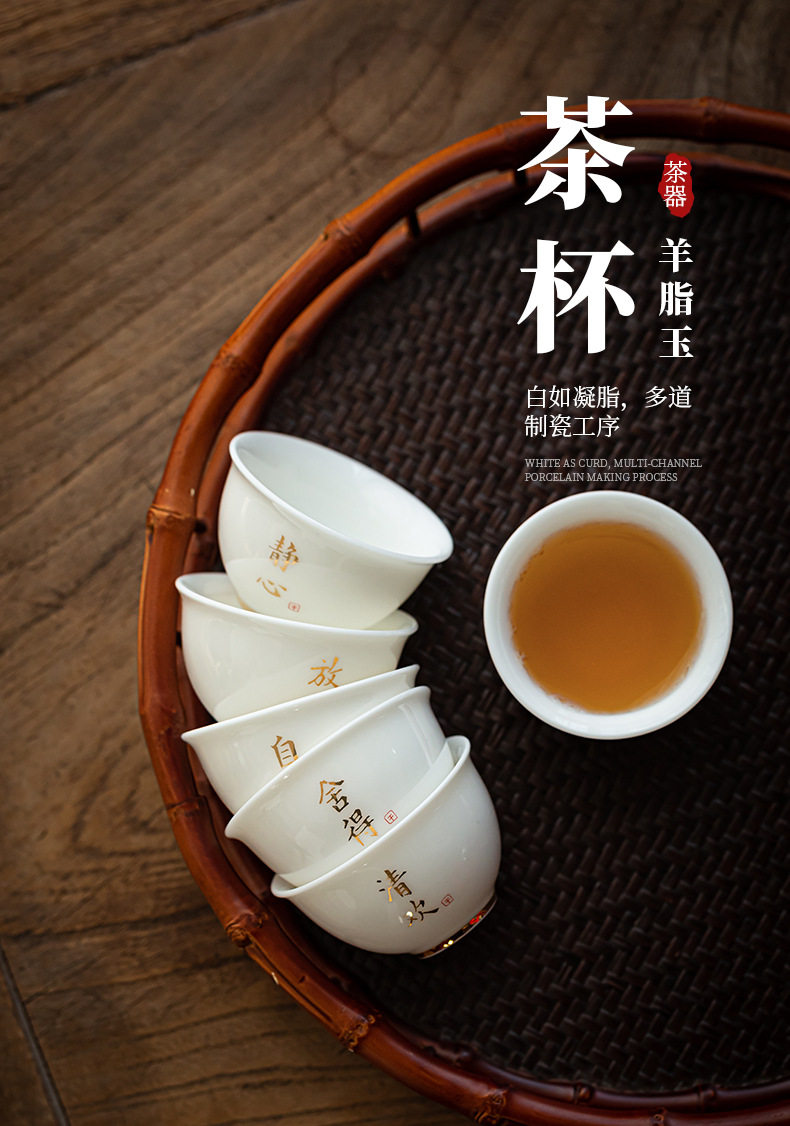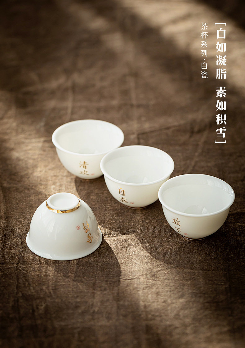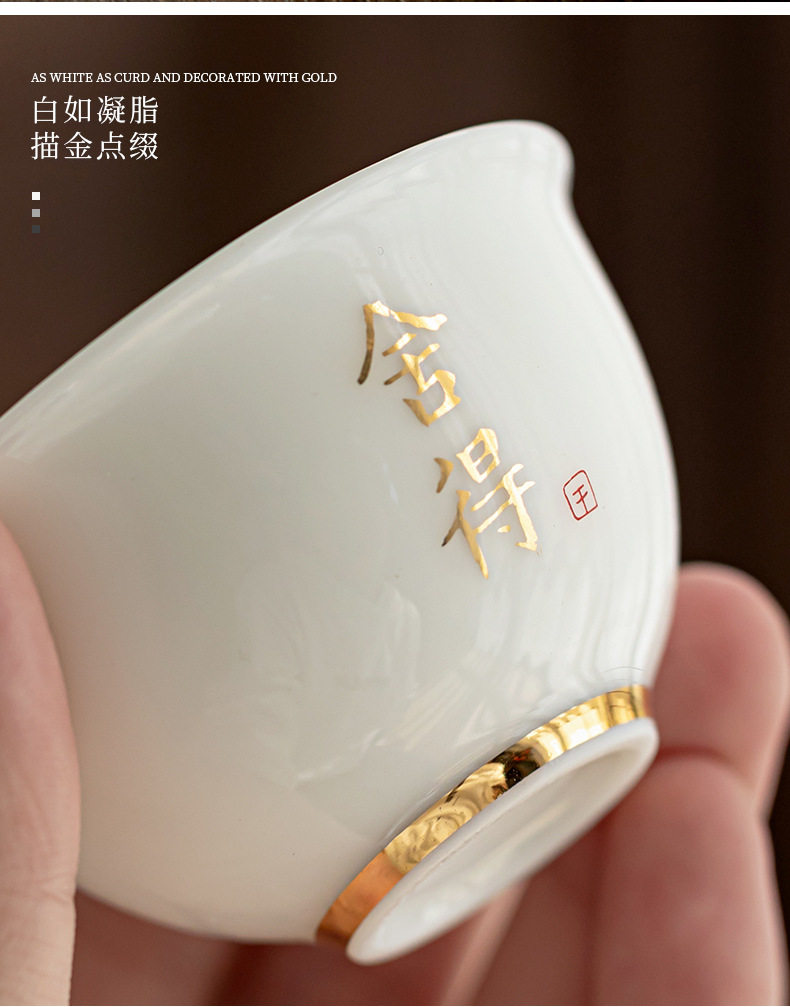 德化羊脂玉白瓷描金边茶杯功夫茶具小茶杯陶瓷纯白品茗杯子客人杯