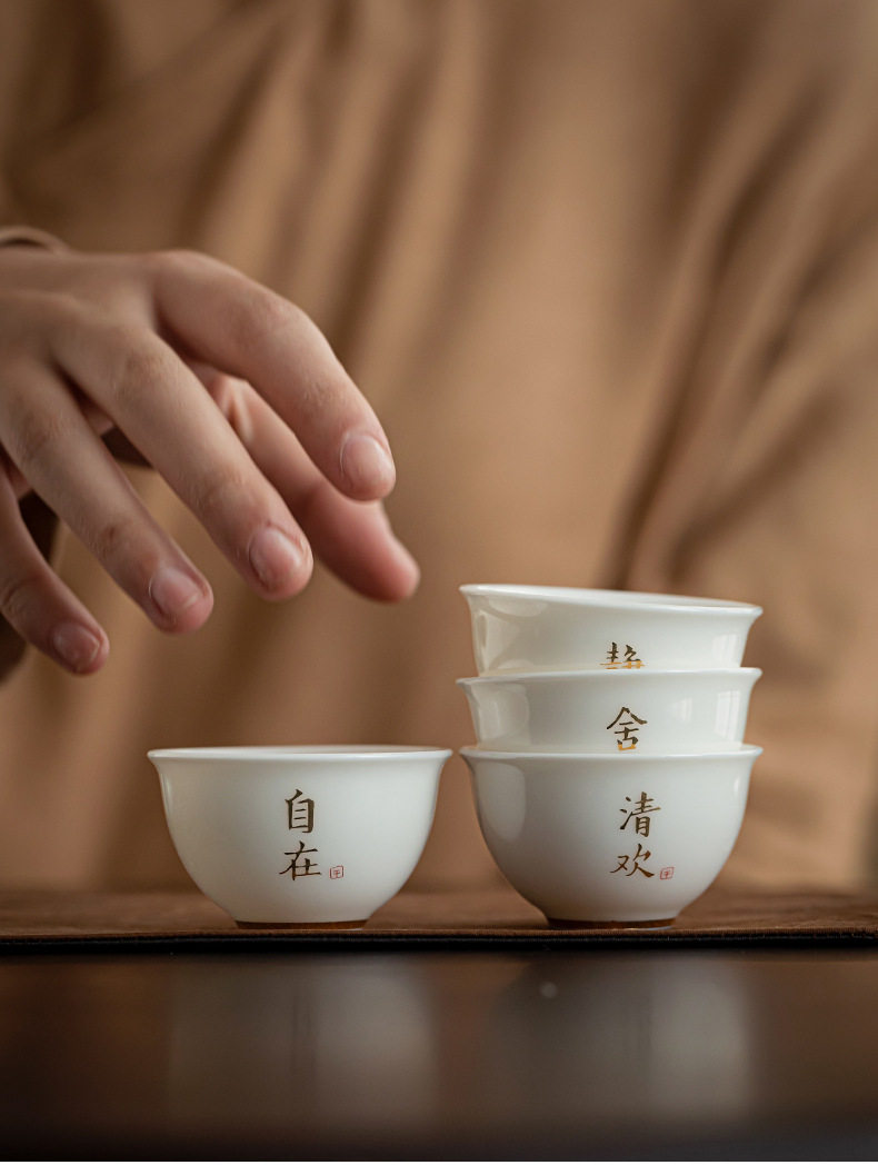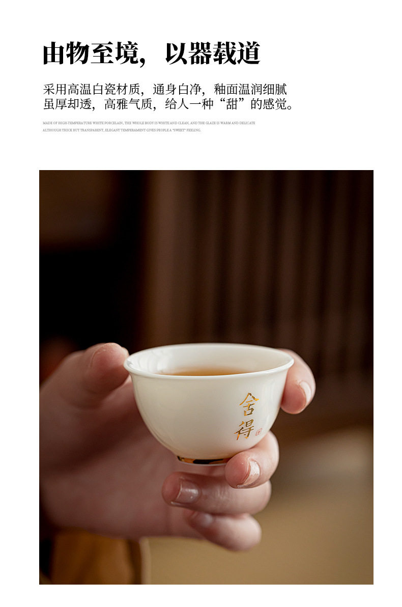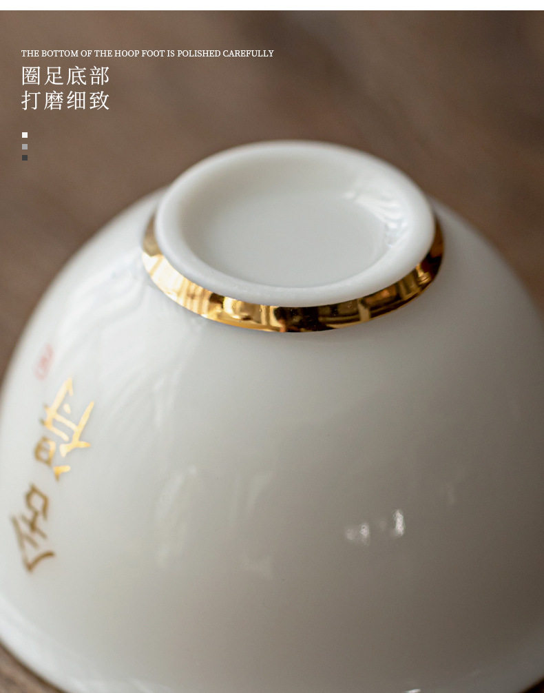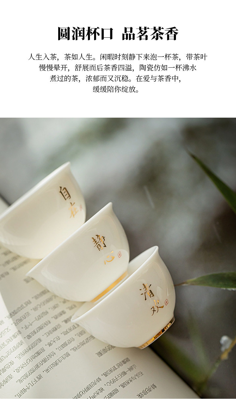 德化羊脂玉白瓷描金边茶杯功夫茶具小茶杯陶瓷纯白品茗杯子客人杯
