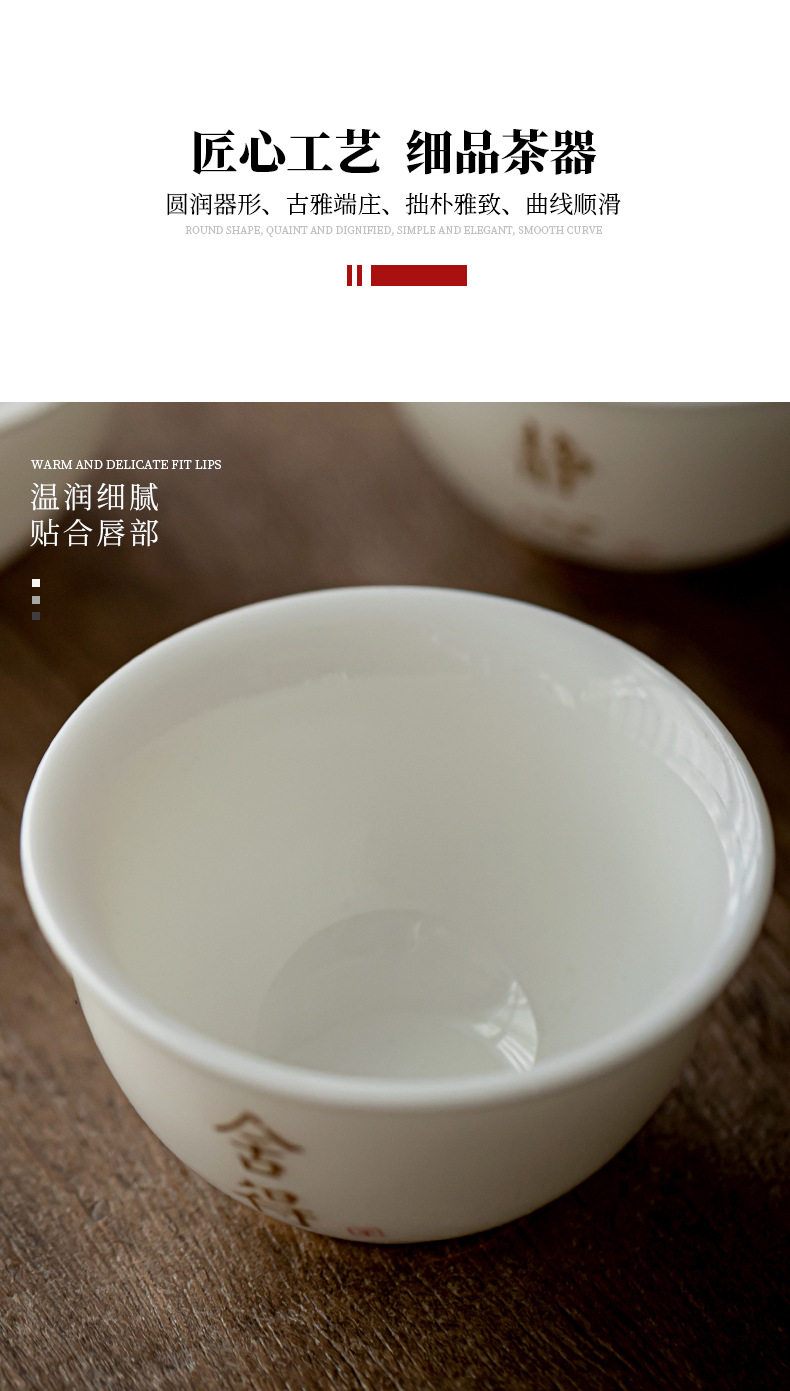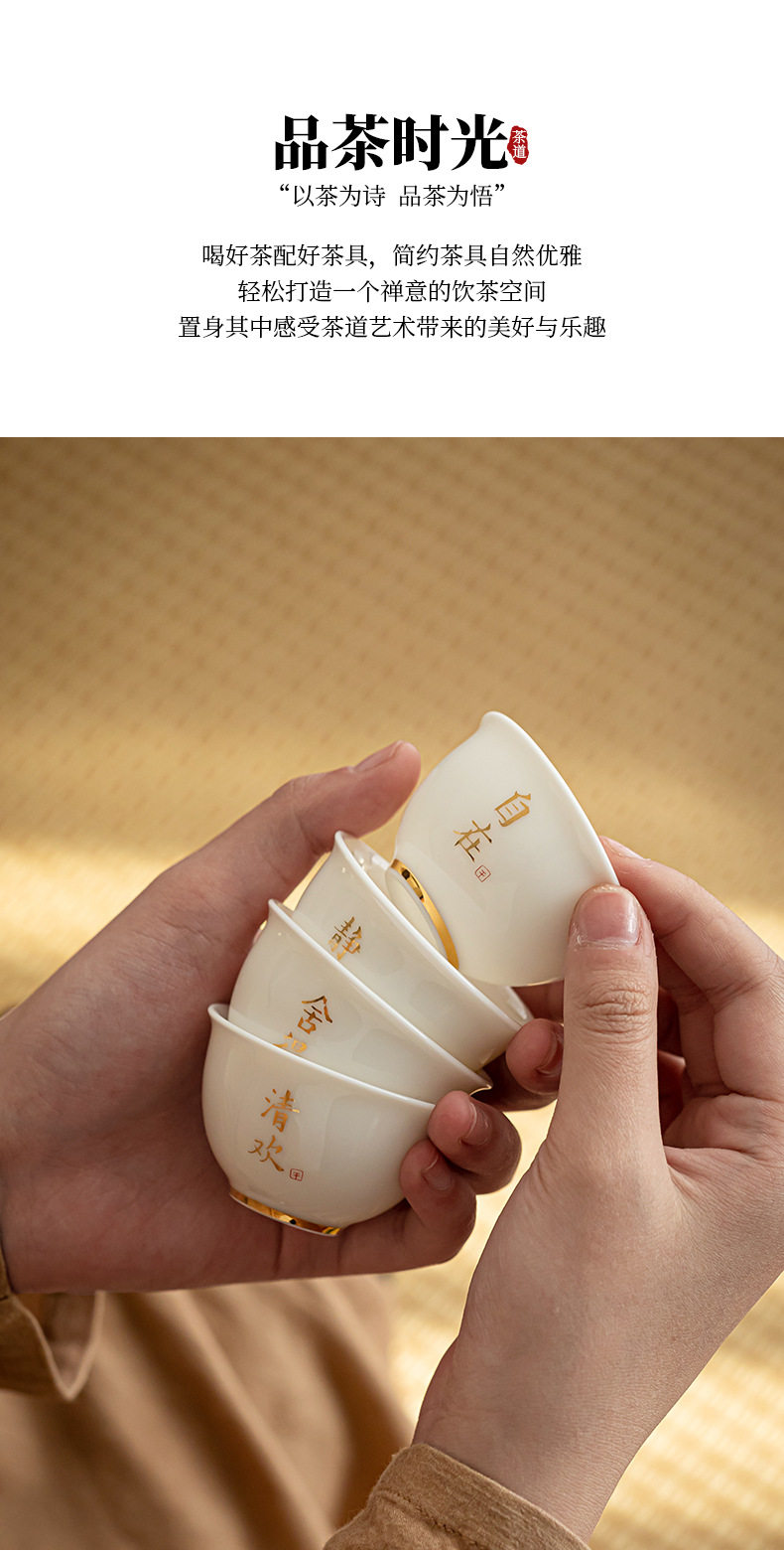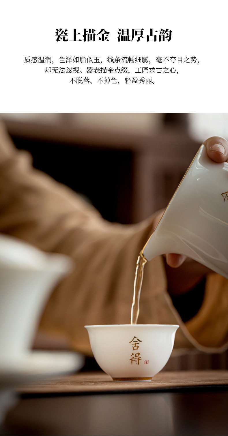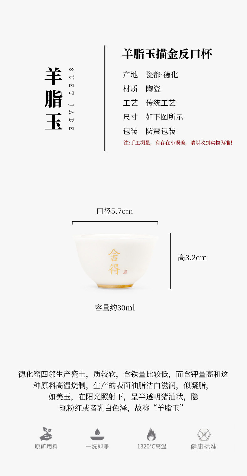 德化羊脂玉白瓷描金边茶杯功夫茶具小茶杯陶瓷纯白品茗杯子客人杯