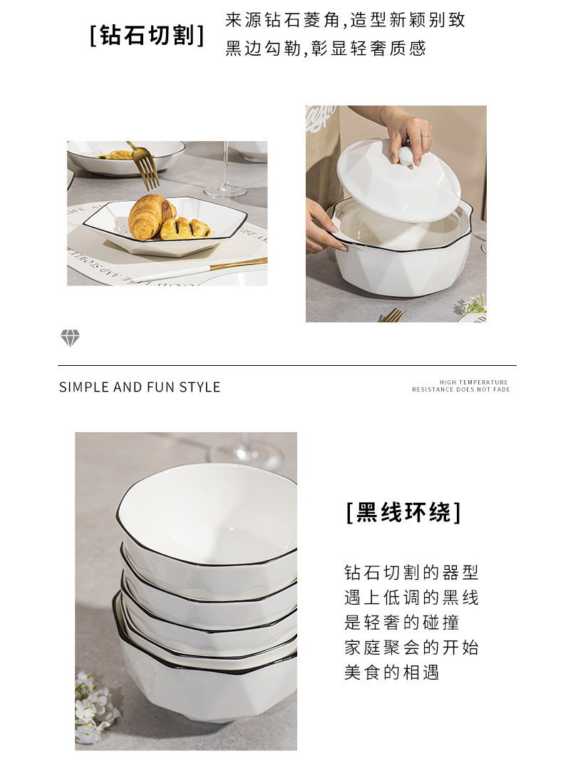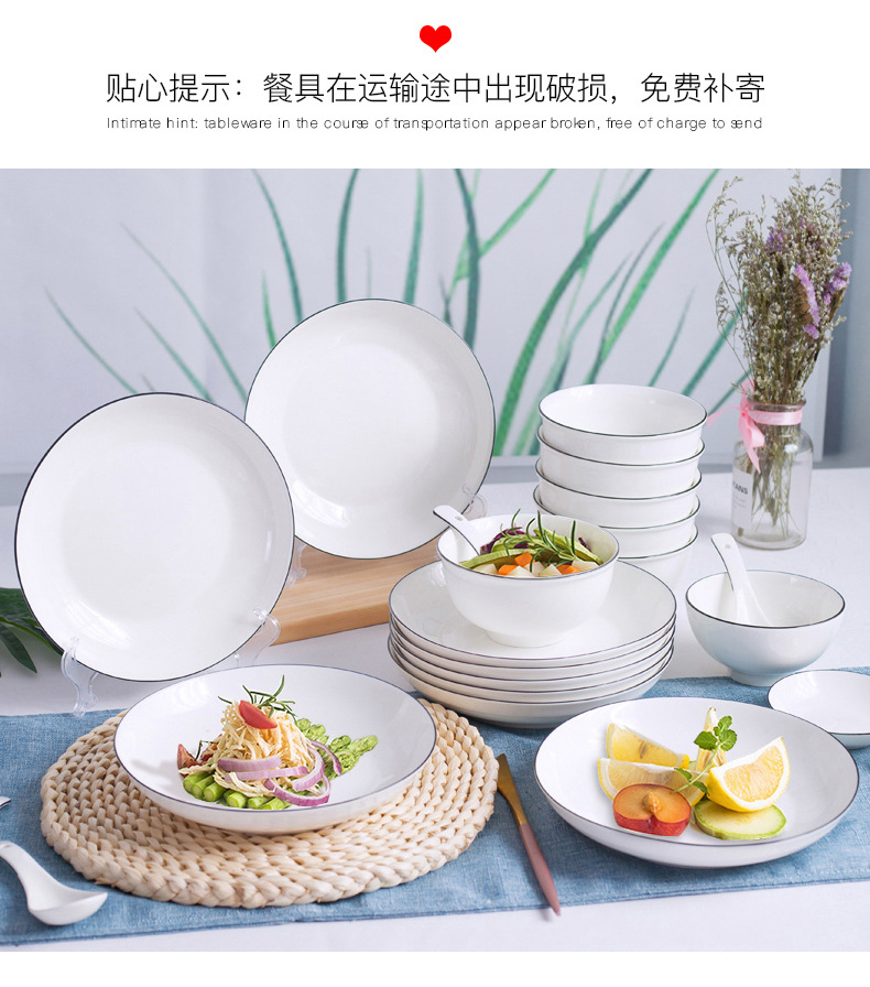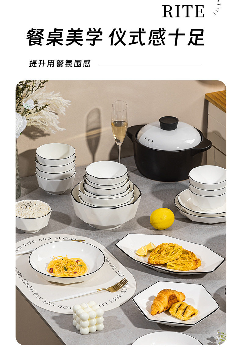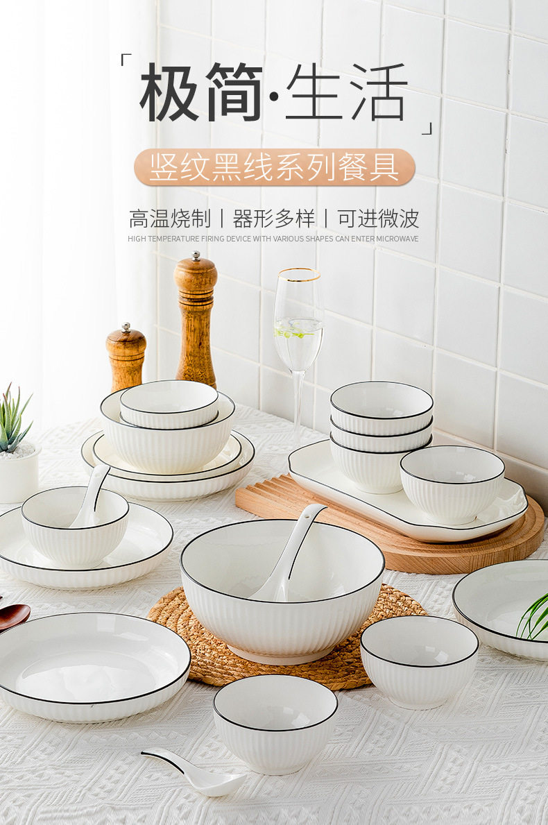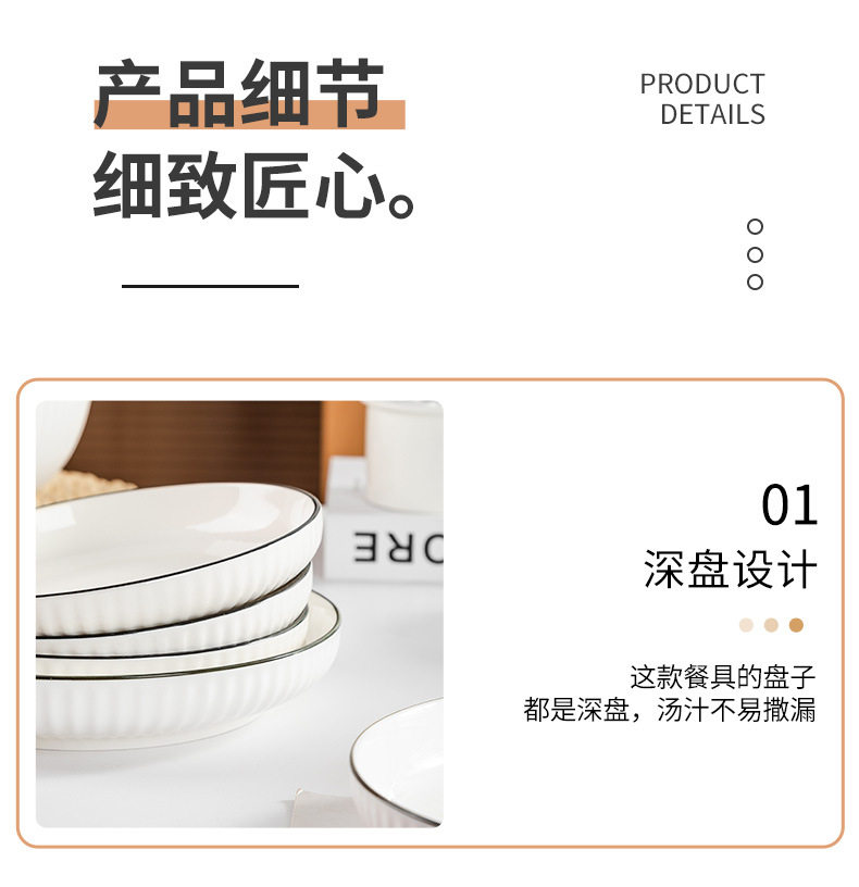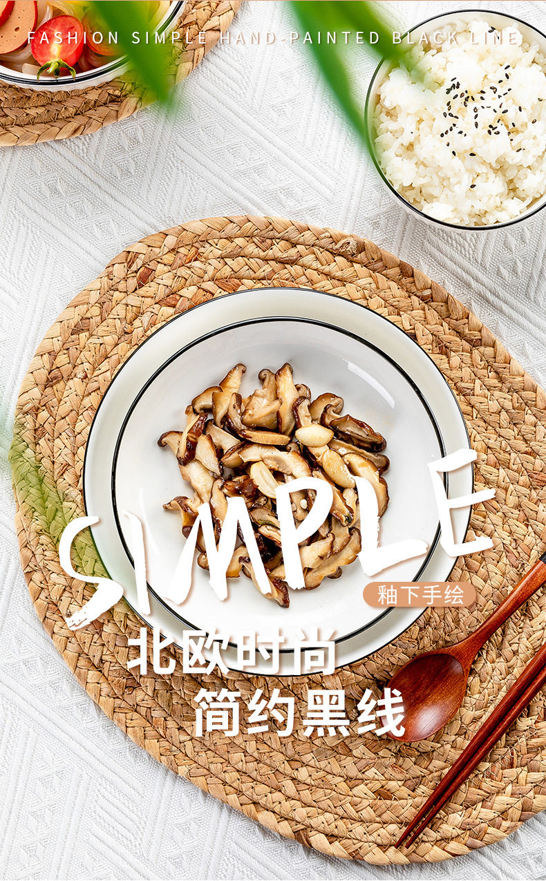 釉下彩陶瓷餐具菜碟简约北欧风网红碗盘家用碗碟套装微波炉吃饭碗