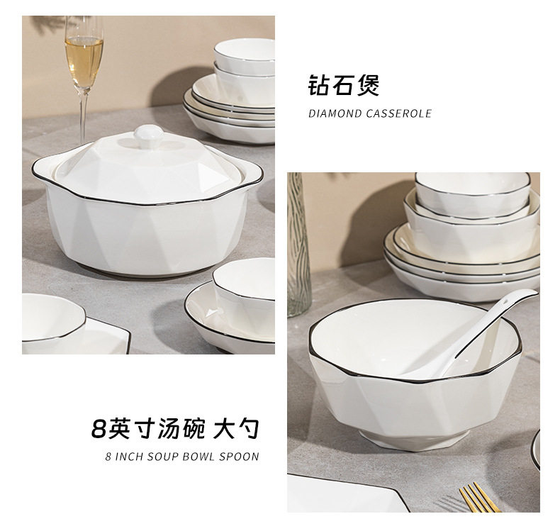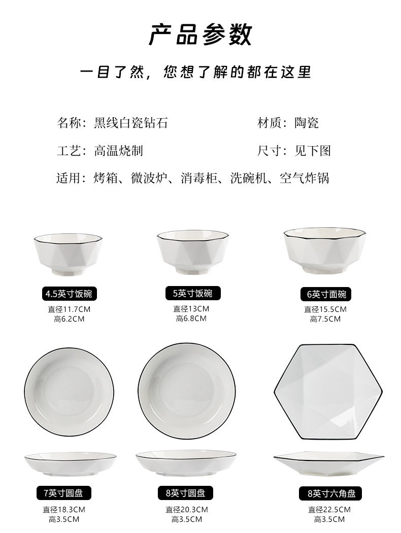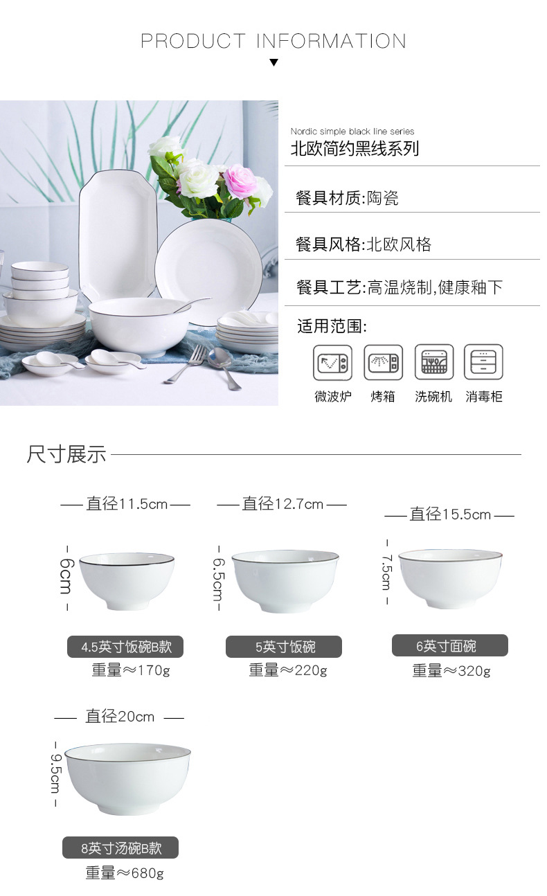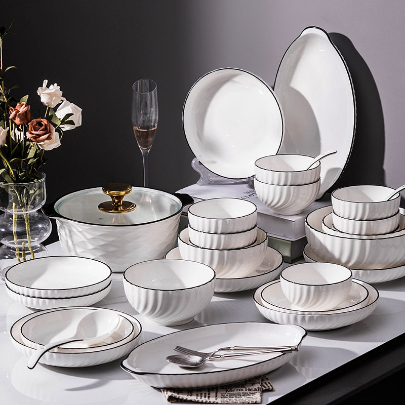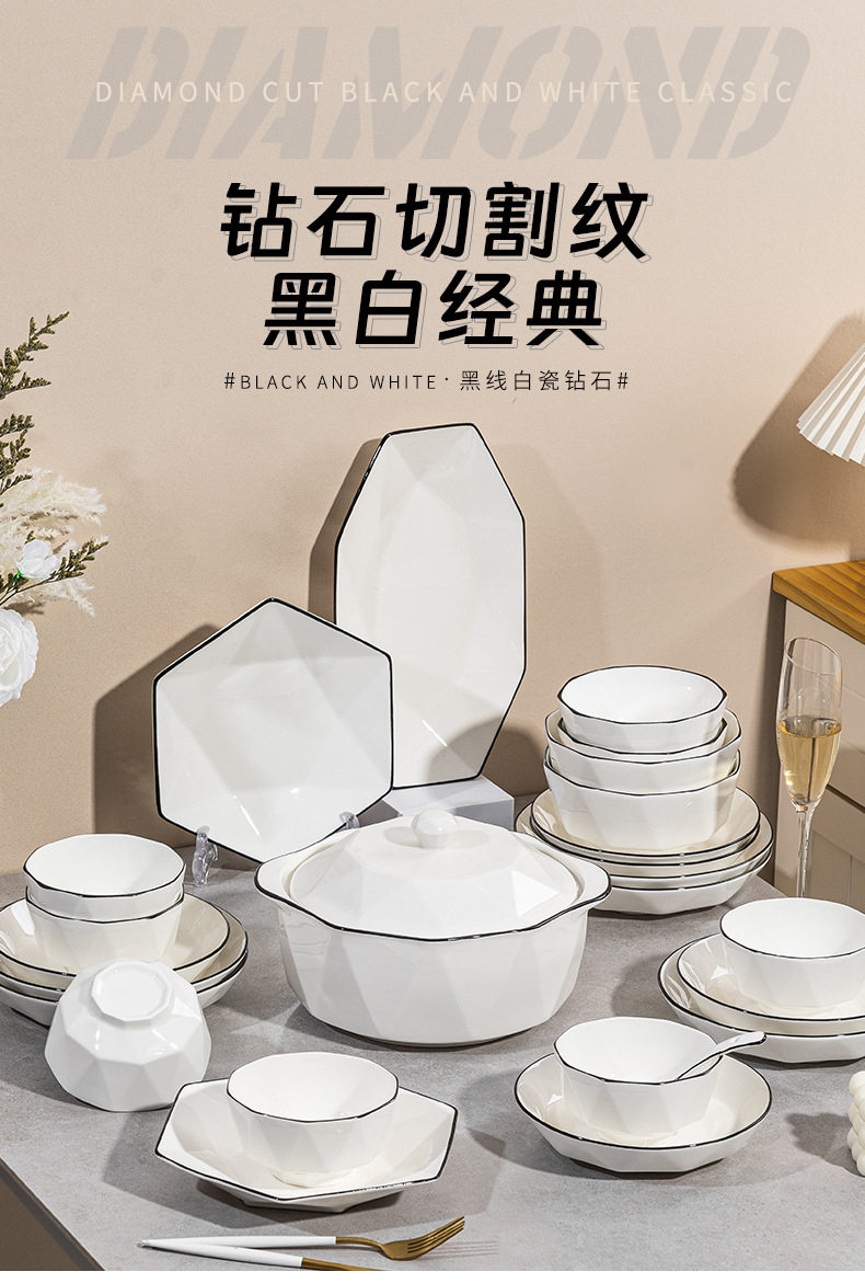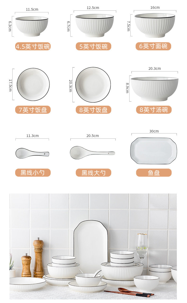釉下彩陶瓷餐具菜碟简约北欧风网红碗盘家用碗碟套装微波炉吃饭碗