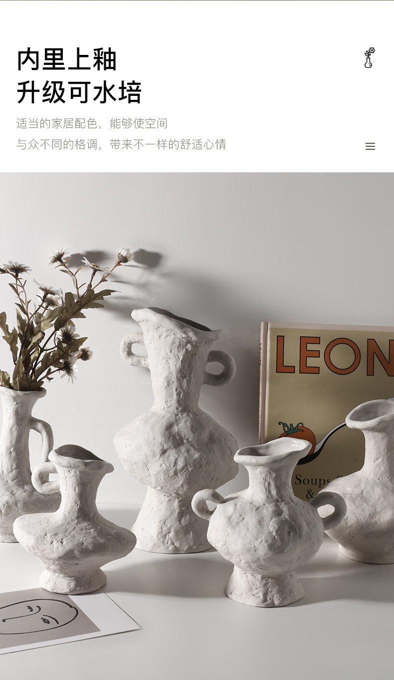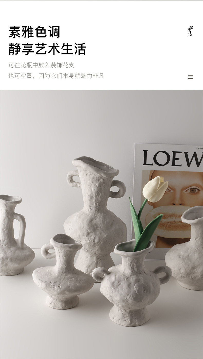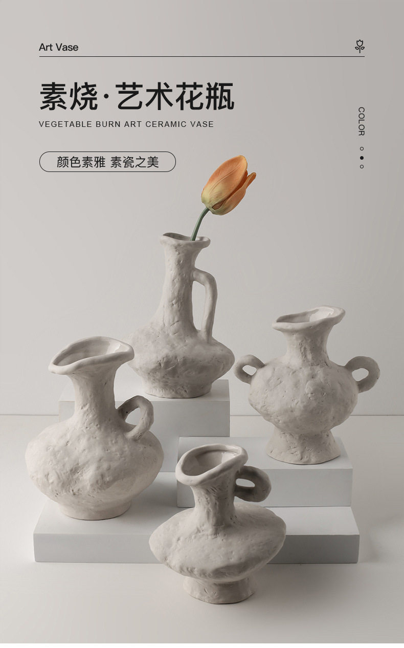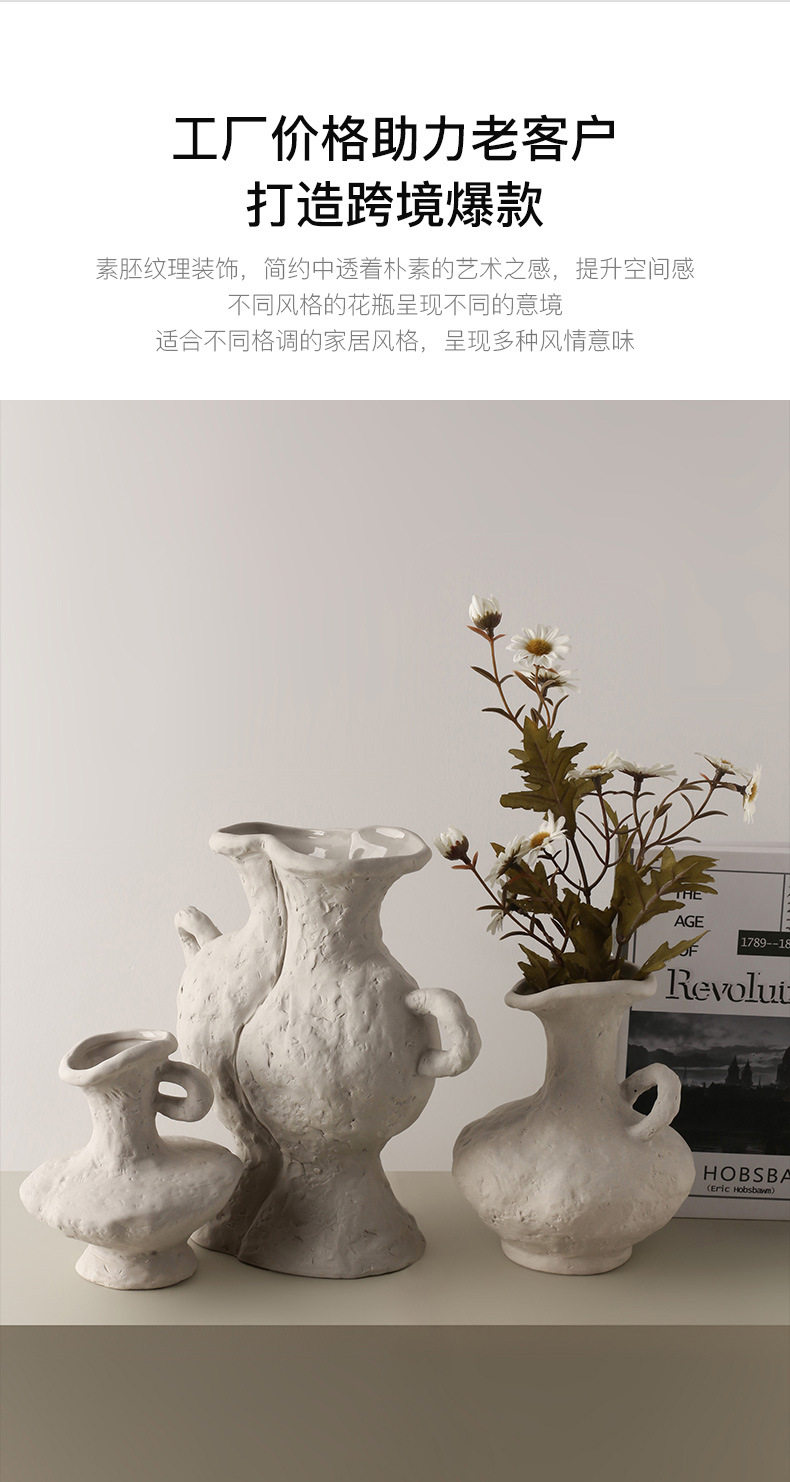 贝汉美侘寂素胚艺术花瓶批发家居摆件民宿装饰品陶瓷花器跨境热采