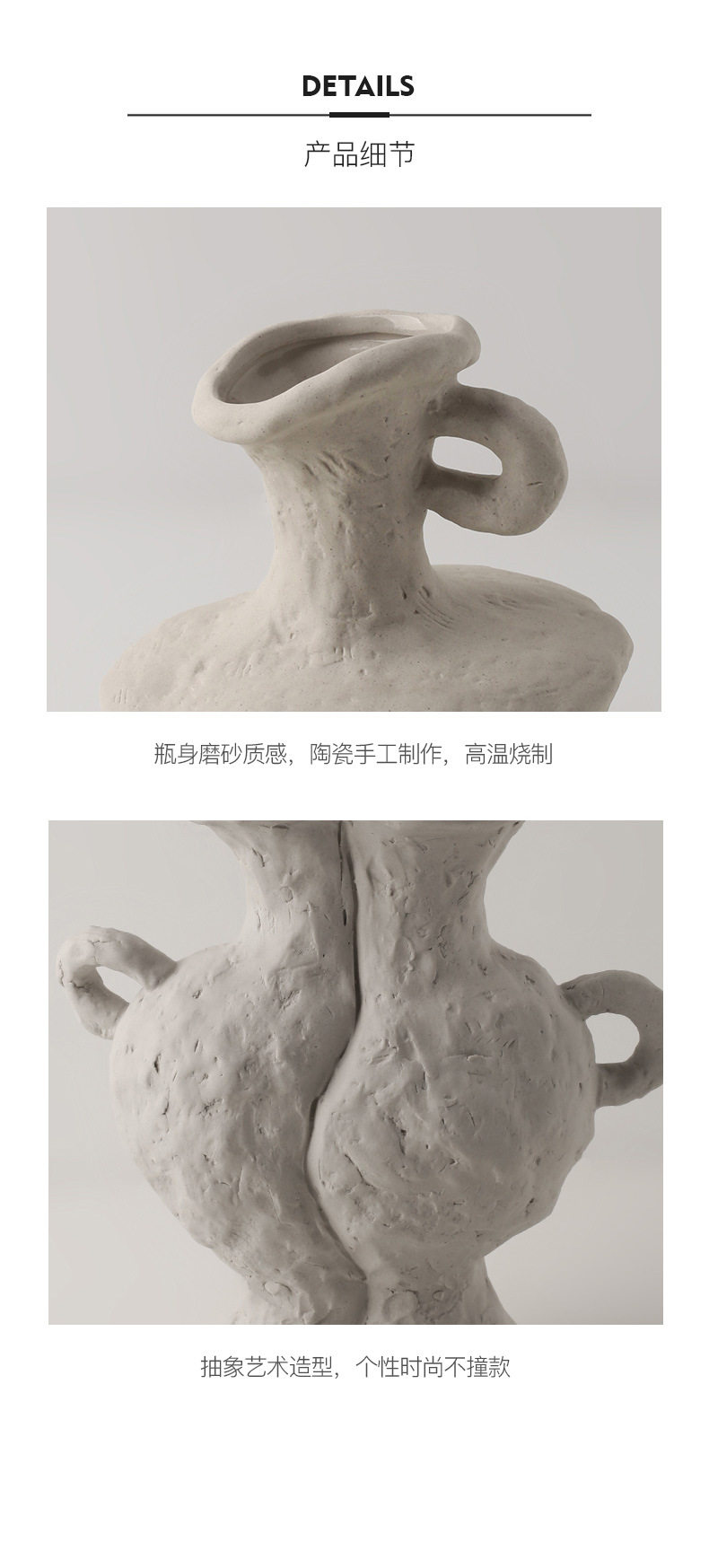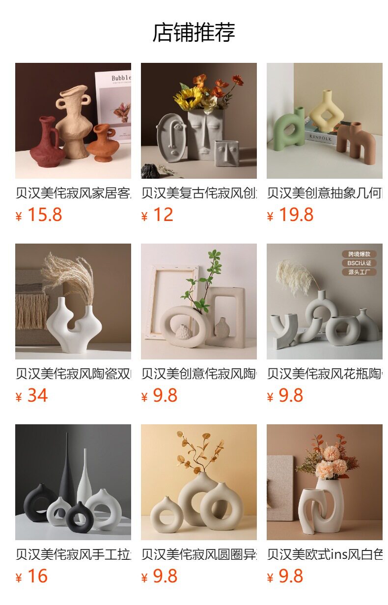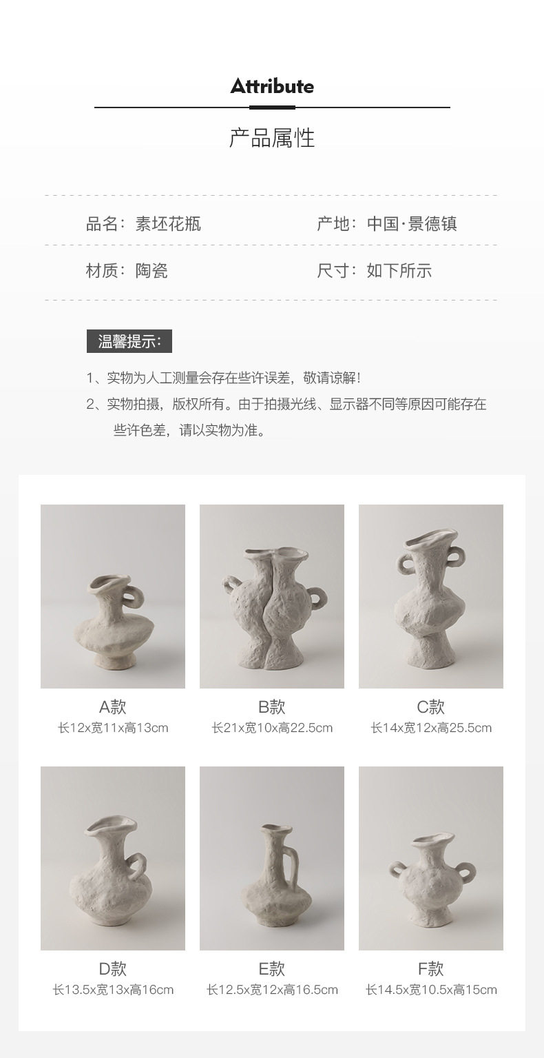 贝汉美侘寂素胚艺术花瓶批发家居摆件民宿装饰品陶瓷花器跨境热采