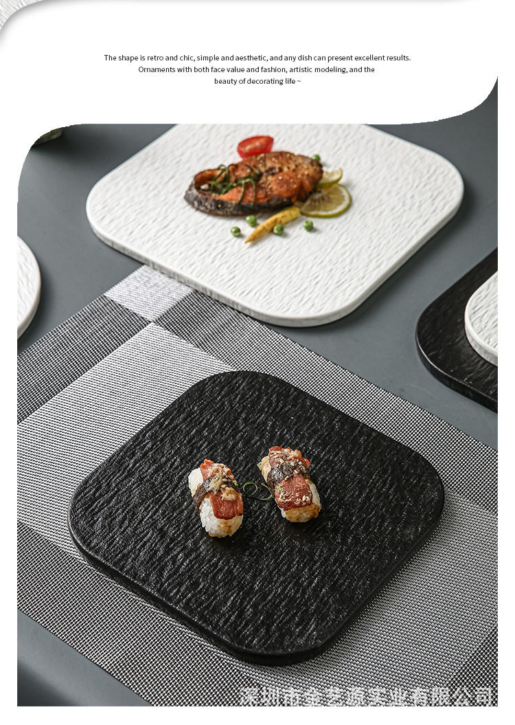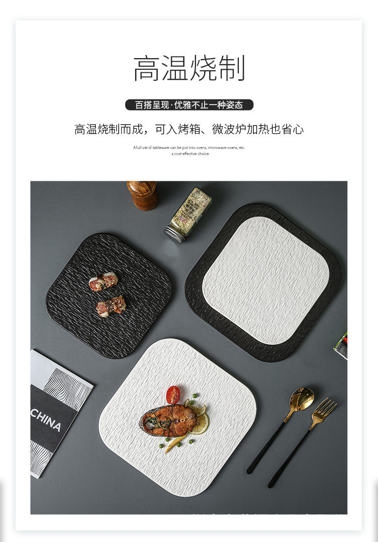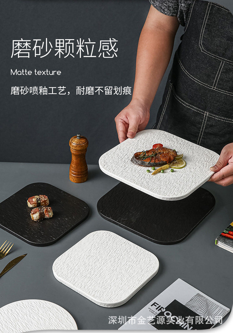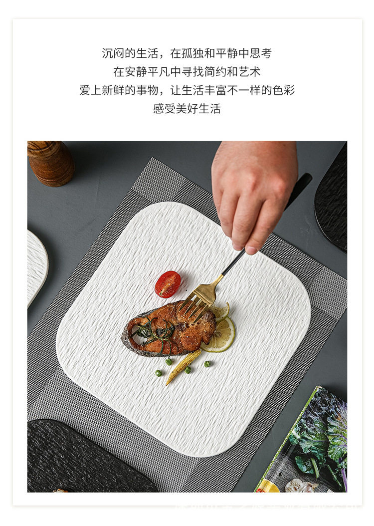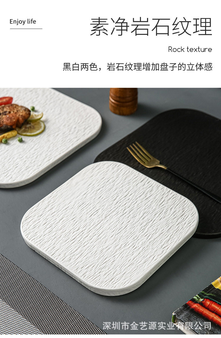 高颜值盘子石纹创意四方日式餐具菜碟家用白色陶瓷餐盘网红牛排盘
