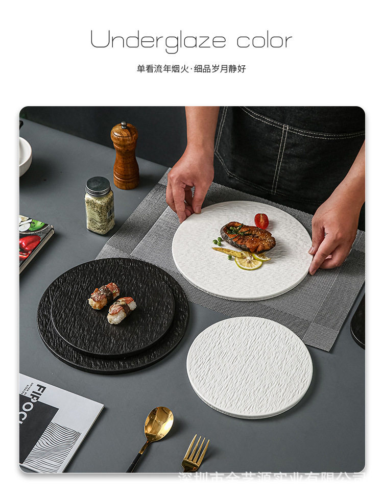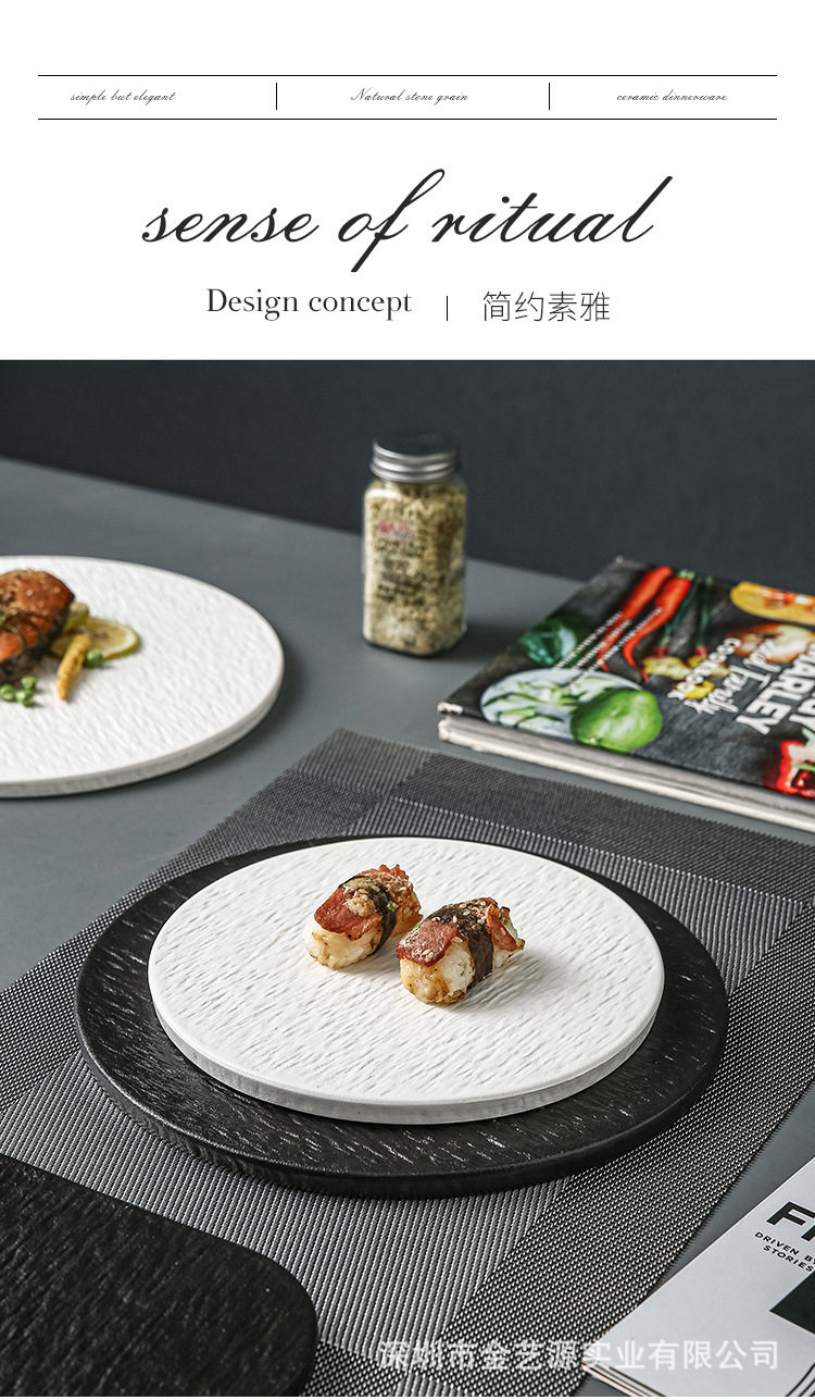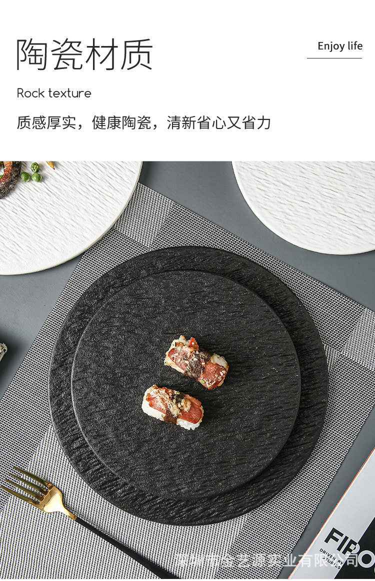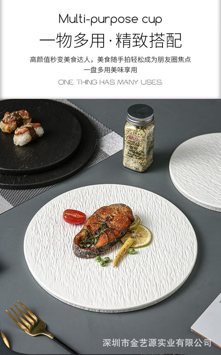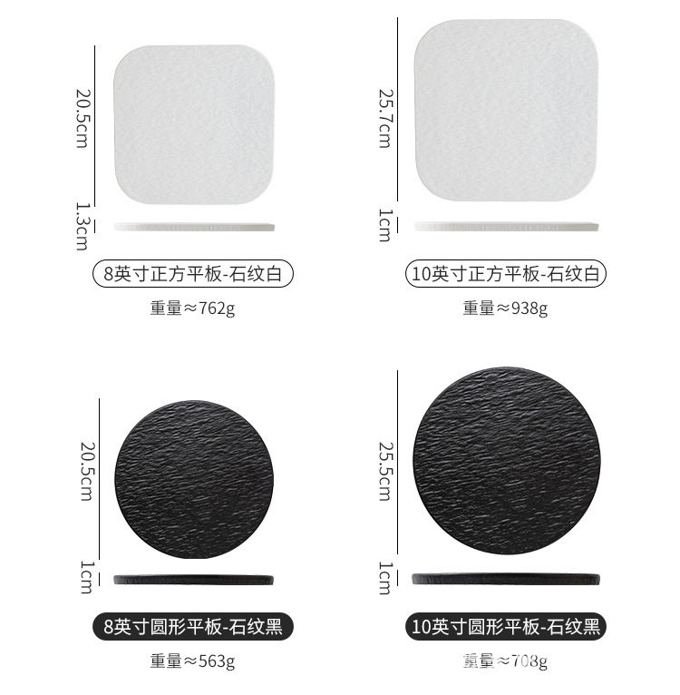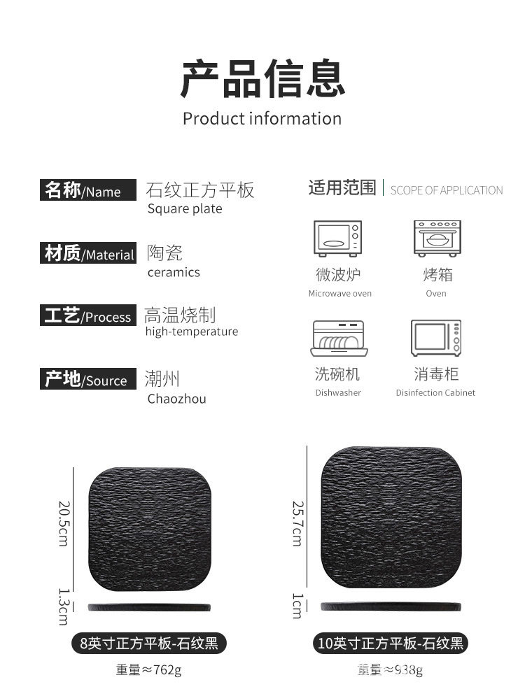 高颜值盘子石纹创意四方日式餐具菜碟家用白色陶瓷餐盘网红牛排盘