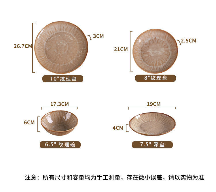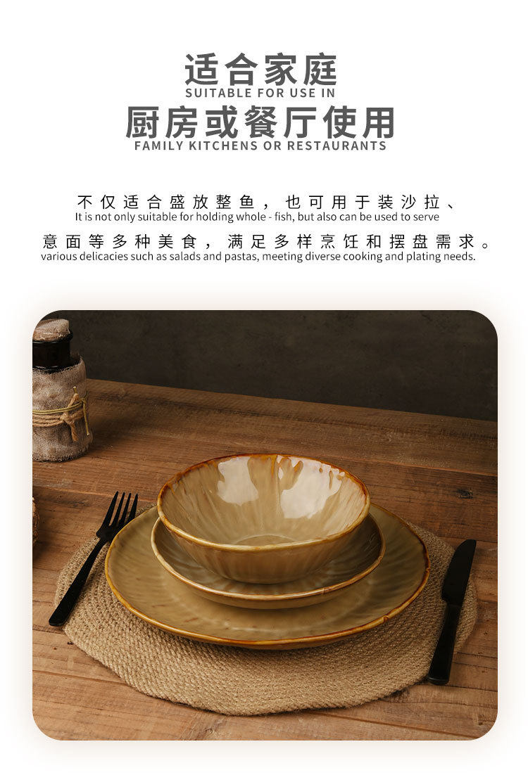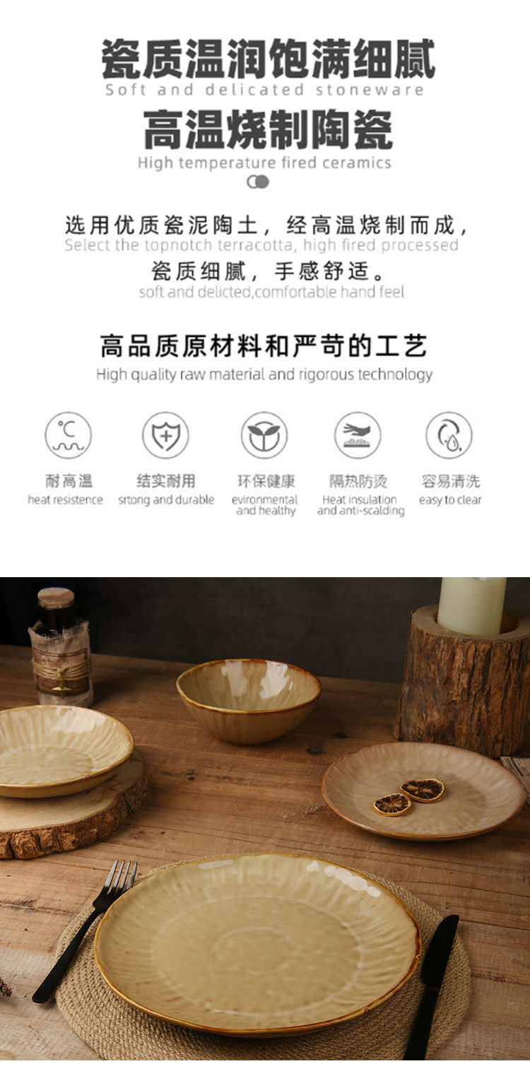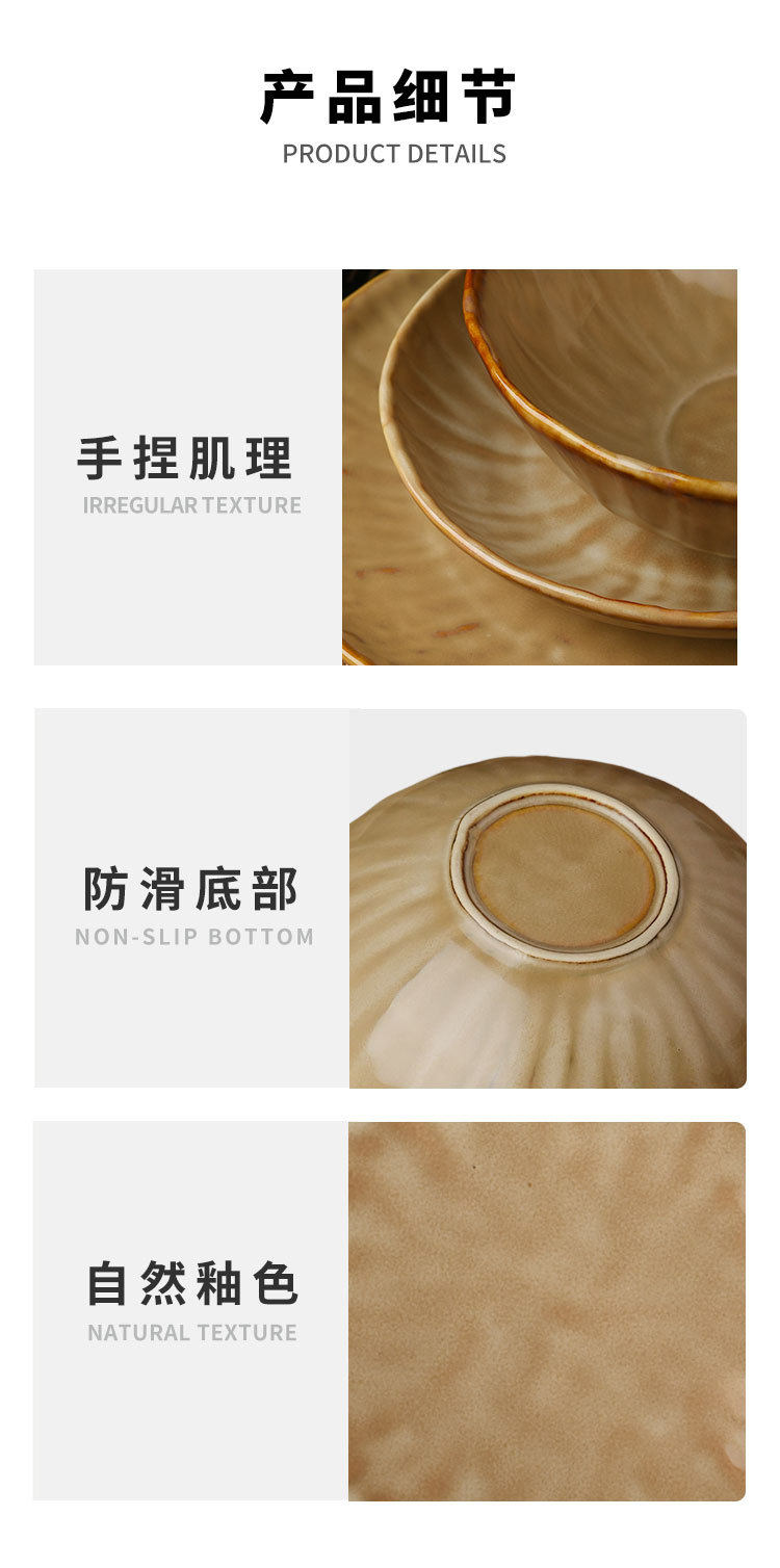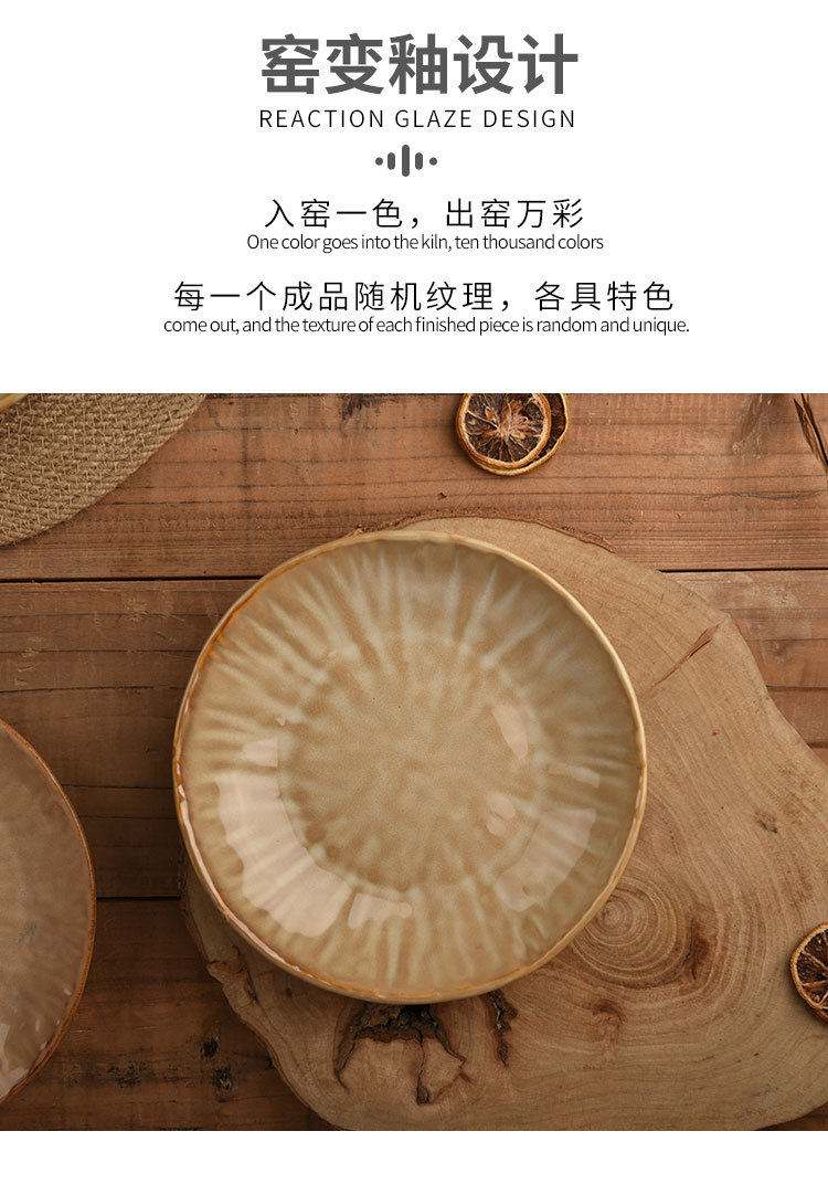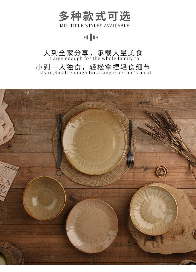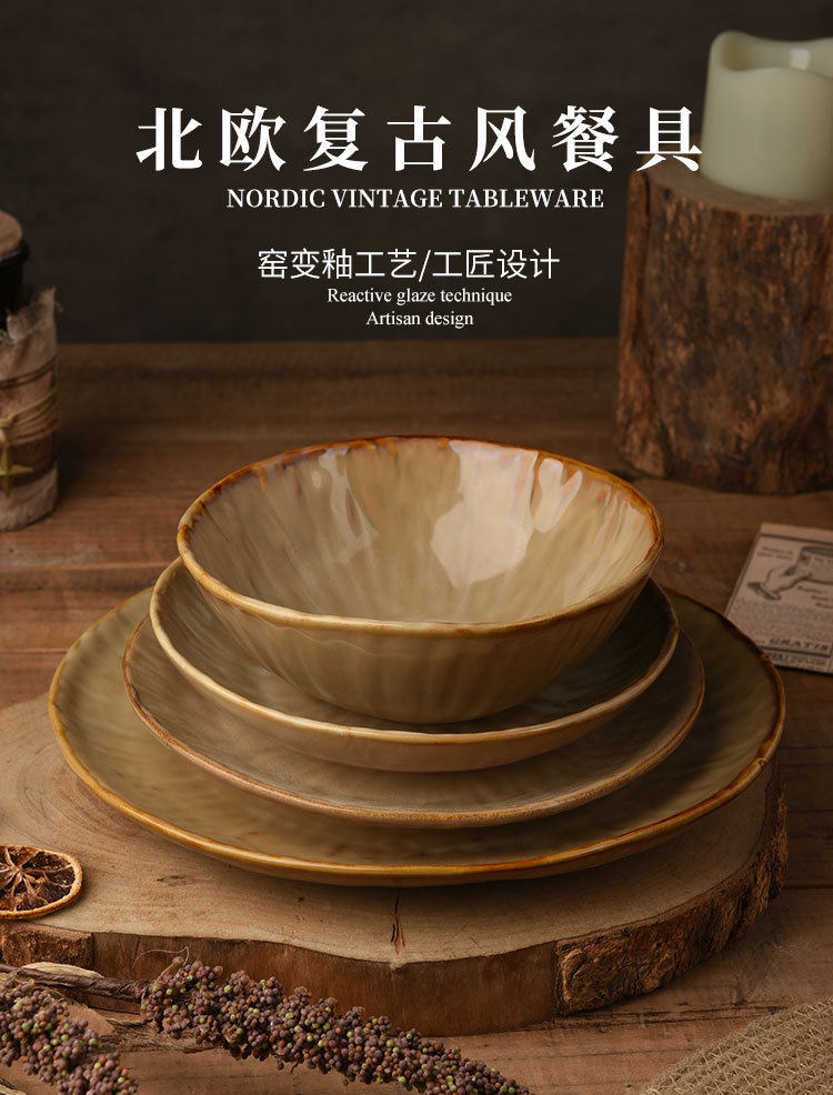 跨境专供日式复古风成人碗碟套装圆形窑变釉轻奢复古陶瓷碗