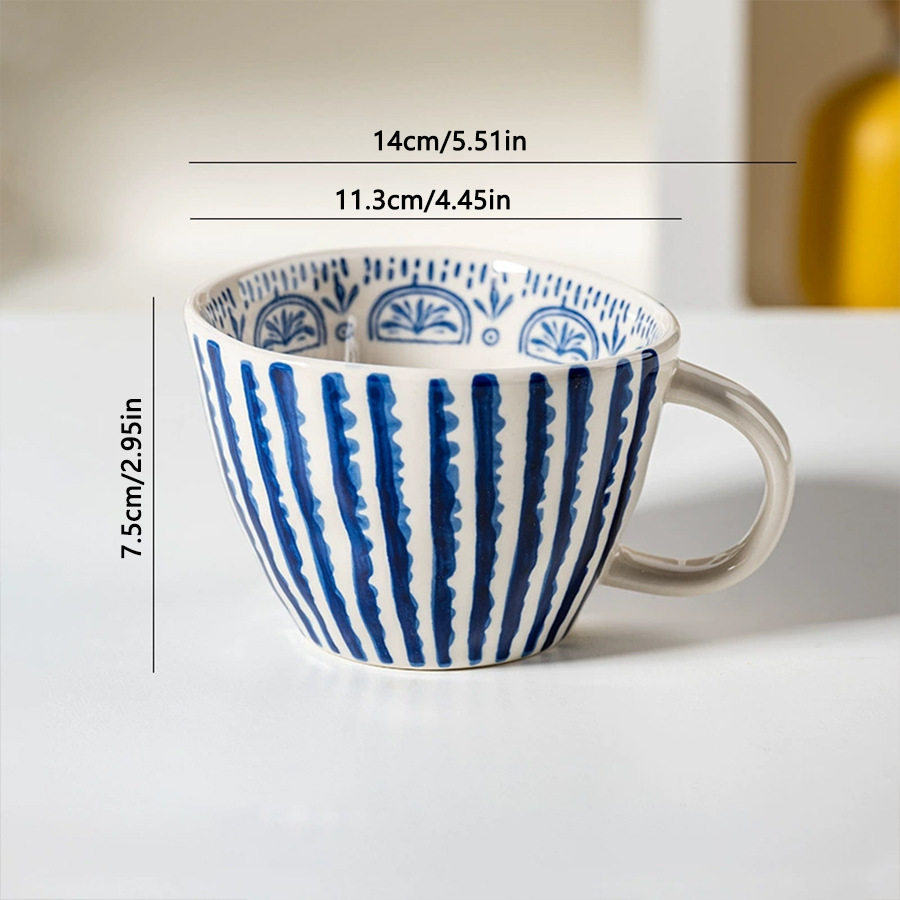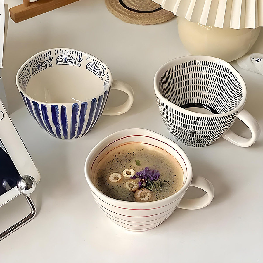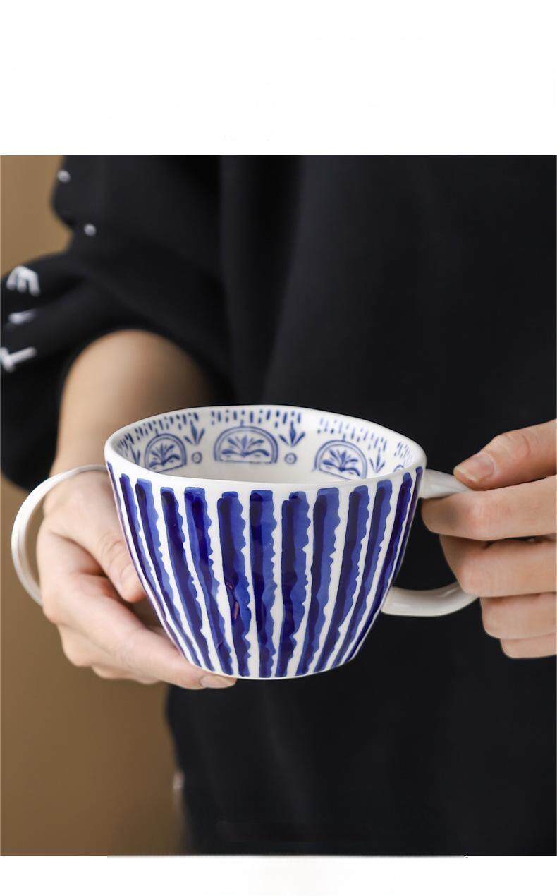 现货小众手绘简约大容量水杯陶瓷家用早餐杯不规则办公室咖啡杯