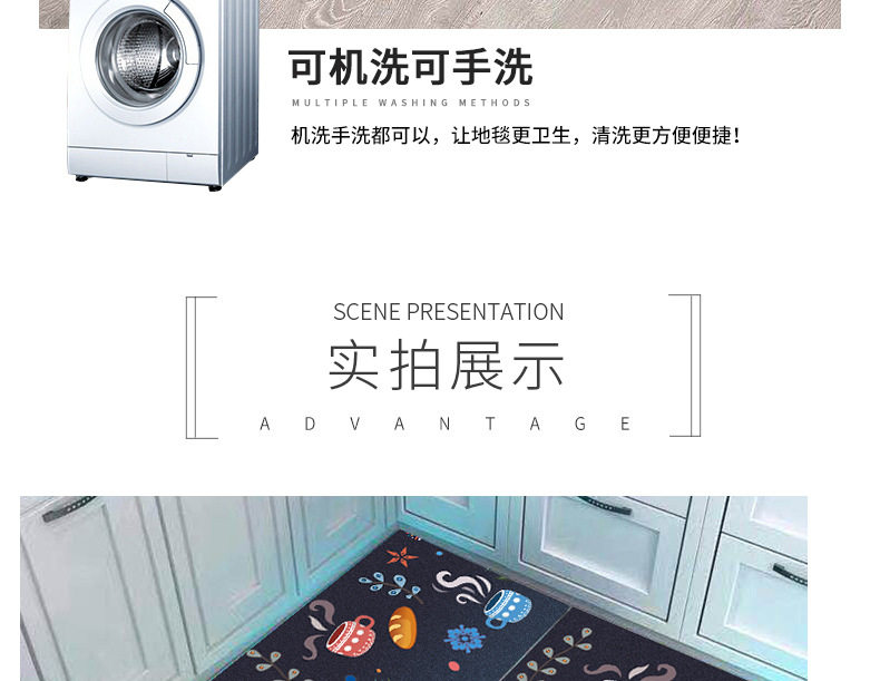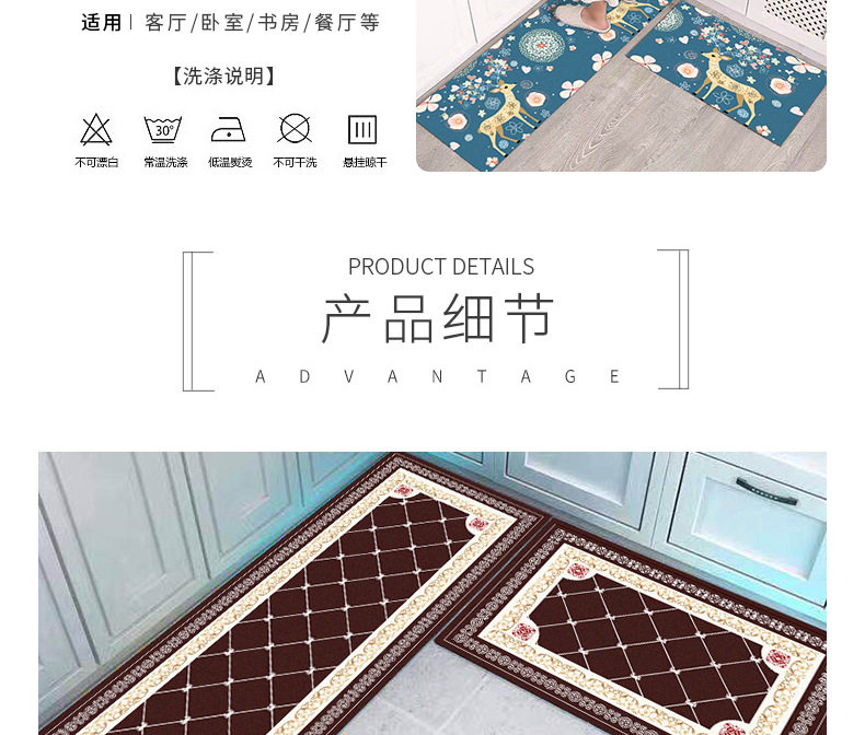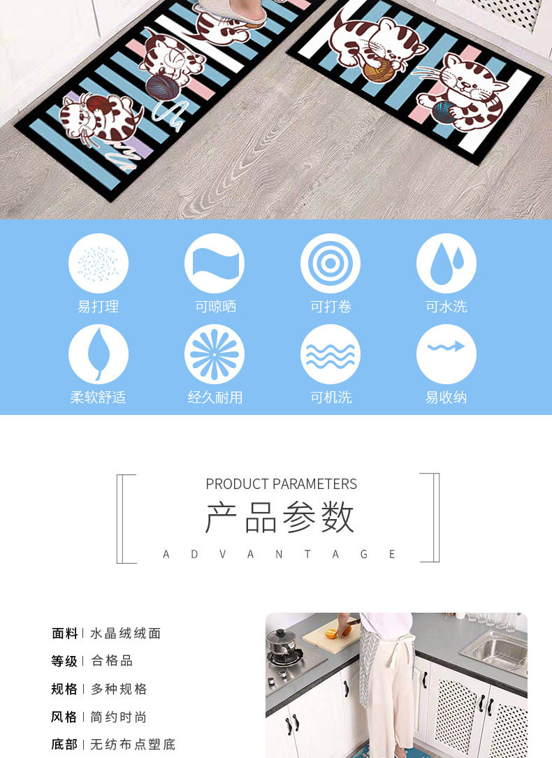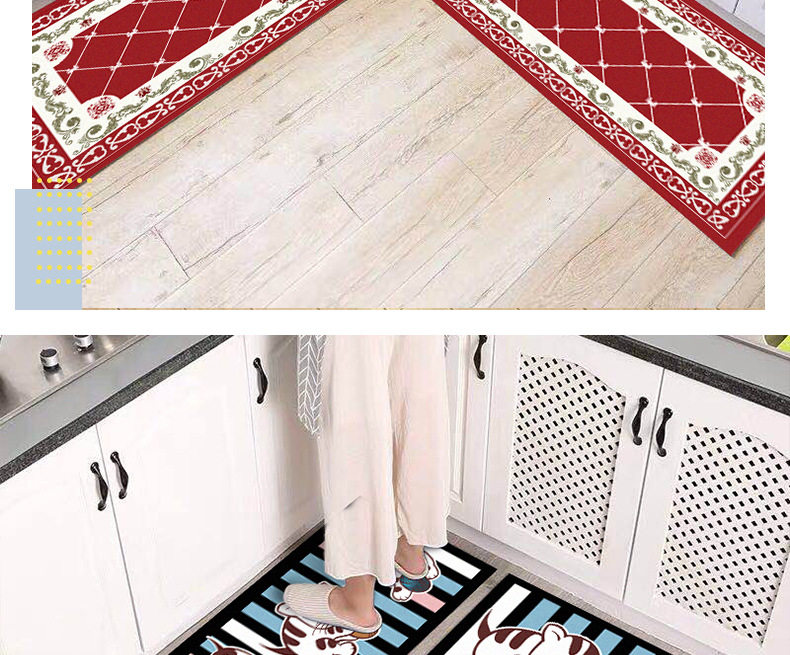 厨房地垫可爱卡通吸水吸油地毯长条防油垫子家用耐脏满铺防滑