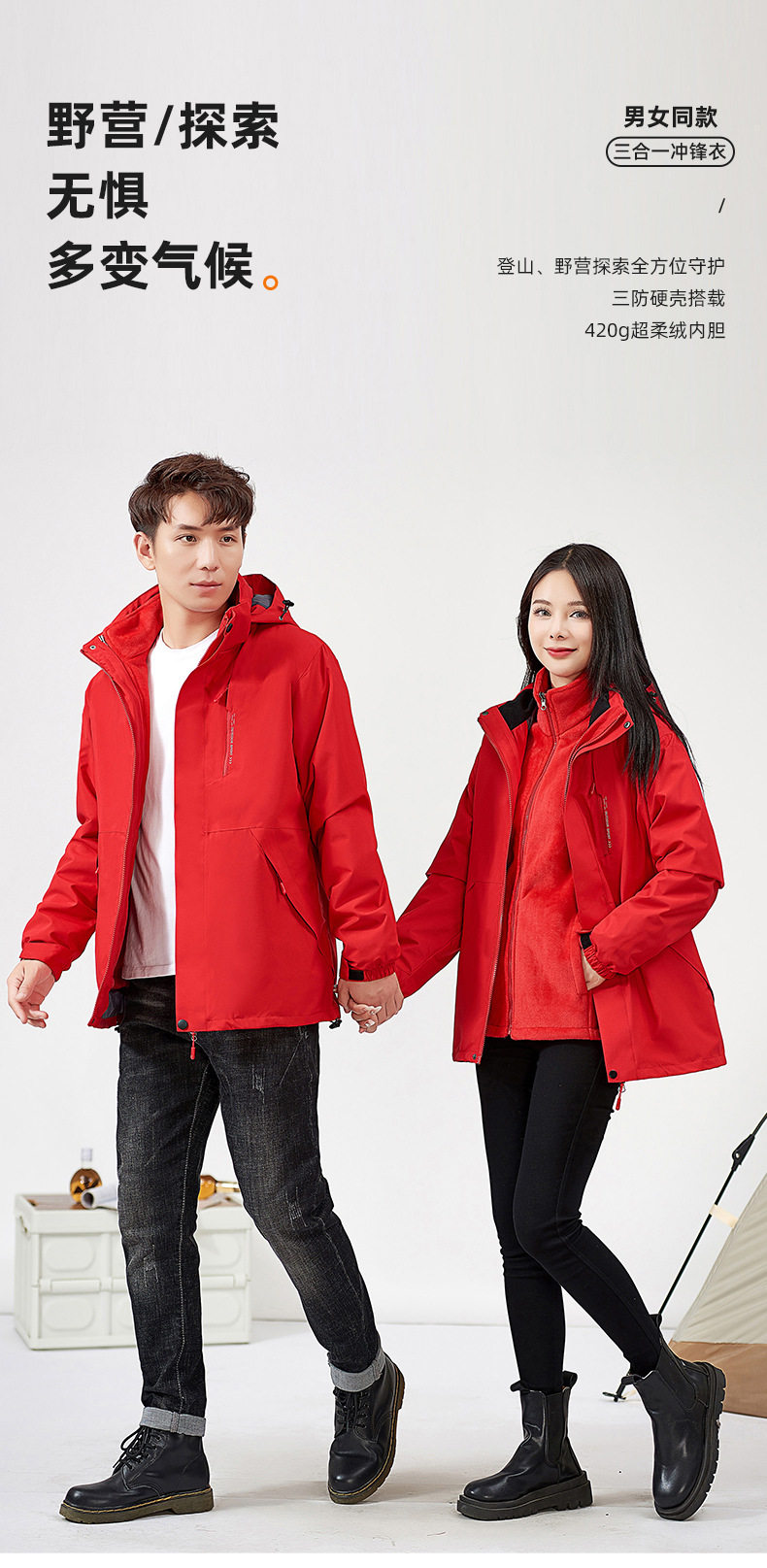 工厂直销防水防风冲锋衣三合一工作服男女印字logo加绒加厚外套