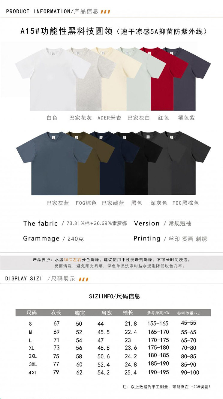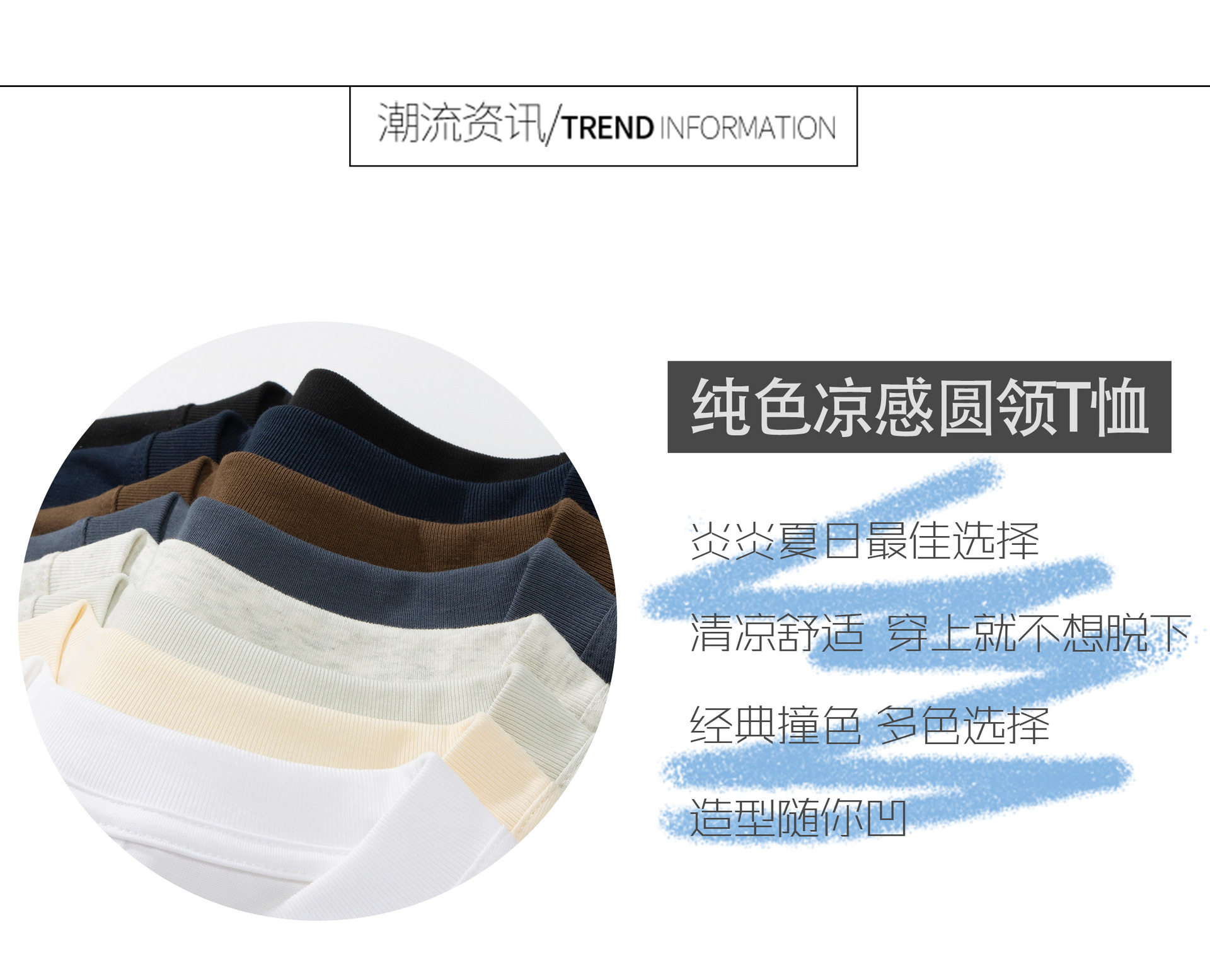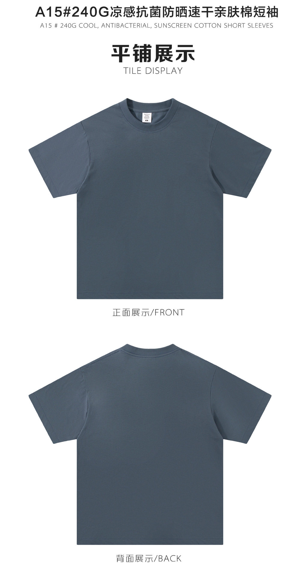 Sorona夏新款240克凉感抗菌索罗娜纯色圆领短袖T恤男速干防紫外线