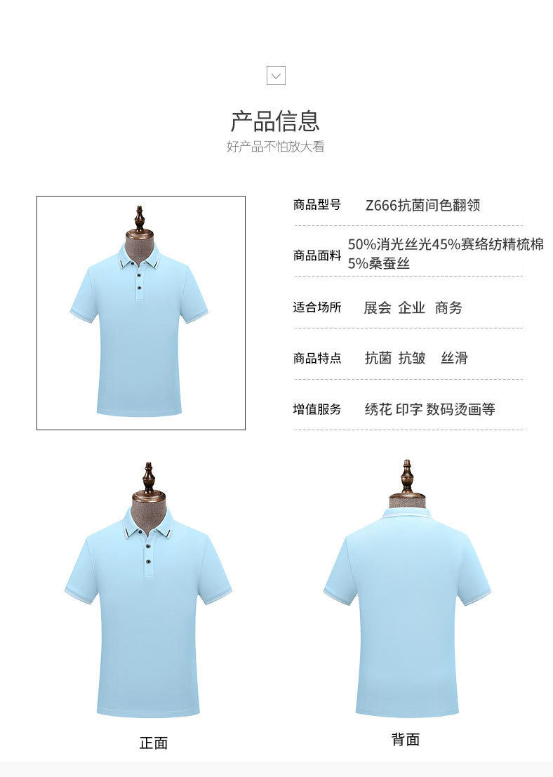 5A666商务抗菌柔软透气工作服翻领短袖桑蚕丝翻领polo衫定制夏