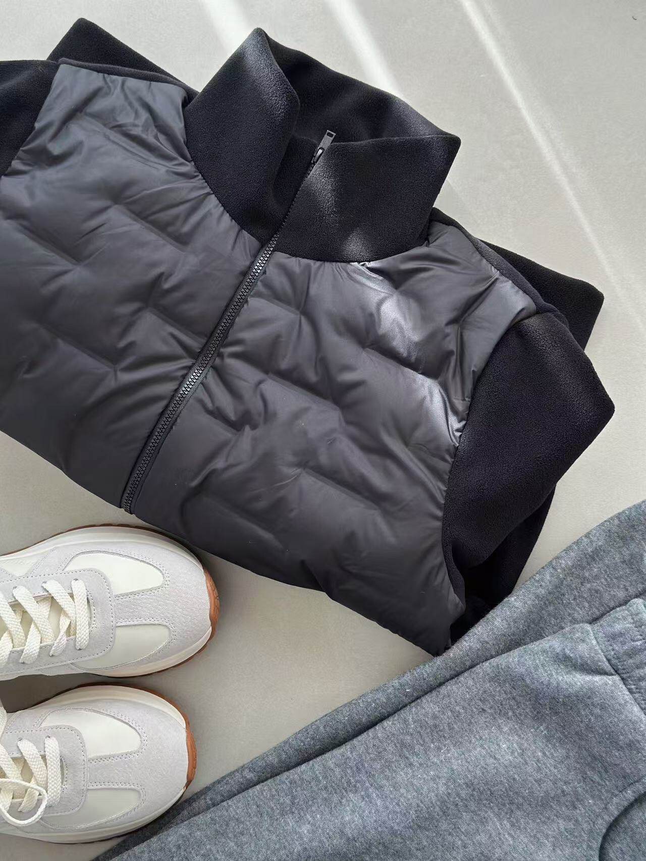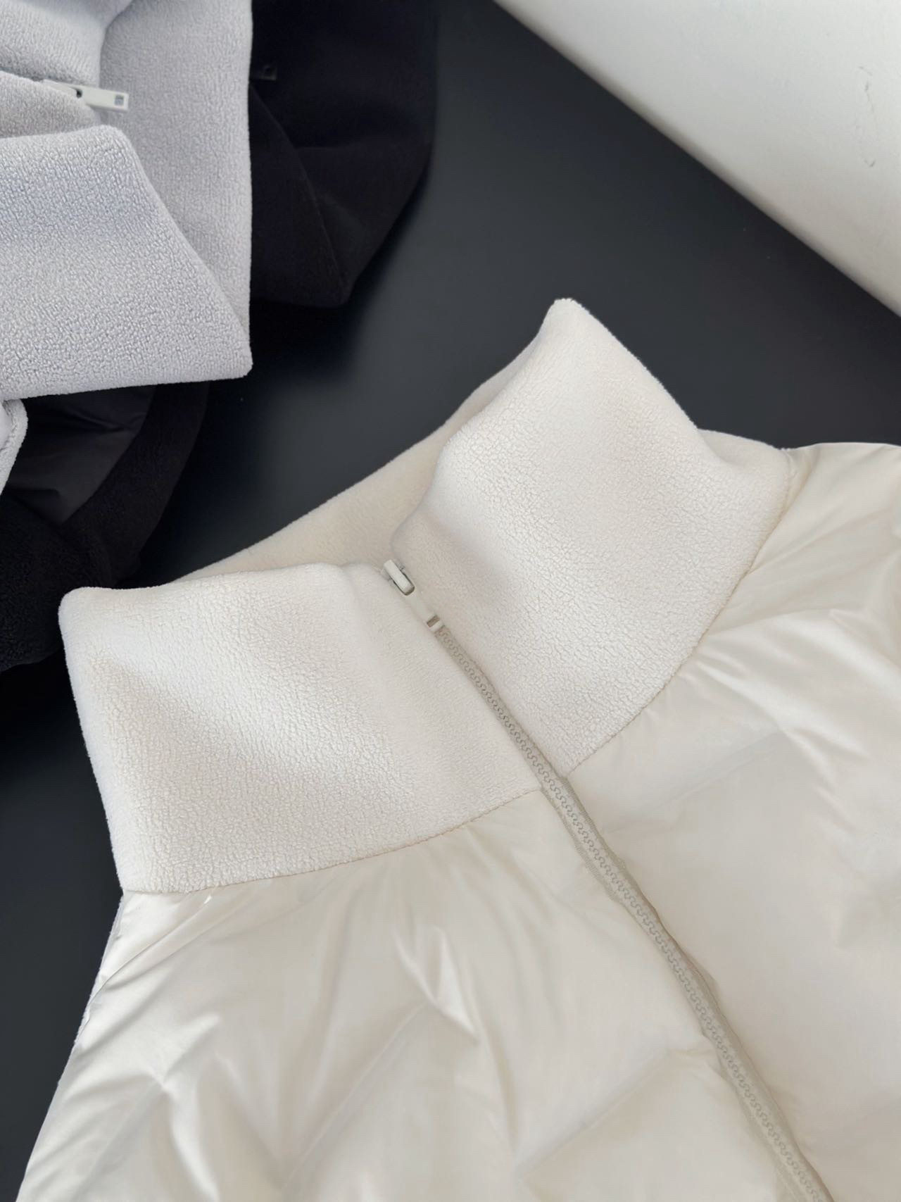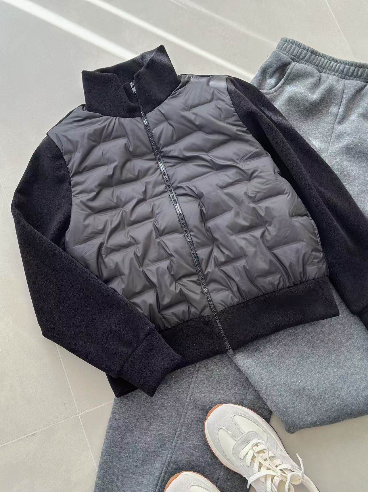 现货90%白鸭绒休闲绗格拼接摇粒绒立领双头拉链轻薄羽绒服女冬733