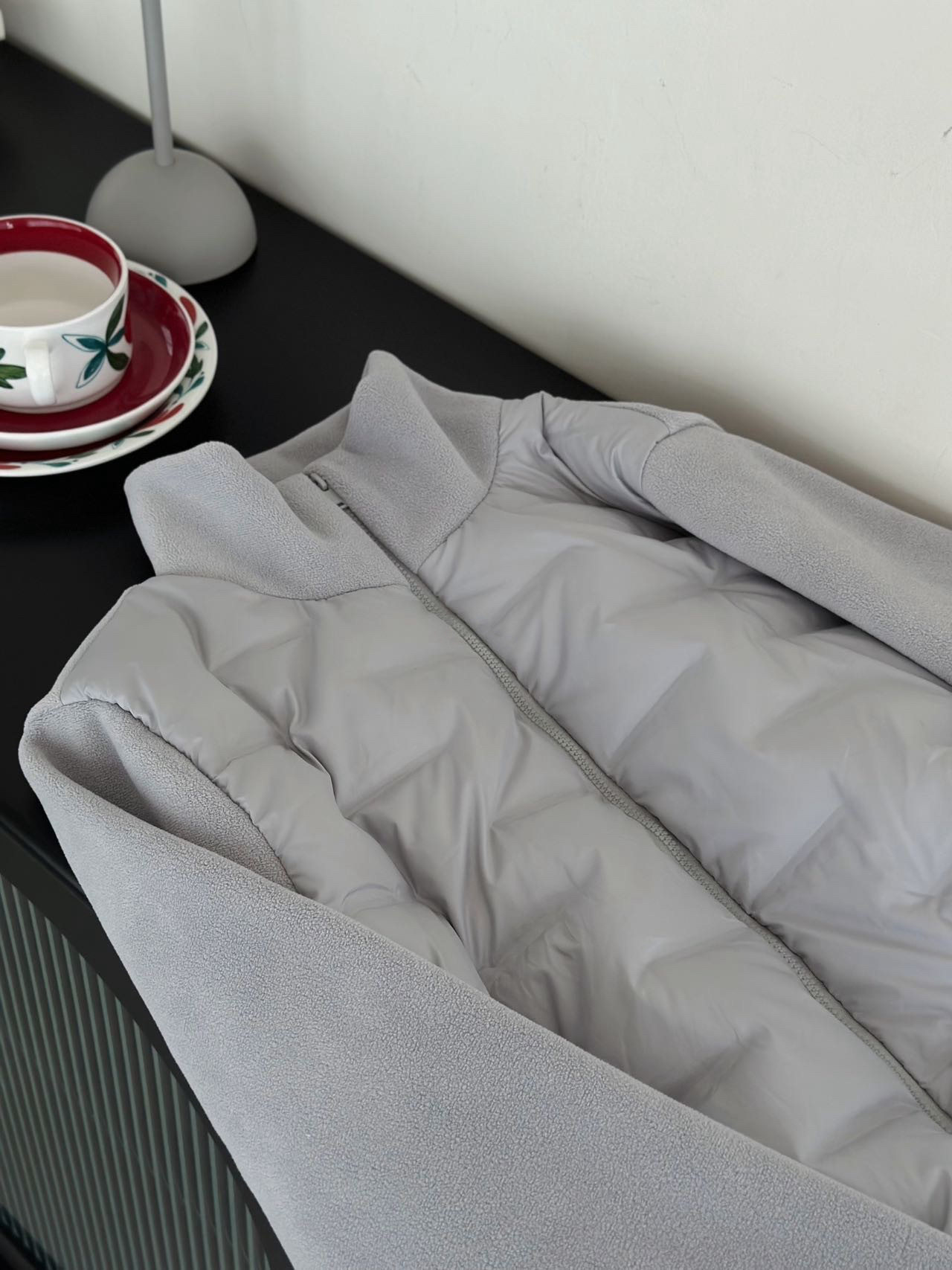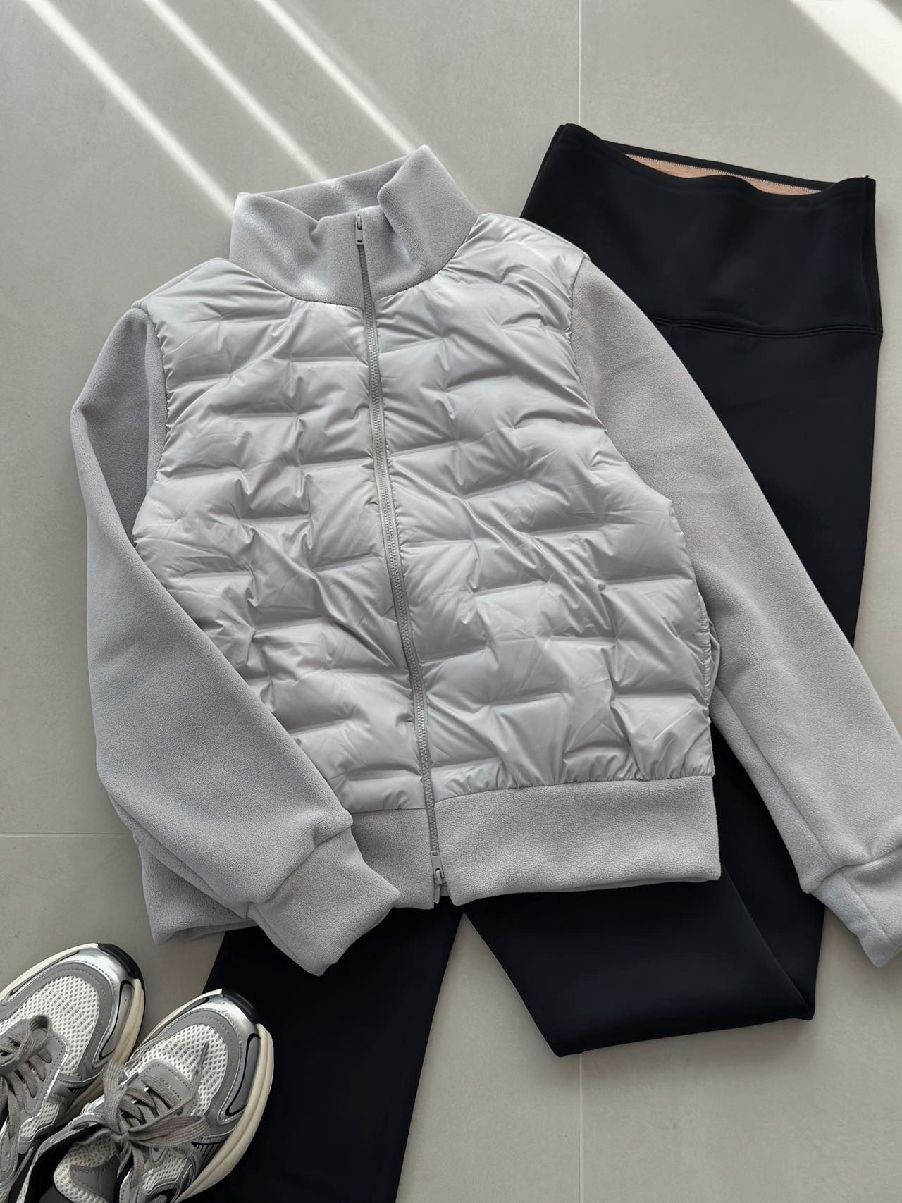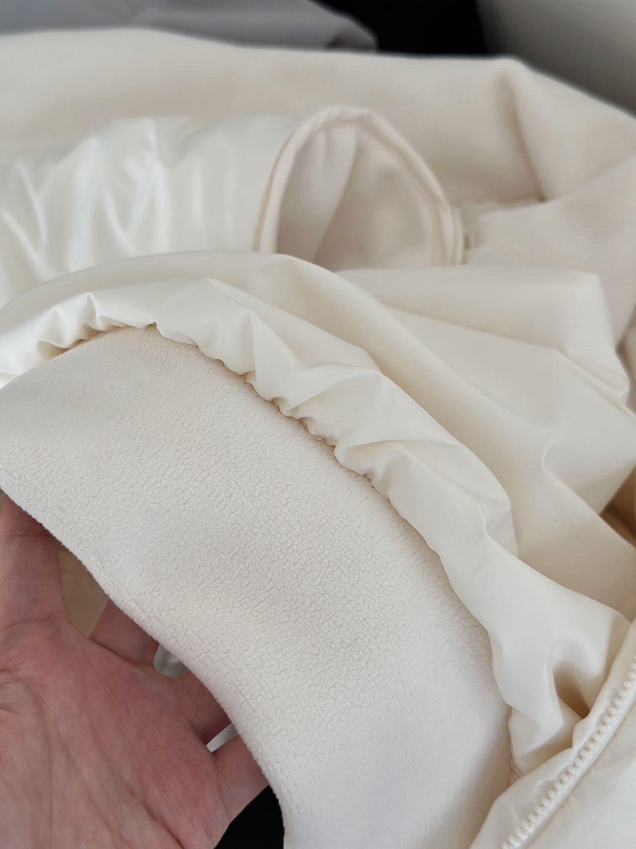 现货90%白鸭绒休闲绗格拼接摇粒绒立领双头拉链轻薄羽绒服女冬733