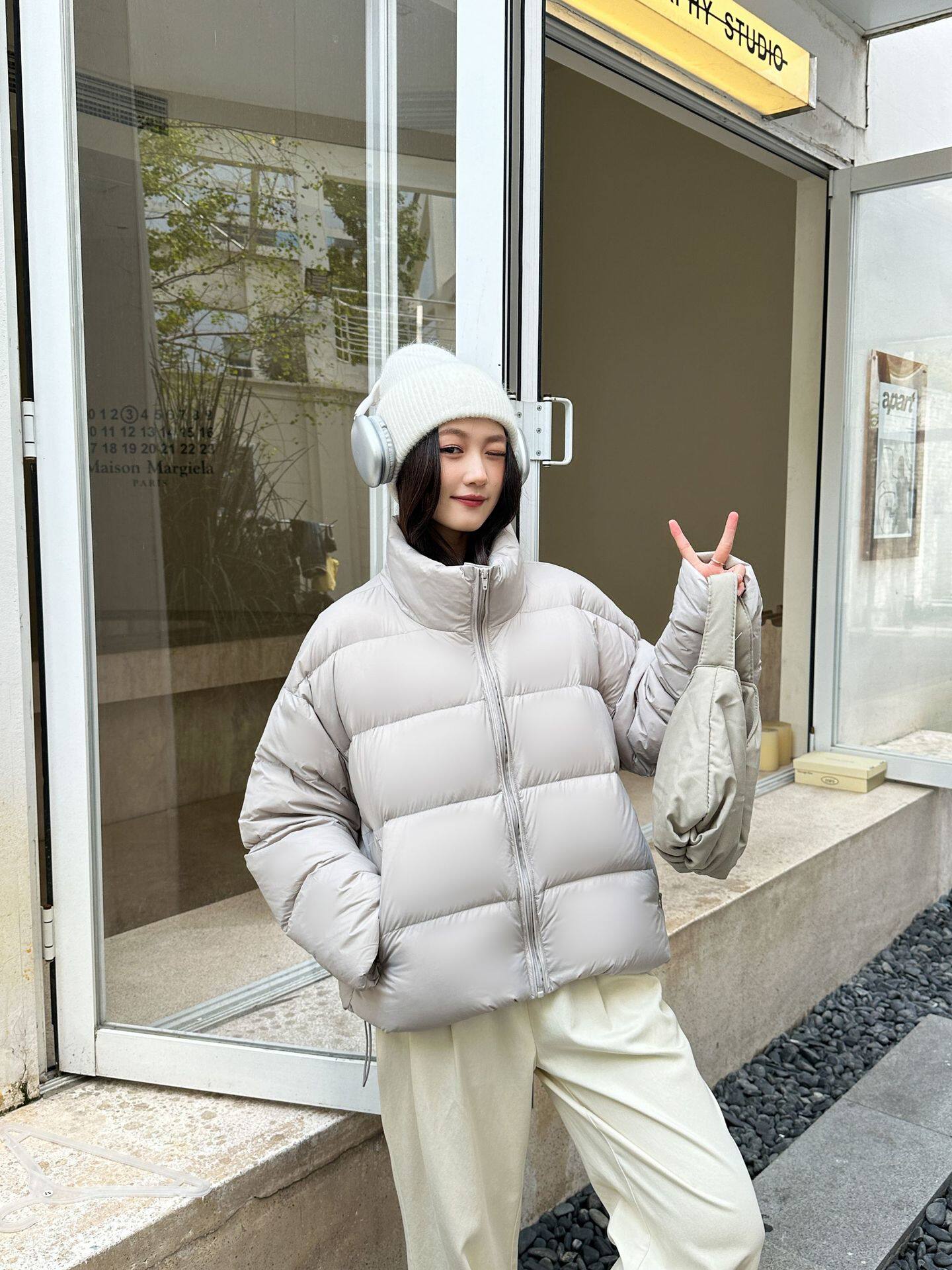 江南布衣同款超轻短款羽绒服女立领90白鸭绒超轻面包服2025新款