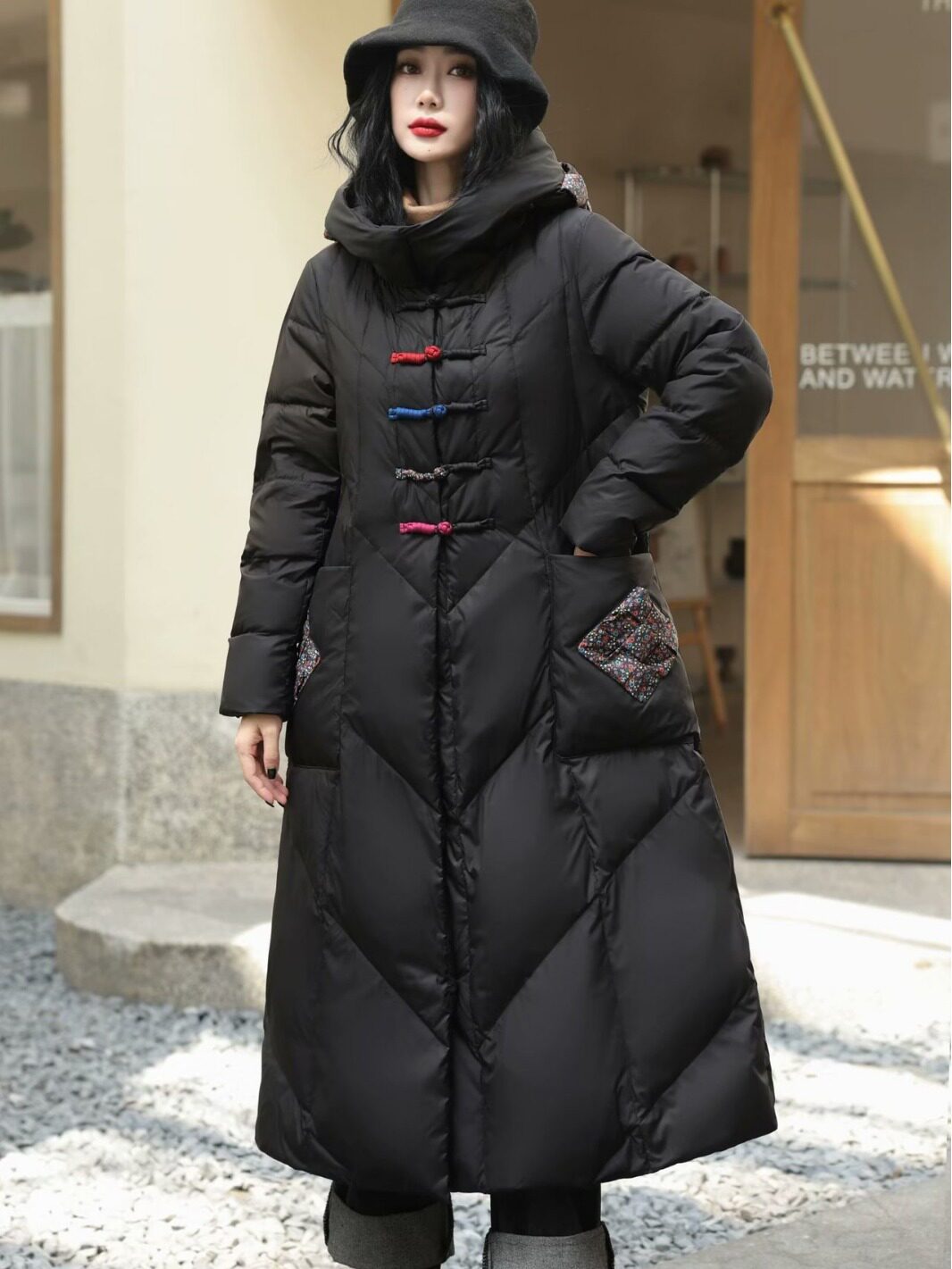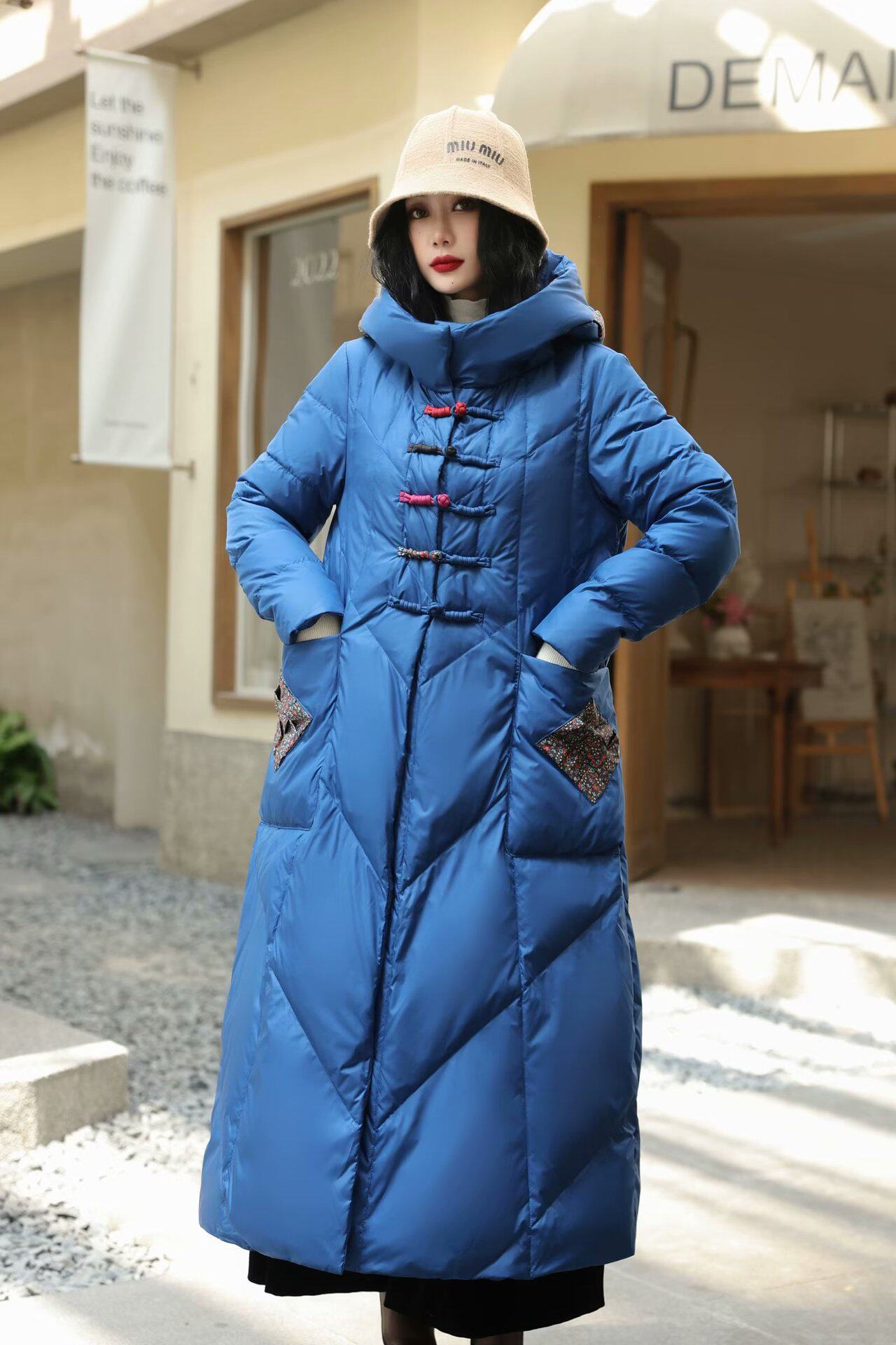 中国风加长款连帽羽绒服女2024冬季新款复古盘扣厚保暖羽绒外套女