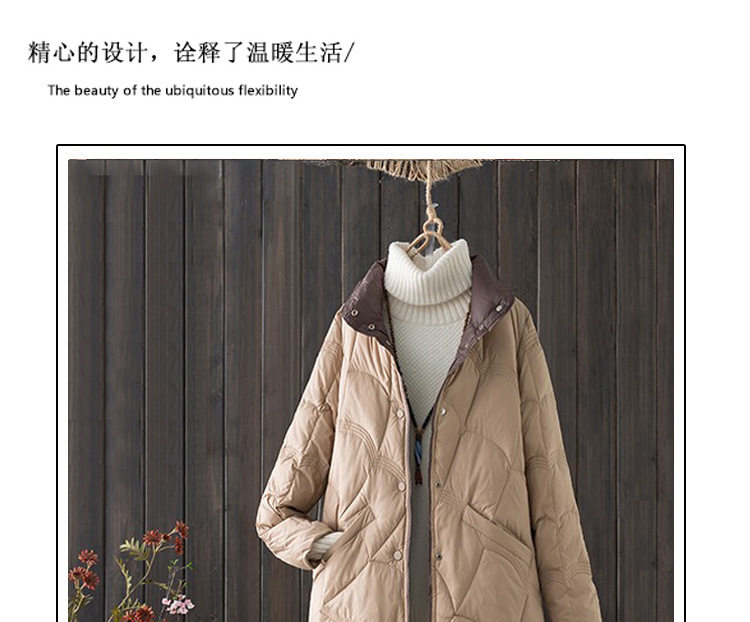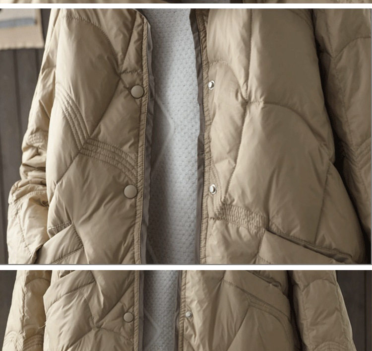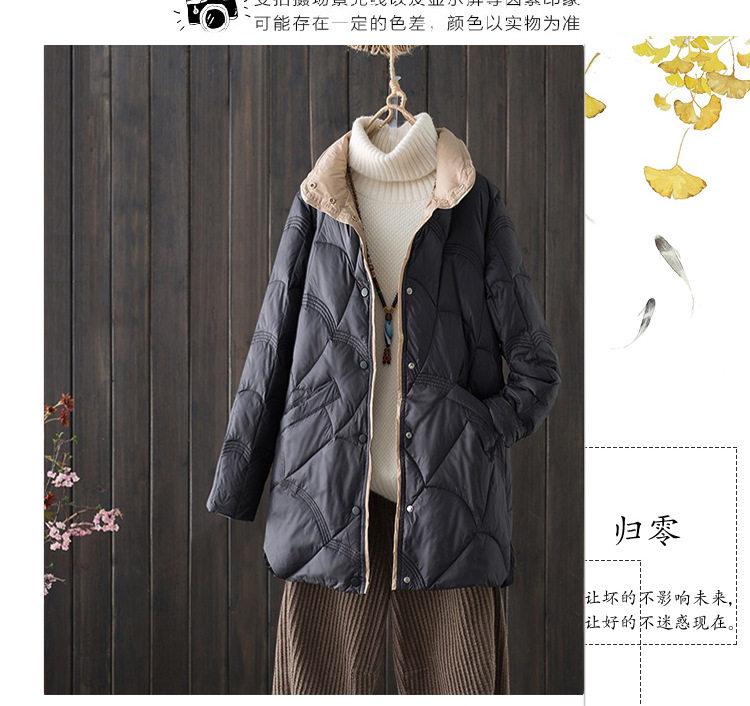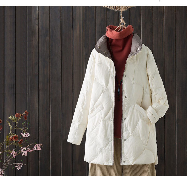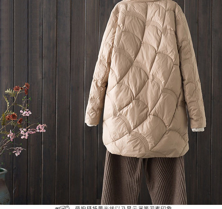 跨境秋冬轻薄款羽绒服女中长款白鸭绒时尚洋气复古祥云立领外套潮