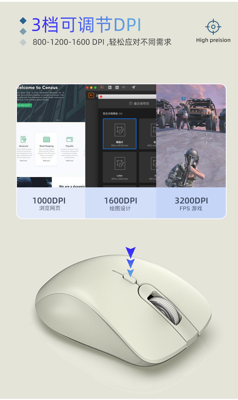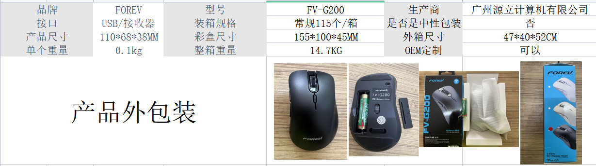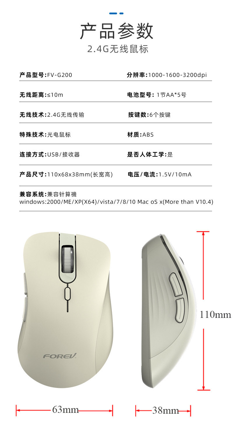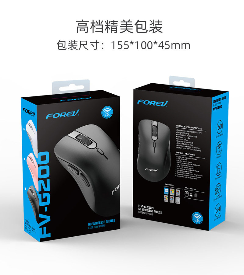 人体工学无线鼠标FVG200无线商务办公笔记本电脑配件六键鼠标批发