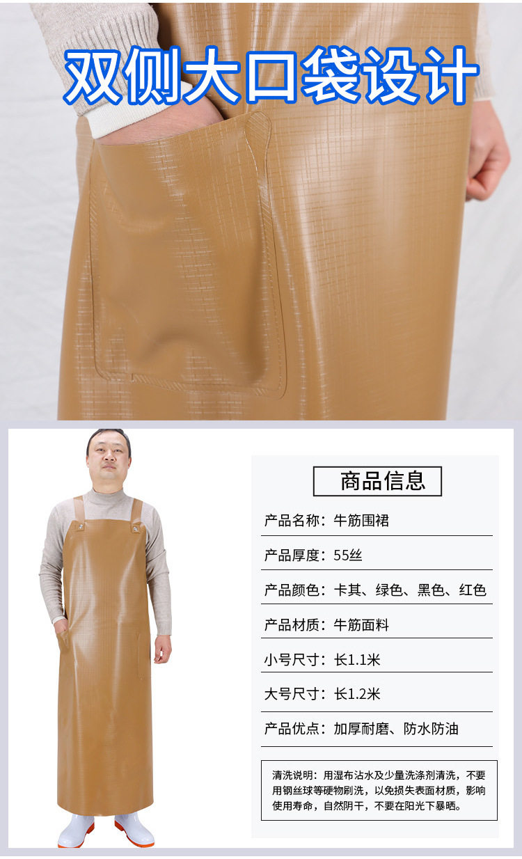 牛筋防水加长款围裙厨房防油围腰水产杀鱼工作劳保耐脏多外穿罩衣