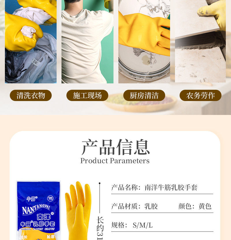 南洋牛筋乳胶手套加厚橡胶手套 家用厨房洗碗洗车手套耐酸碱批发
