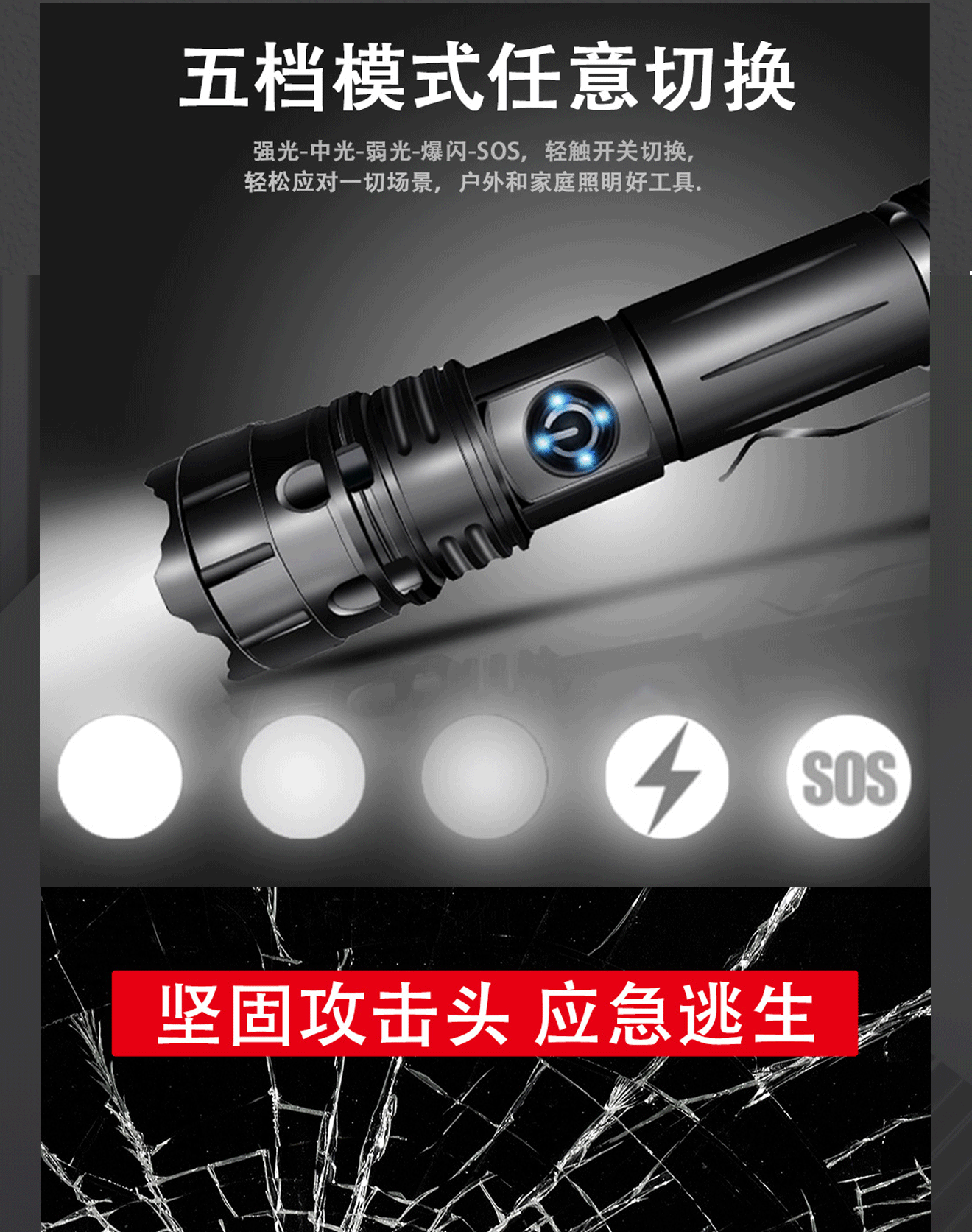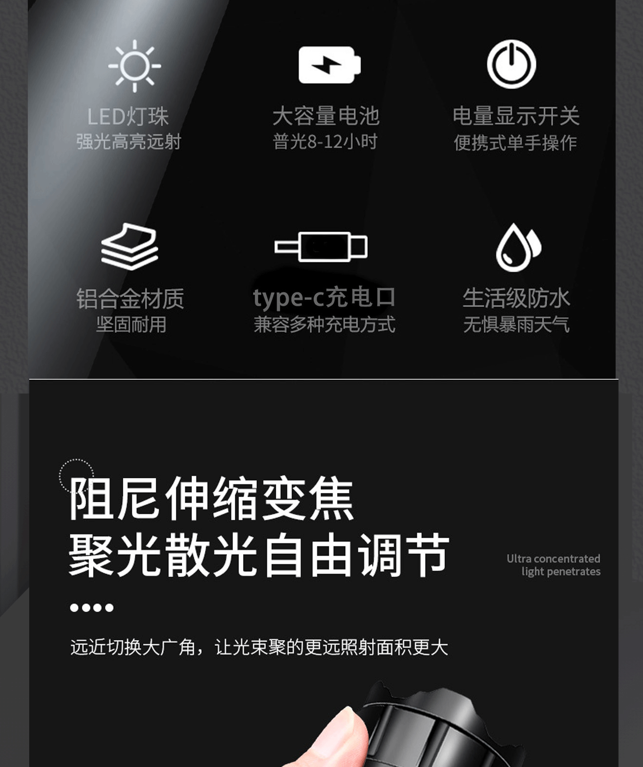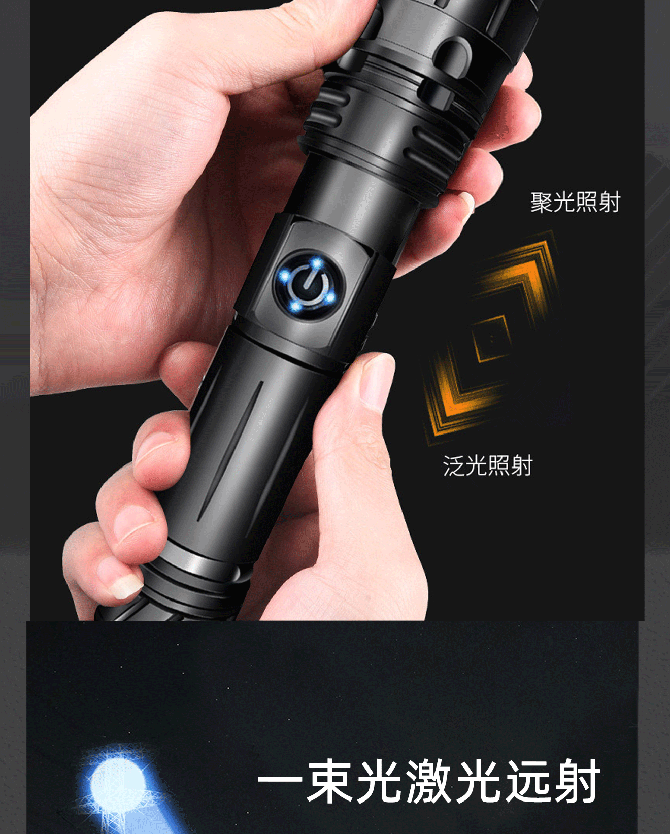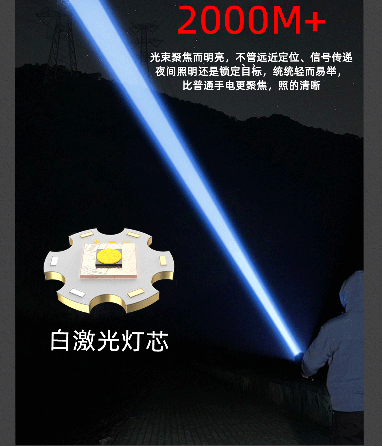新款白激光强光手电筒可充电户外应急防汛探照灯P70远射家用照明